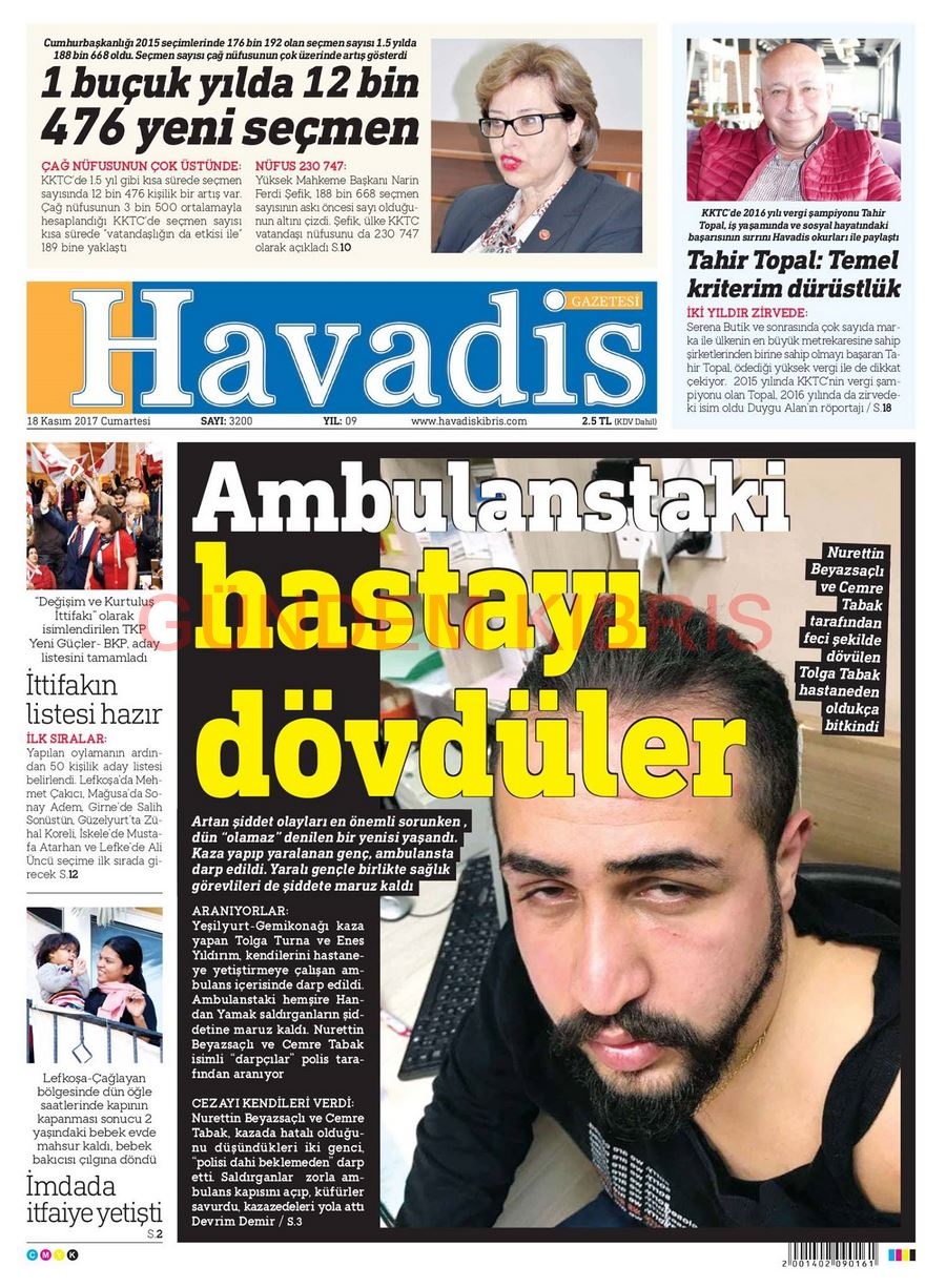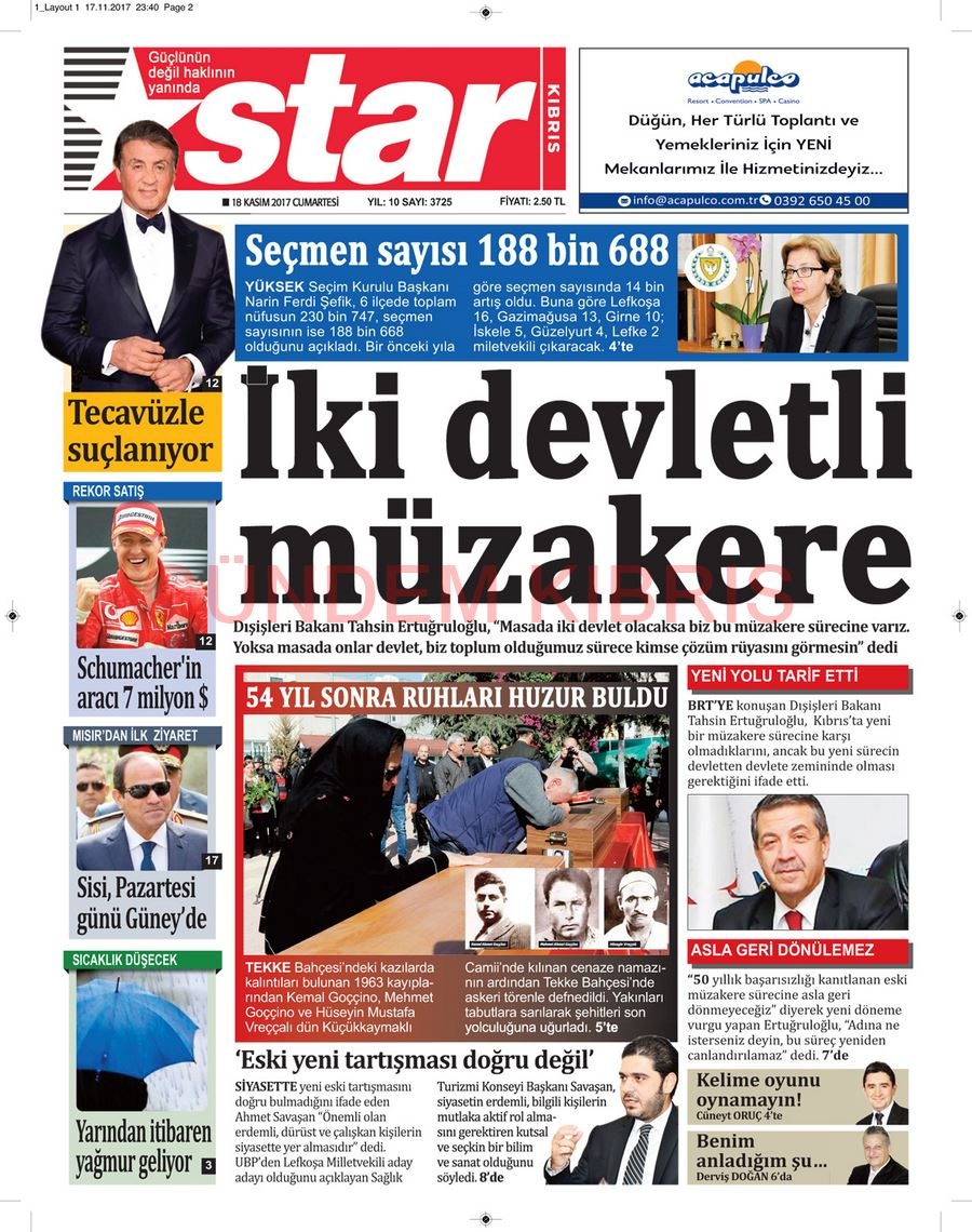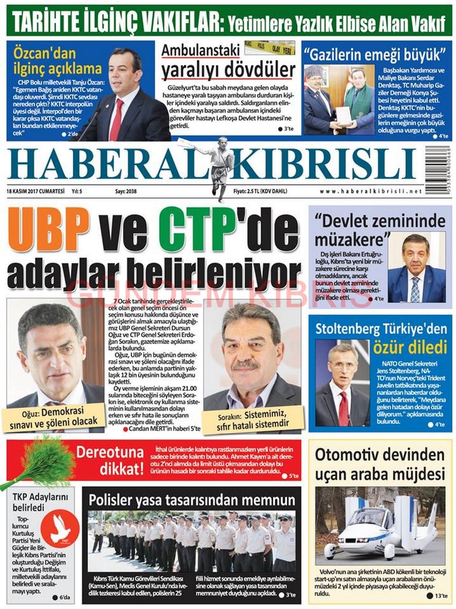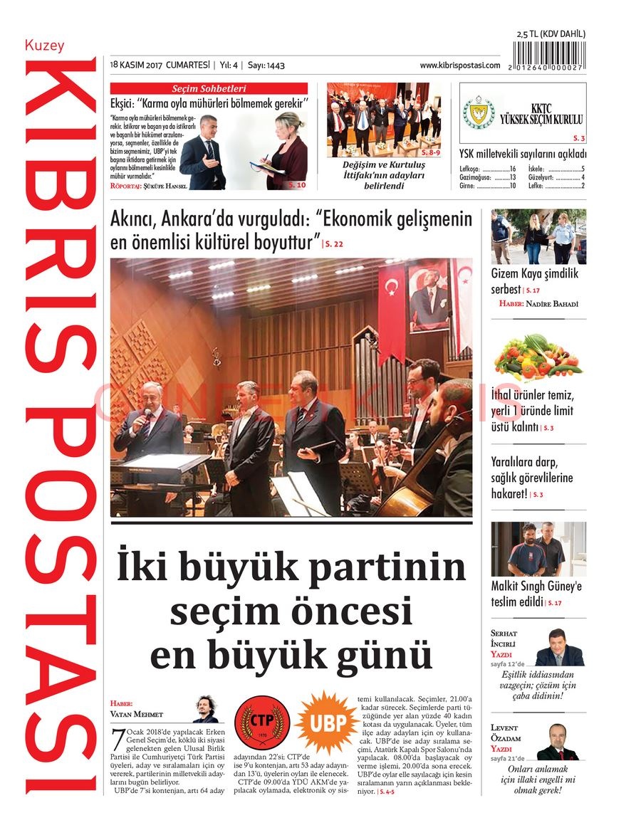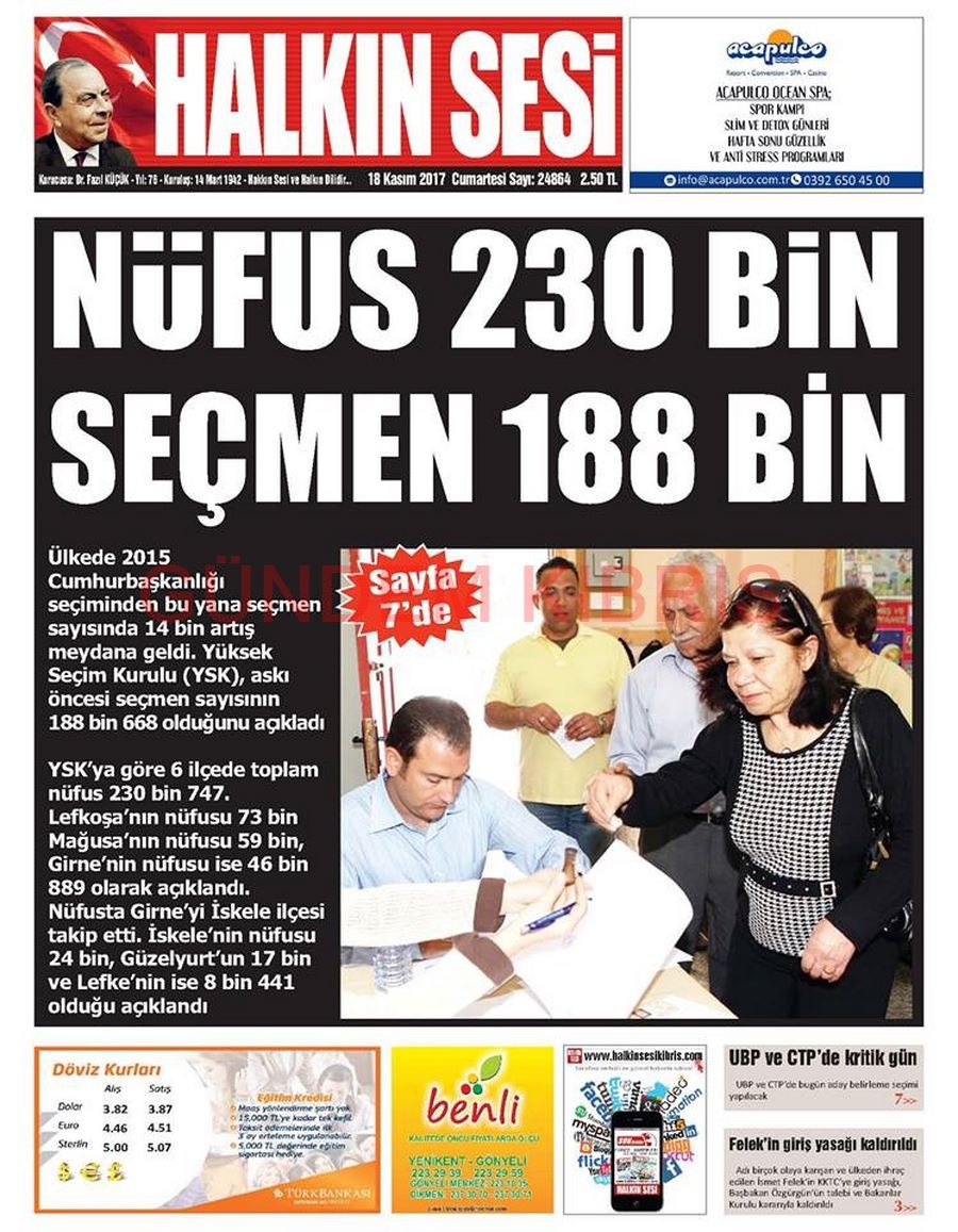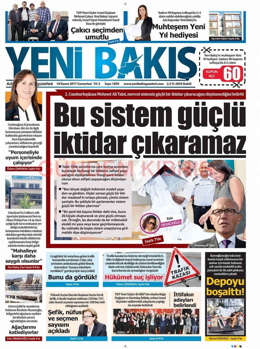 KKTC Gazete Manşetleri 18 Kasım 2017