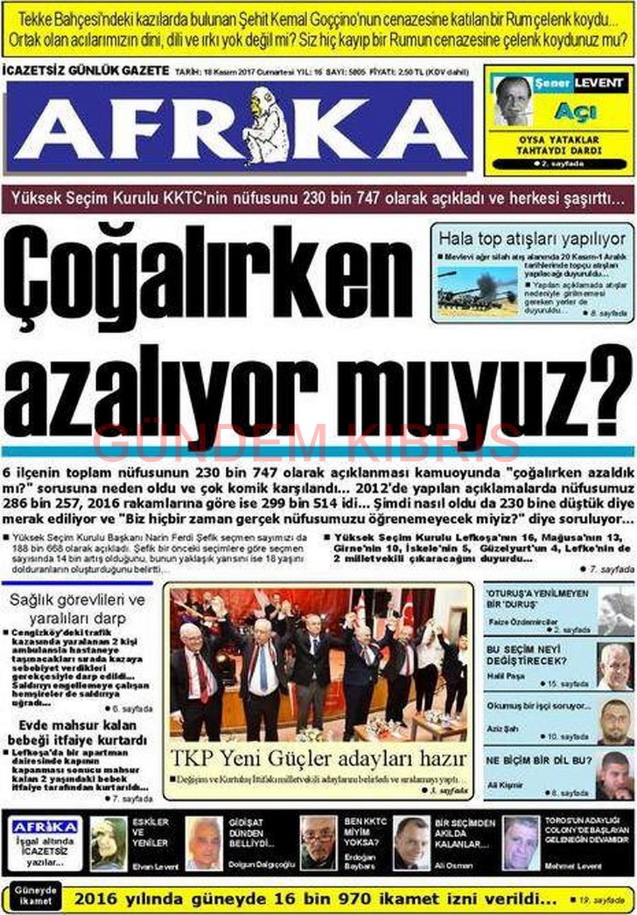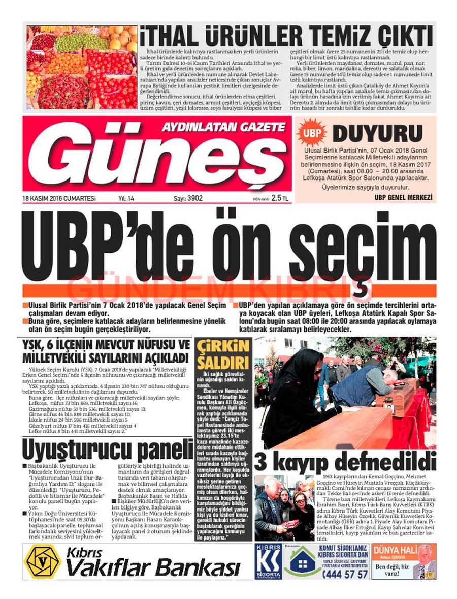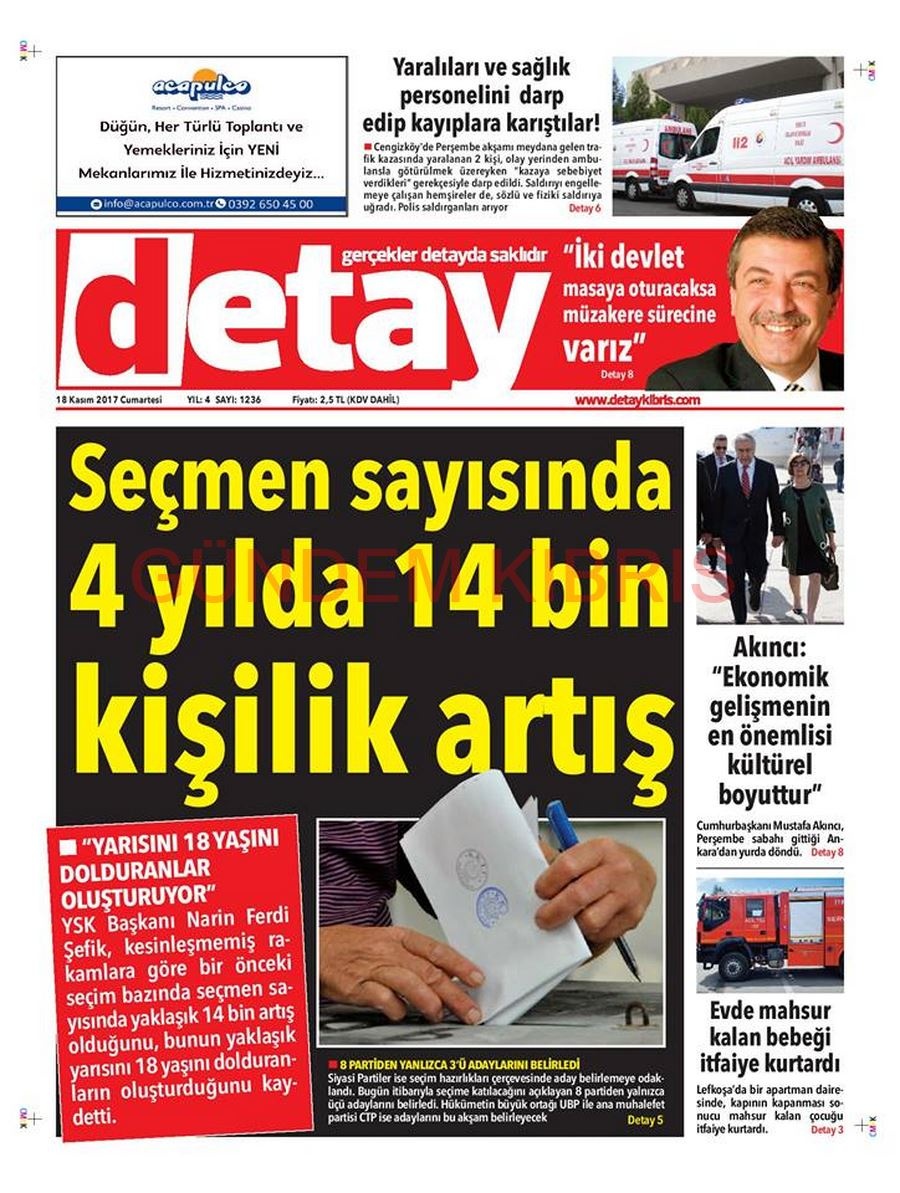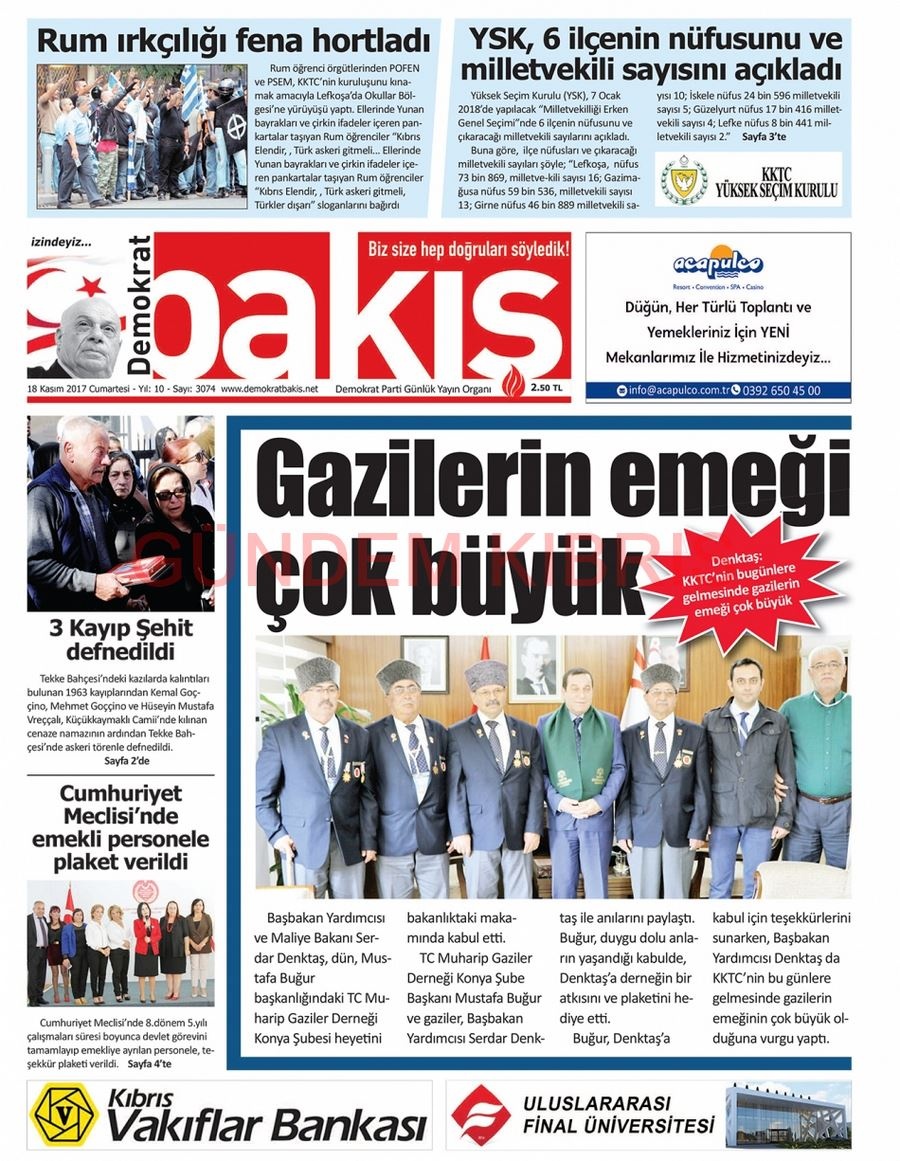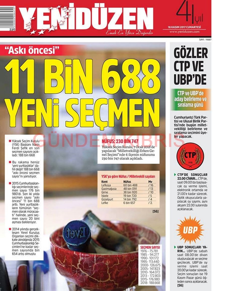 KKTC Gazete Manşetleri 18 Kasım 2017