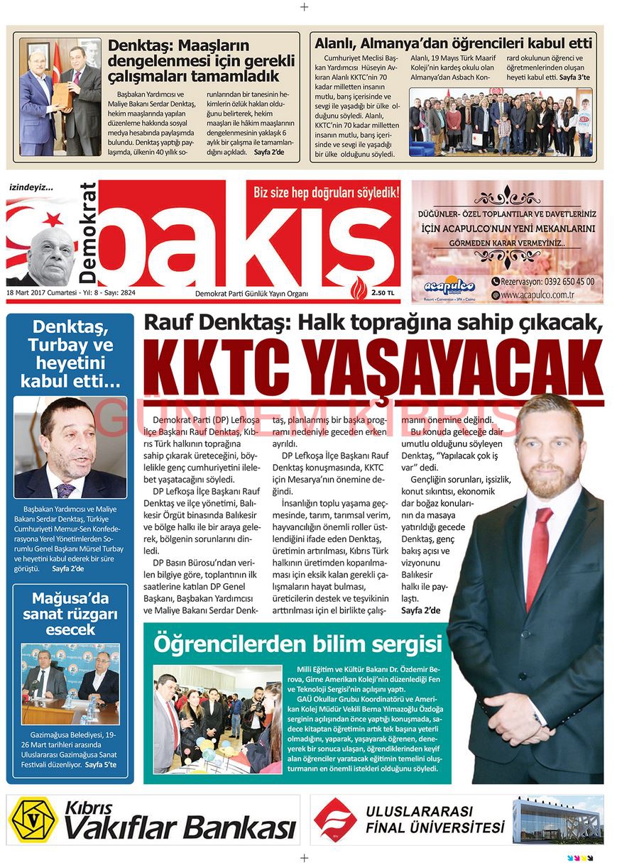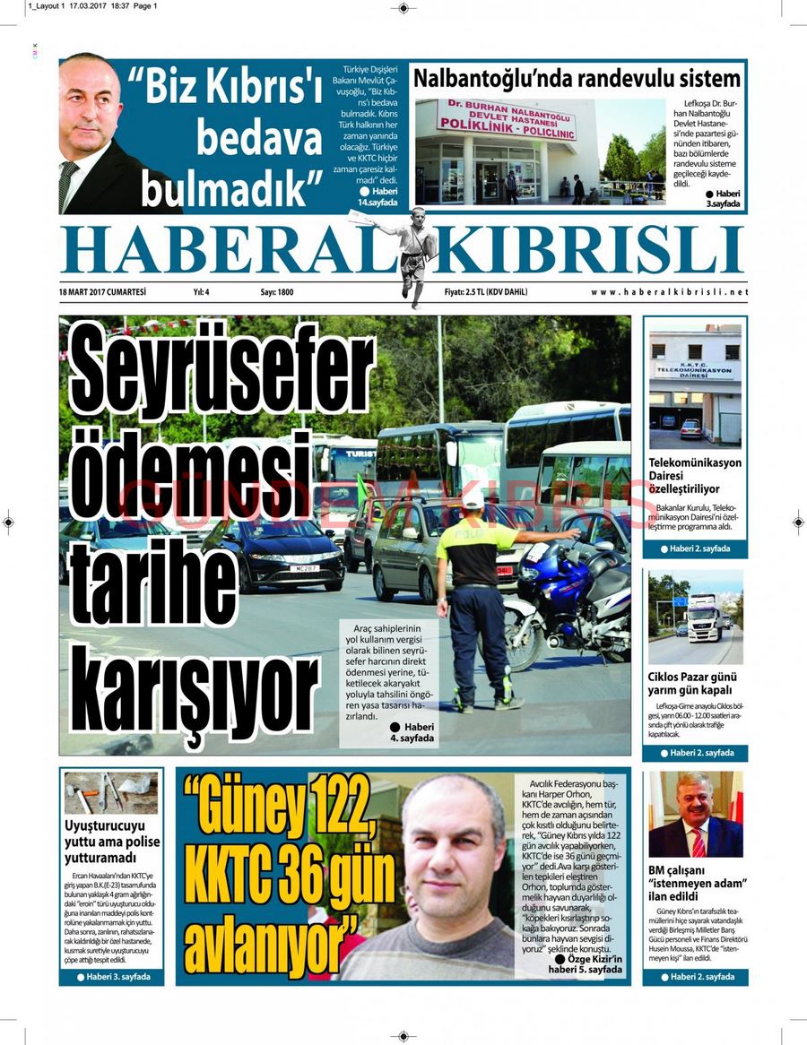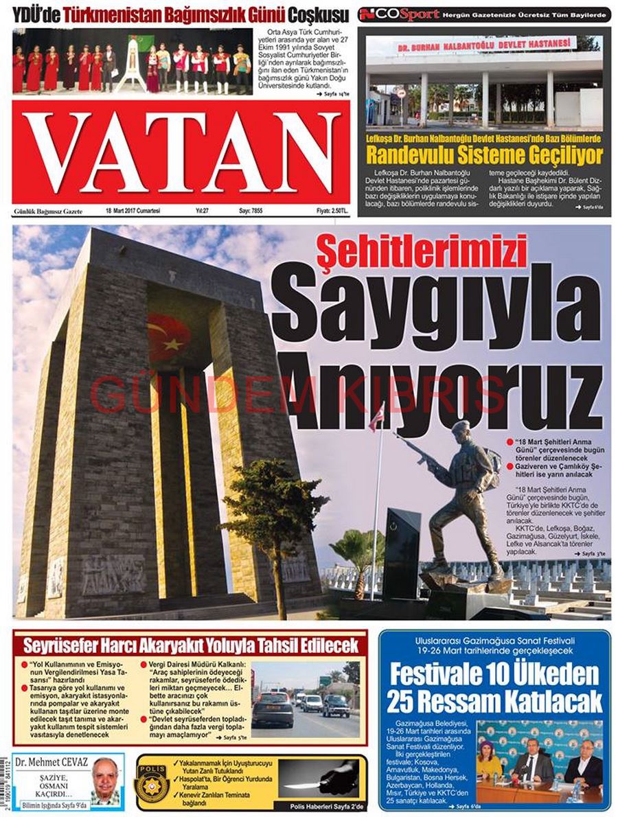 KKTC Gazete Manşetleri 18 Mart 2017