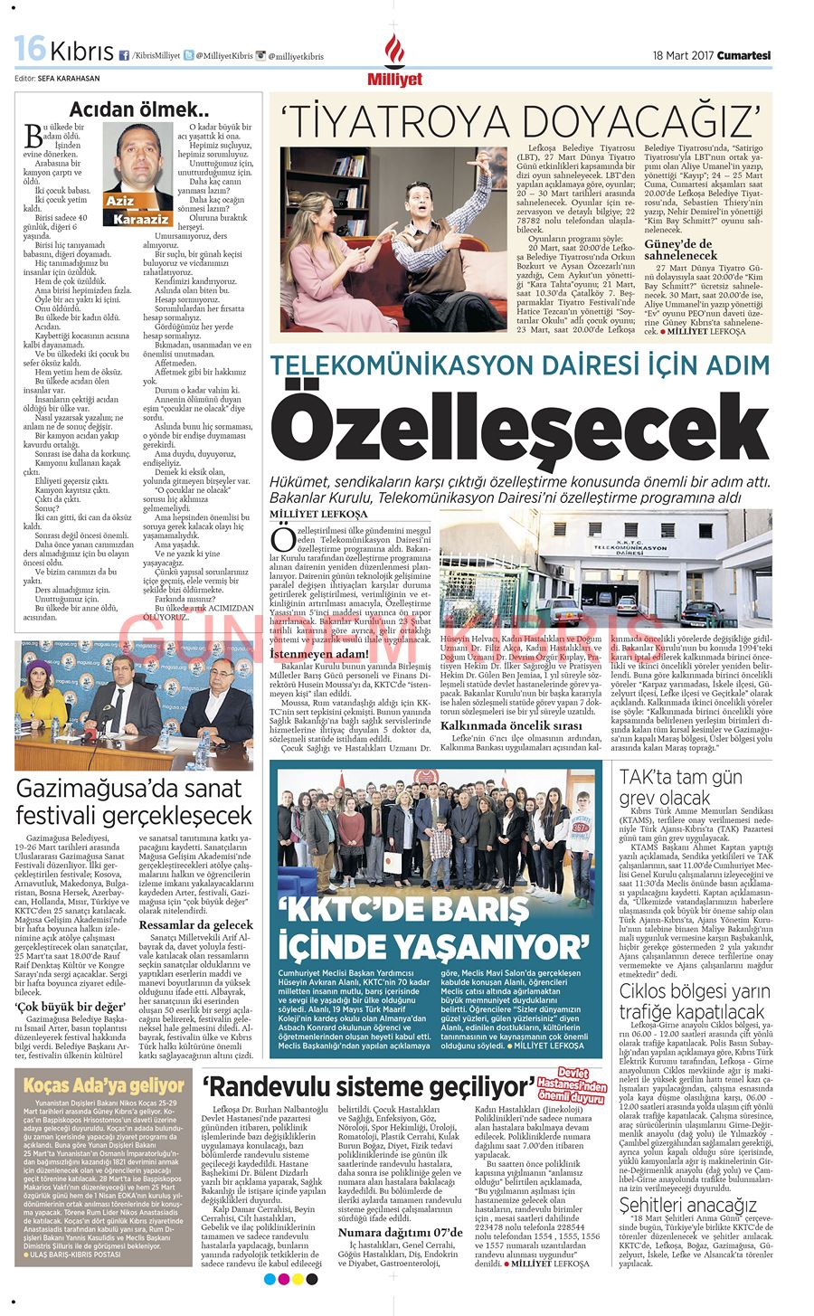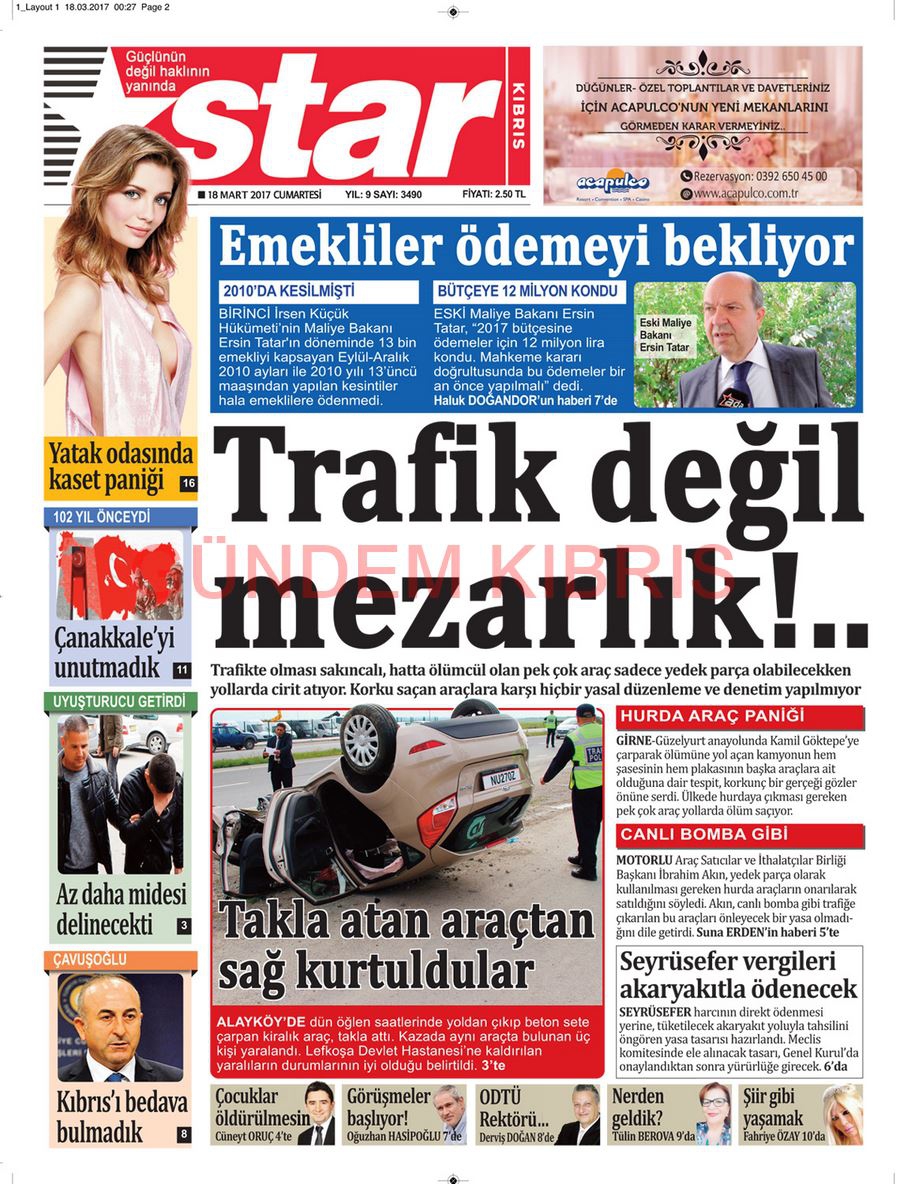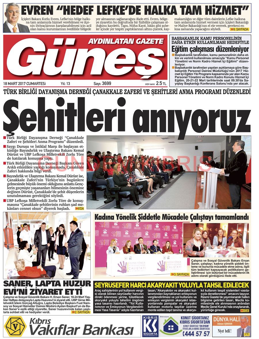 KKTC Gazete Manşetleri 18 Mart 2017