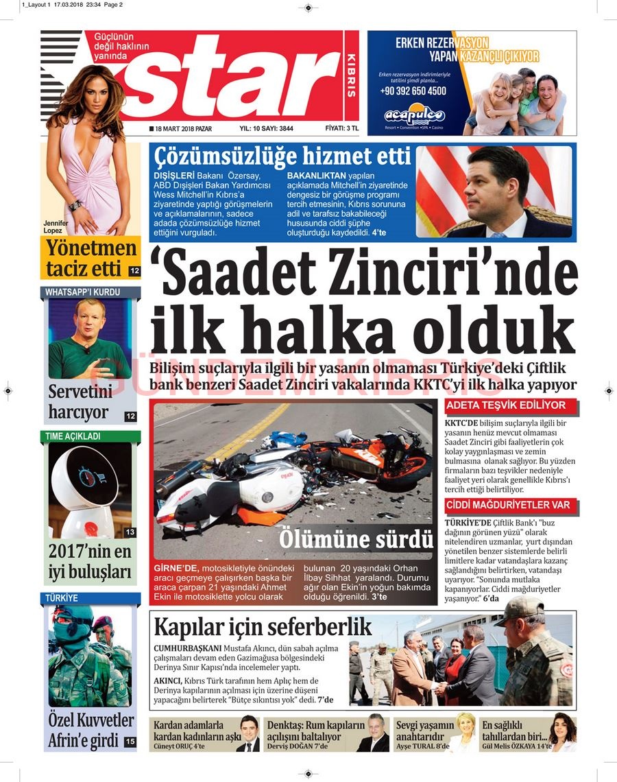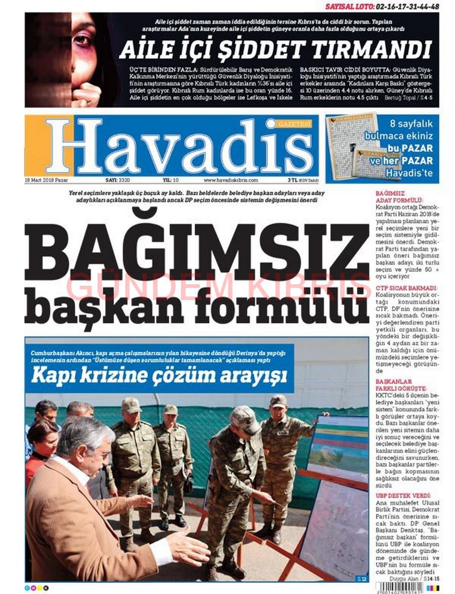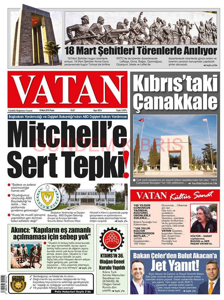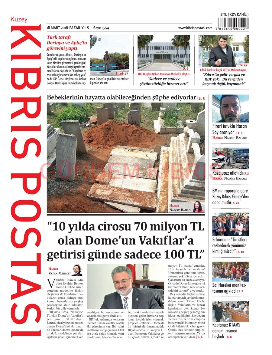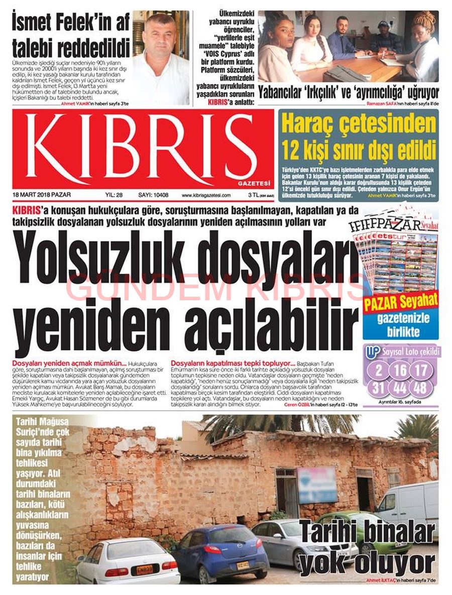 KKTC Gazete Manşetleri 18 Mart 2018