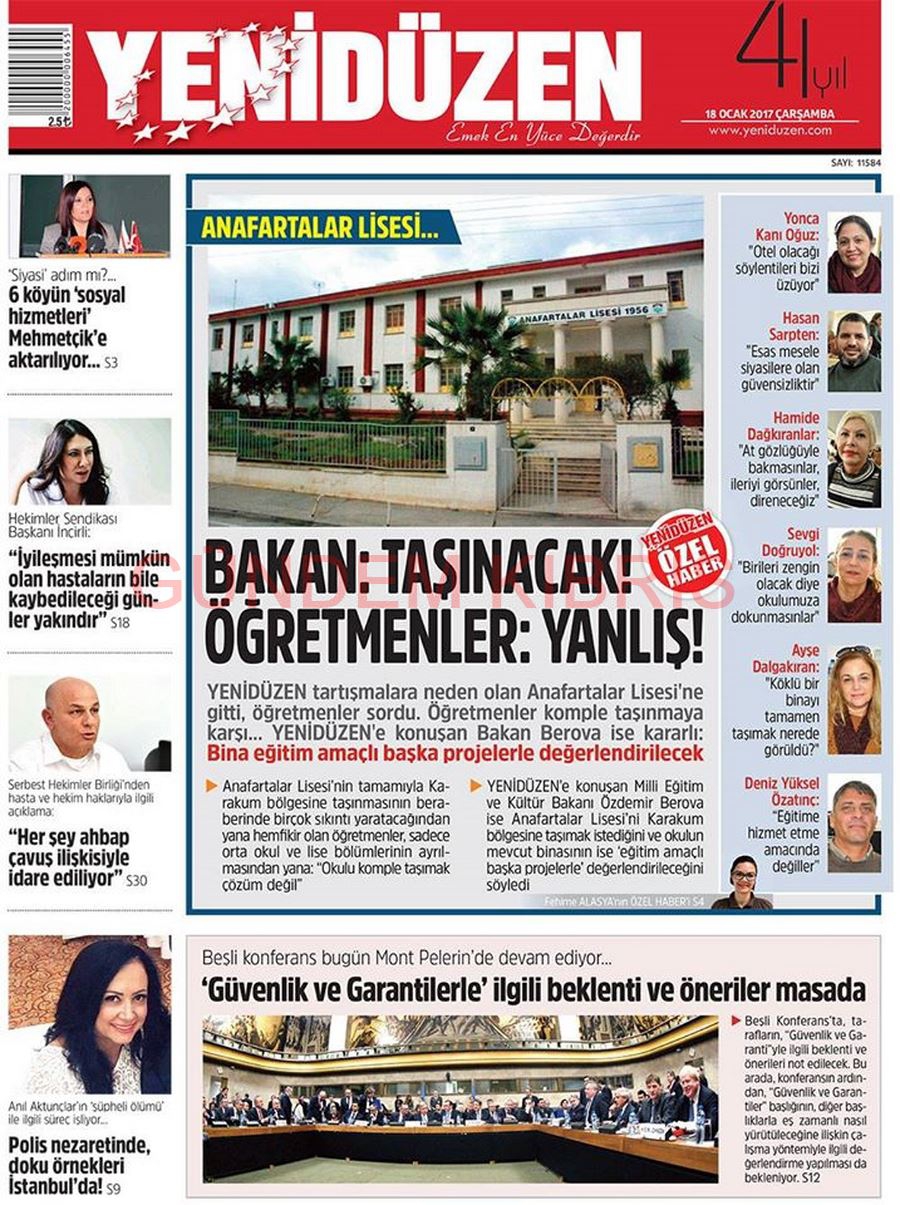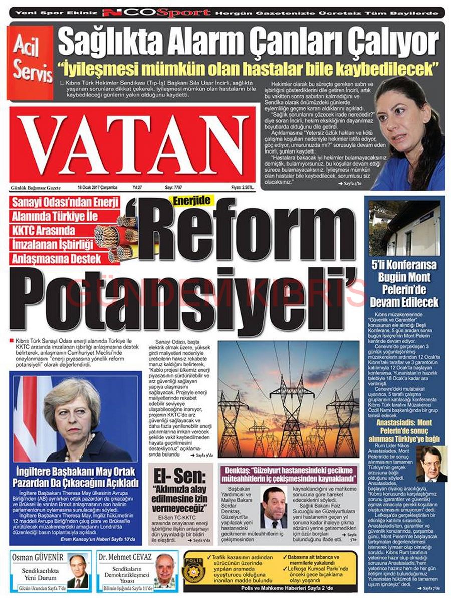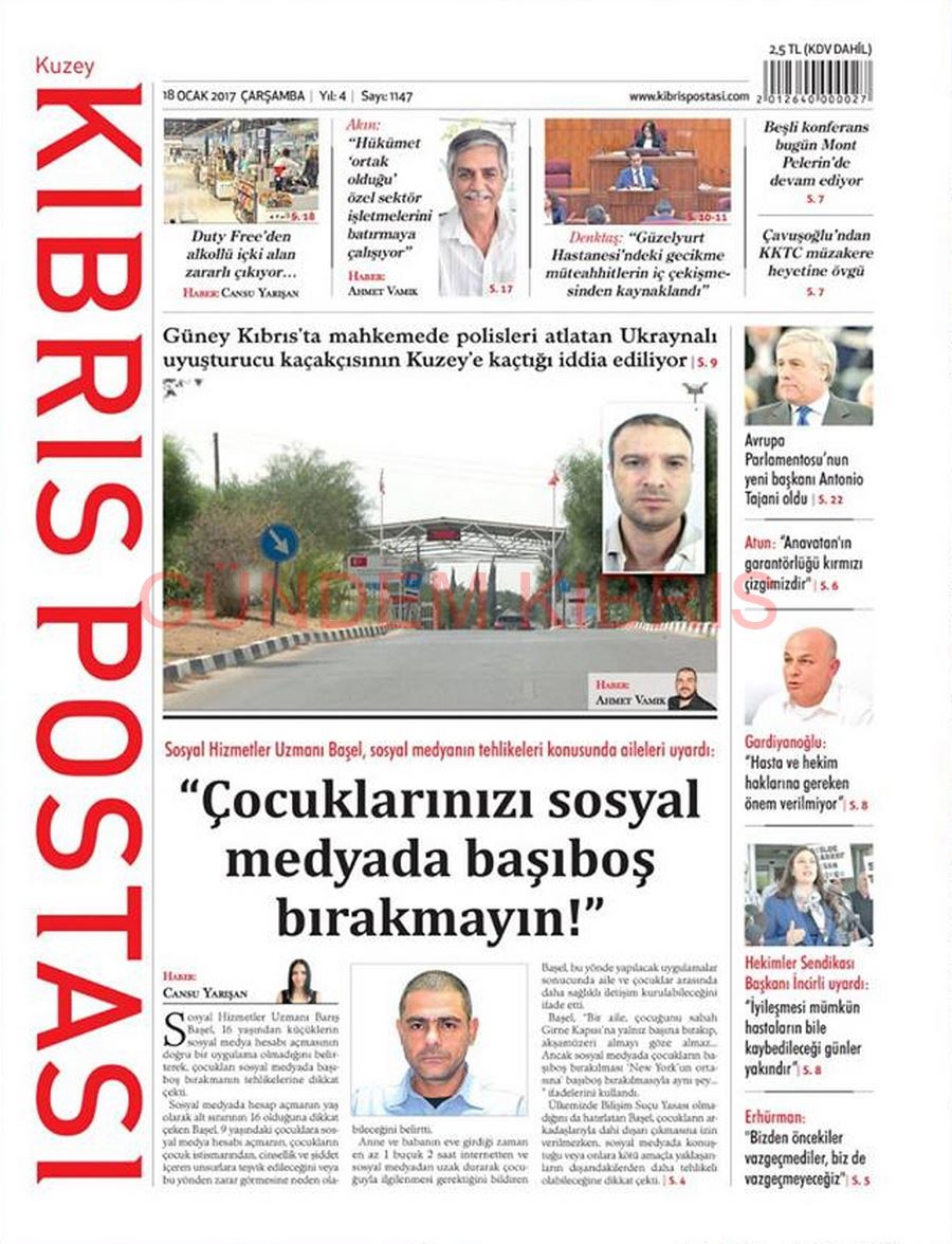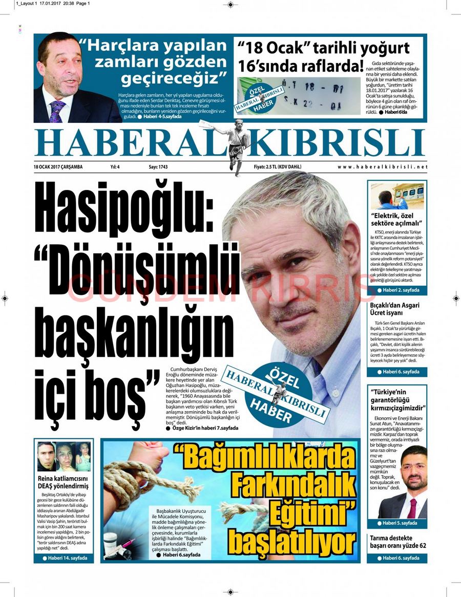 KKTC Gazete Manşetleri 18 Ocak 2017