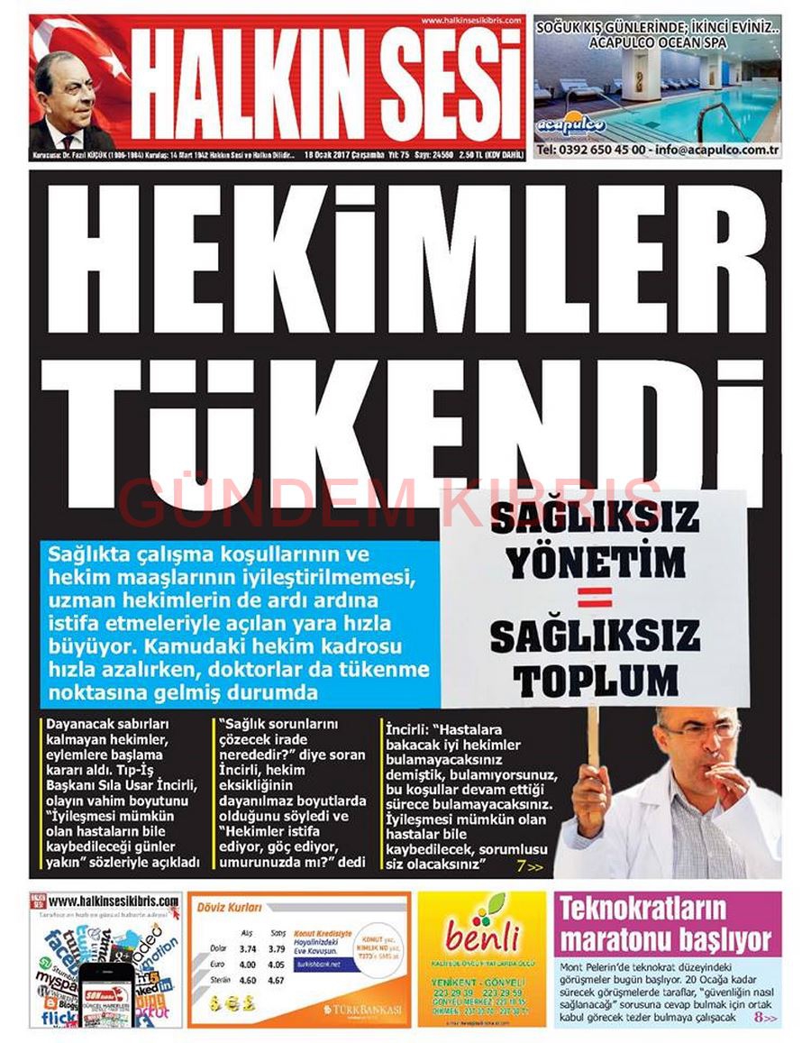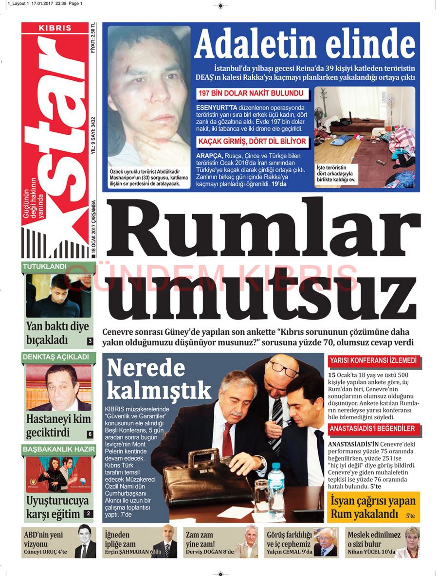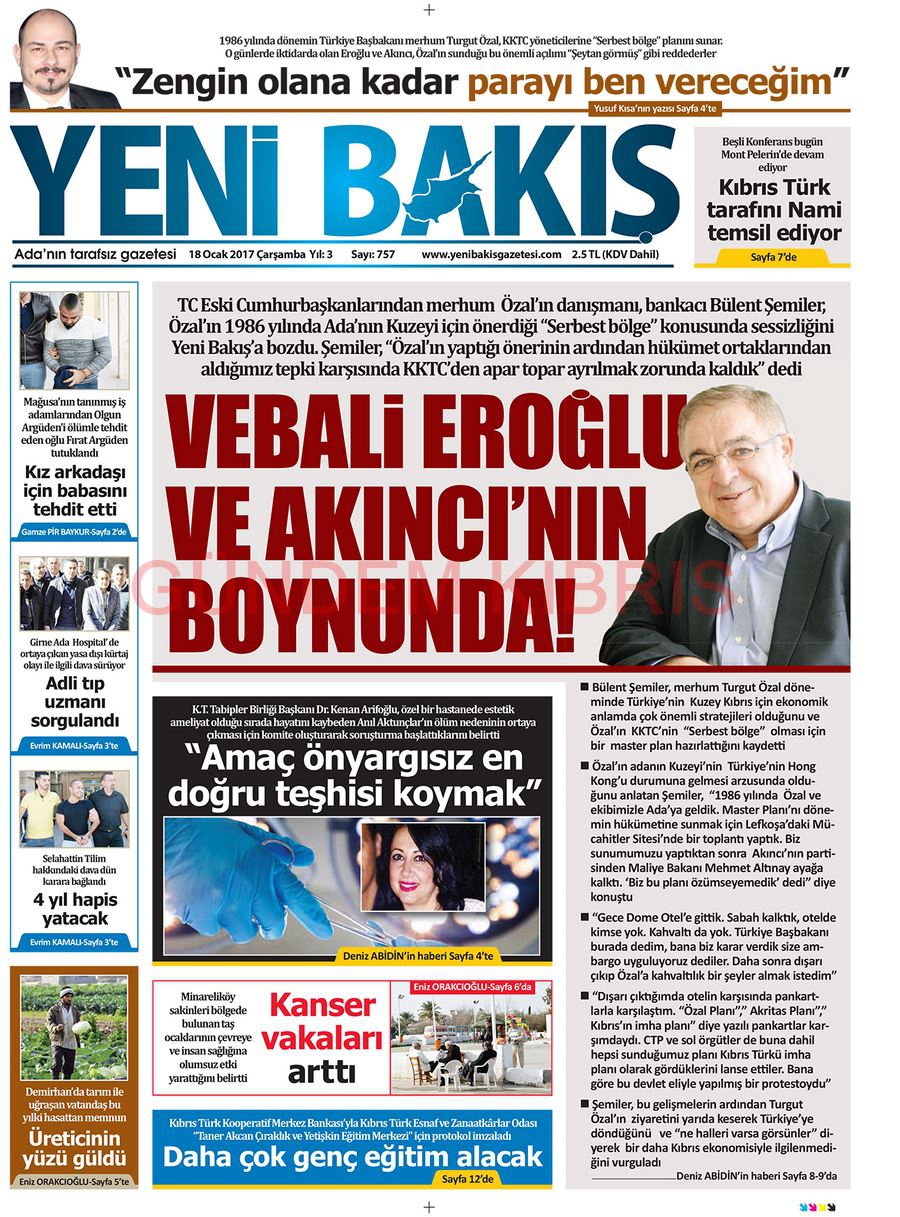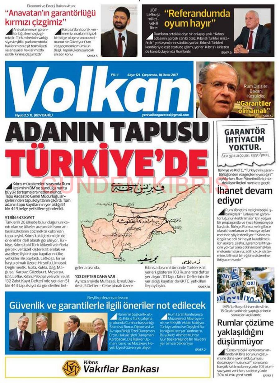 KKTC Gazete Manşetleri 18 Ocak 2017