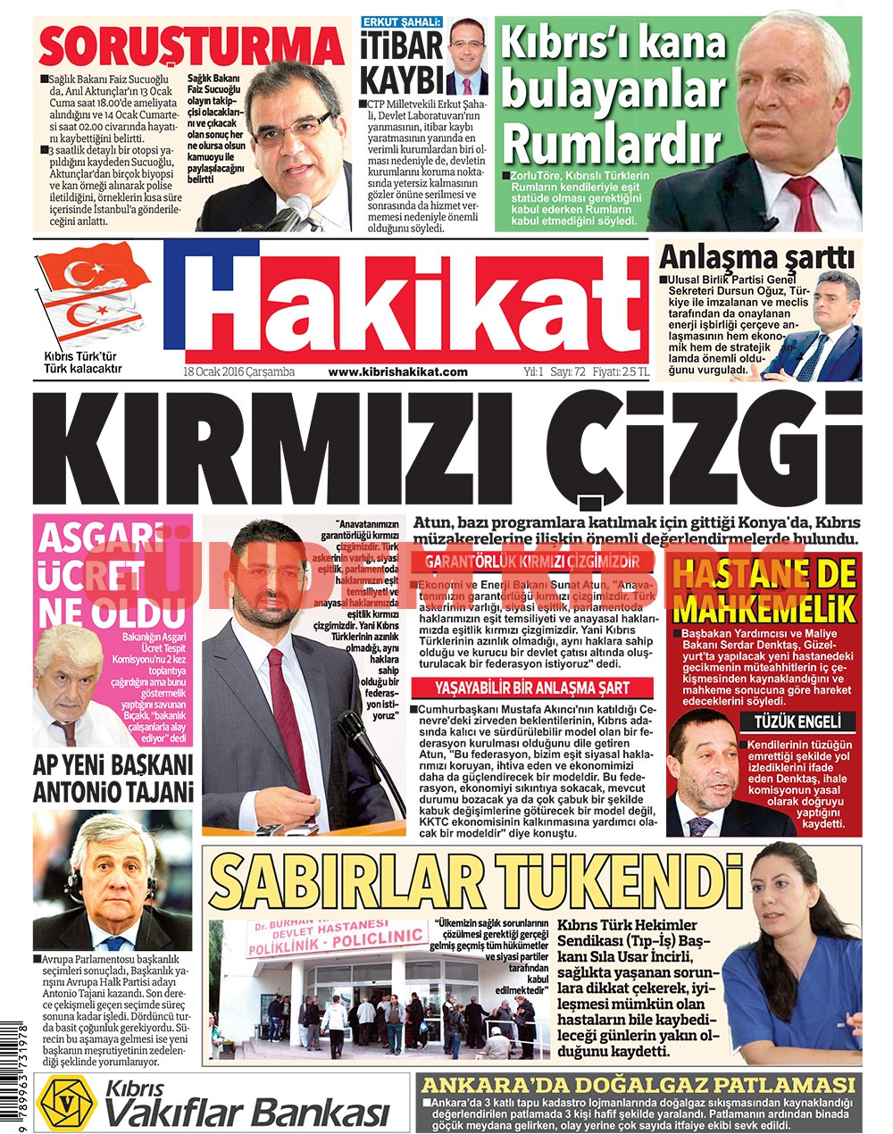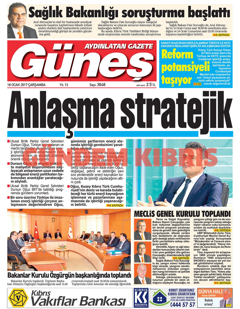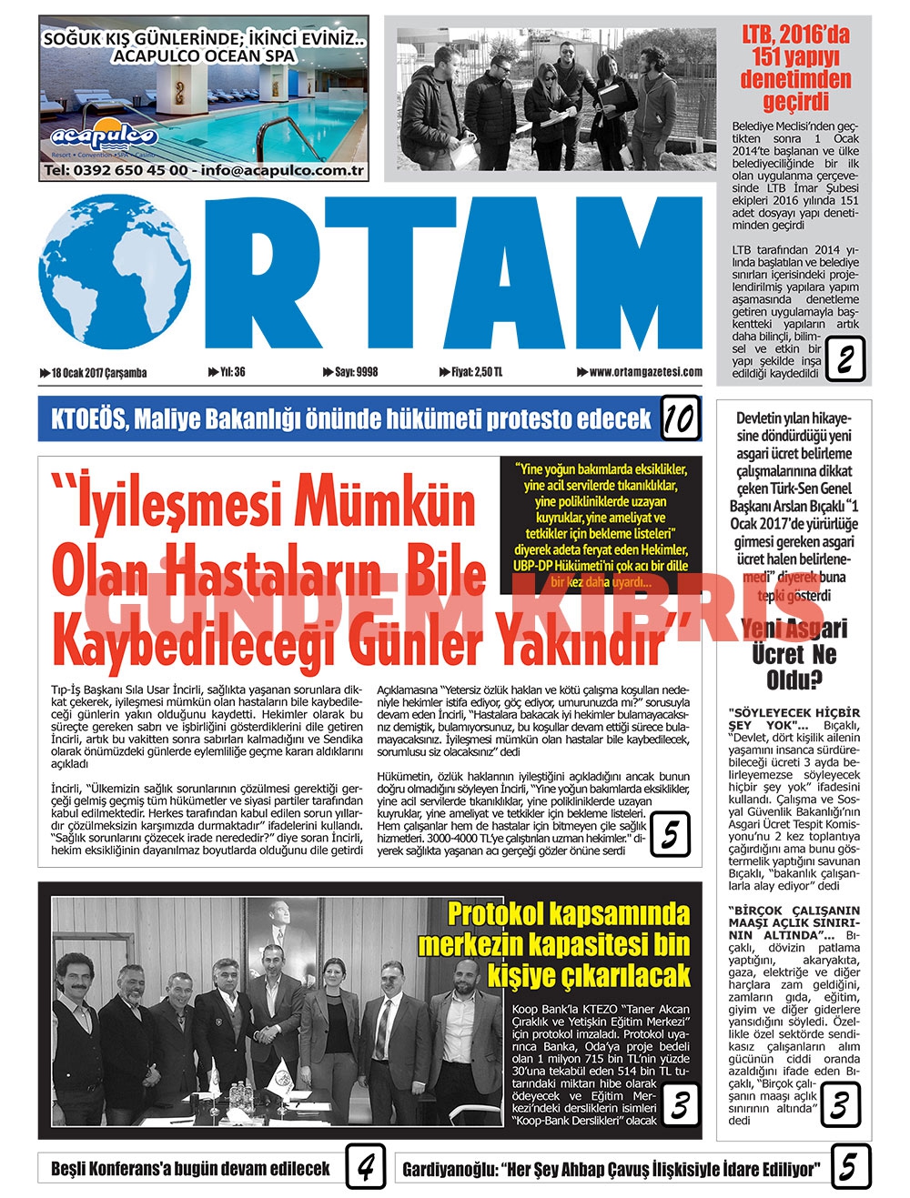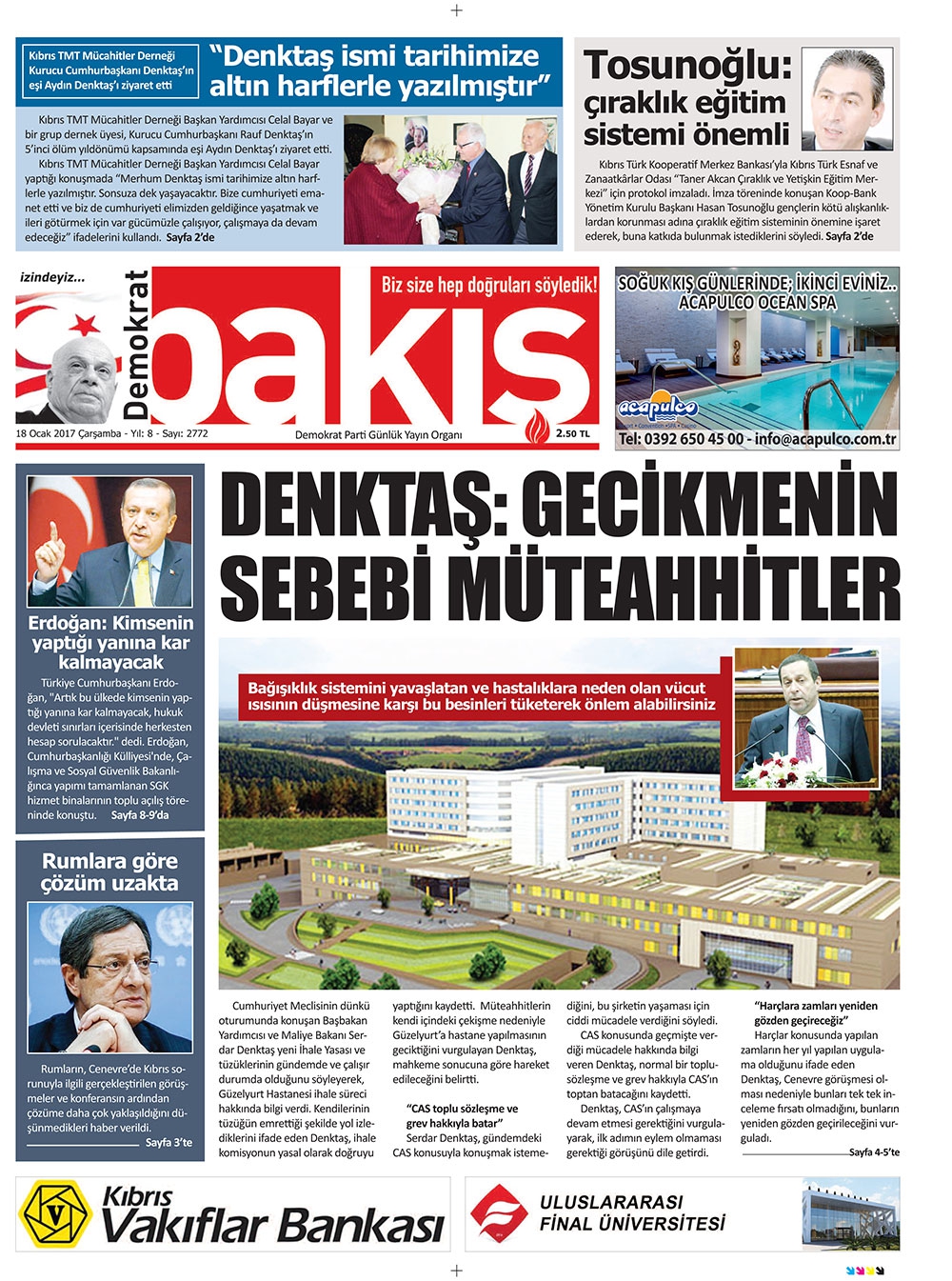KKTC Gazete Manşetleri 18 Ocak 2017