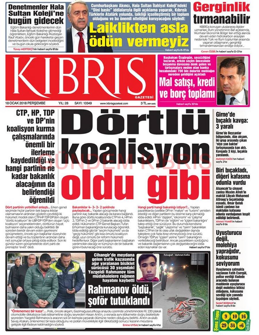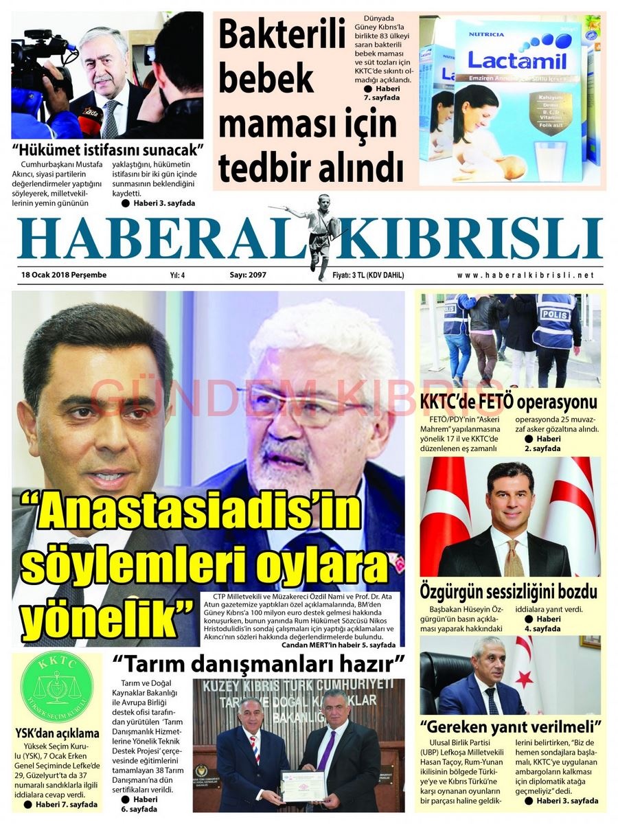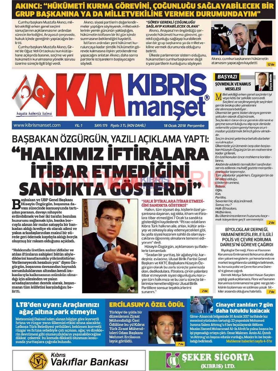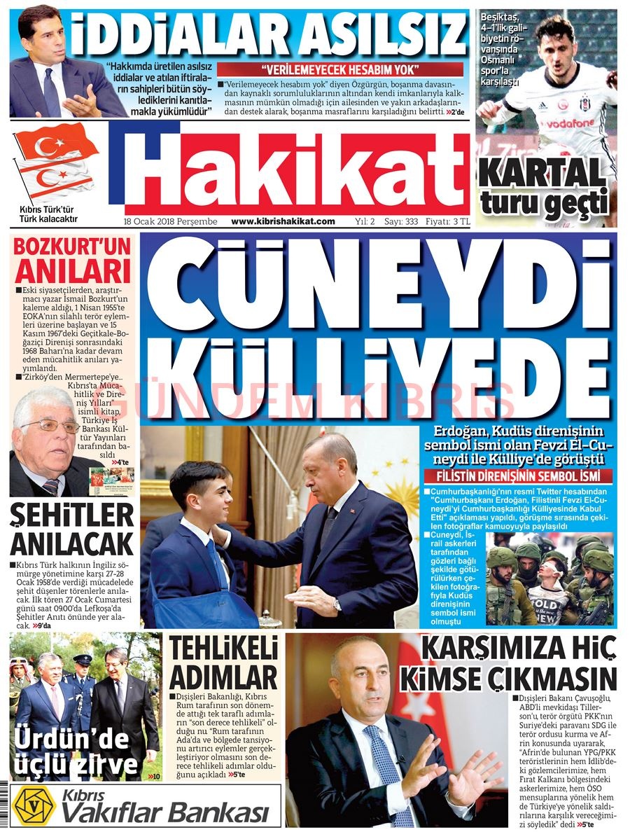 KKTC Gazete Manşetleri 18 Ocak 2018