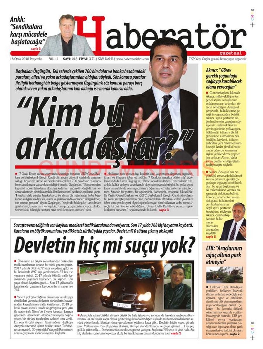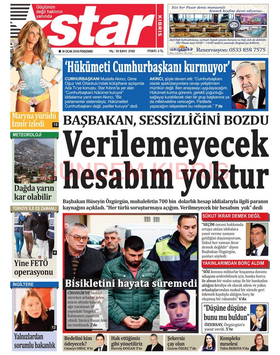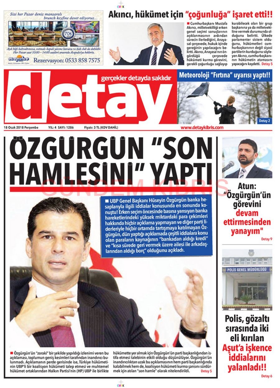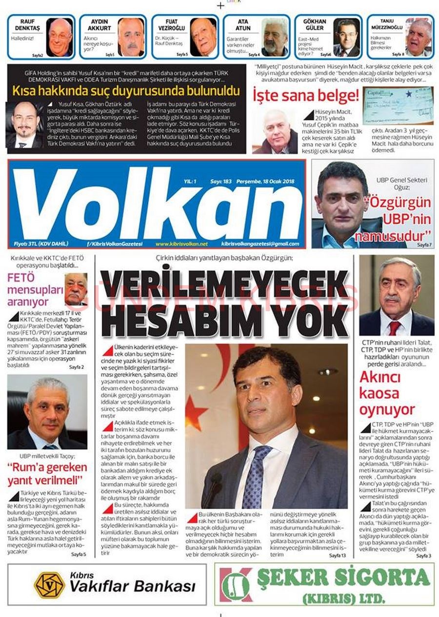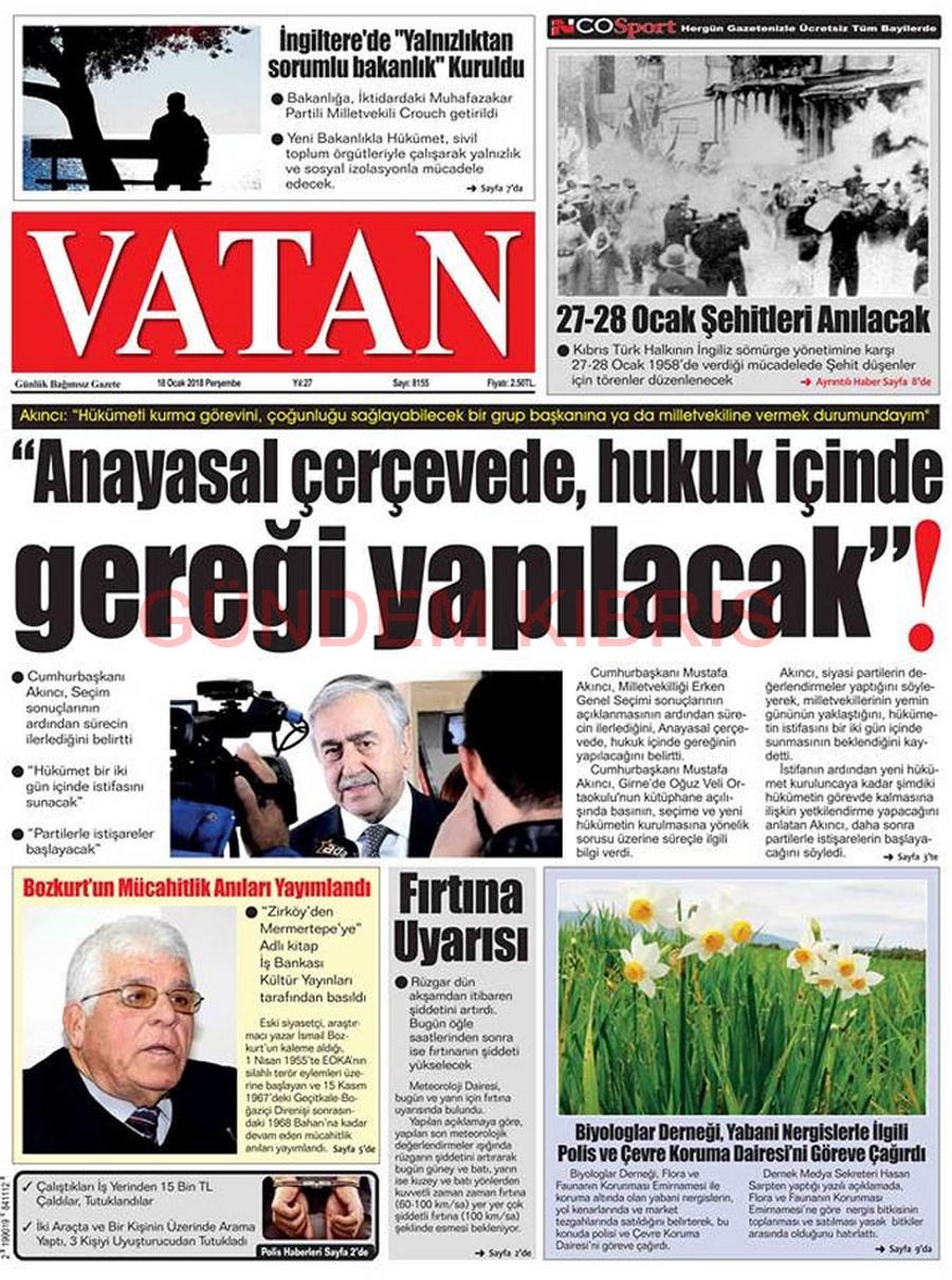 KKTC Gazete Manşetleri 18 Ocak 2018