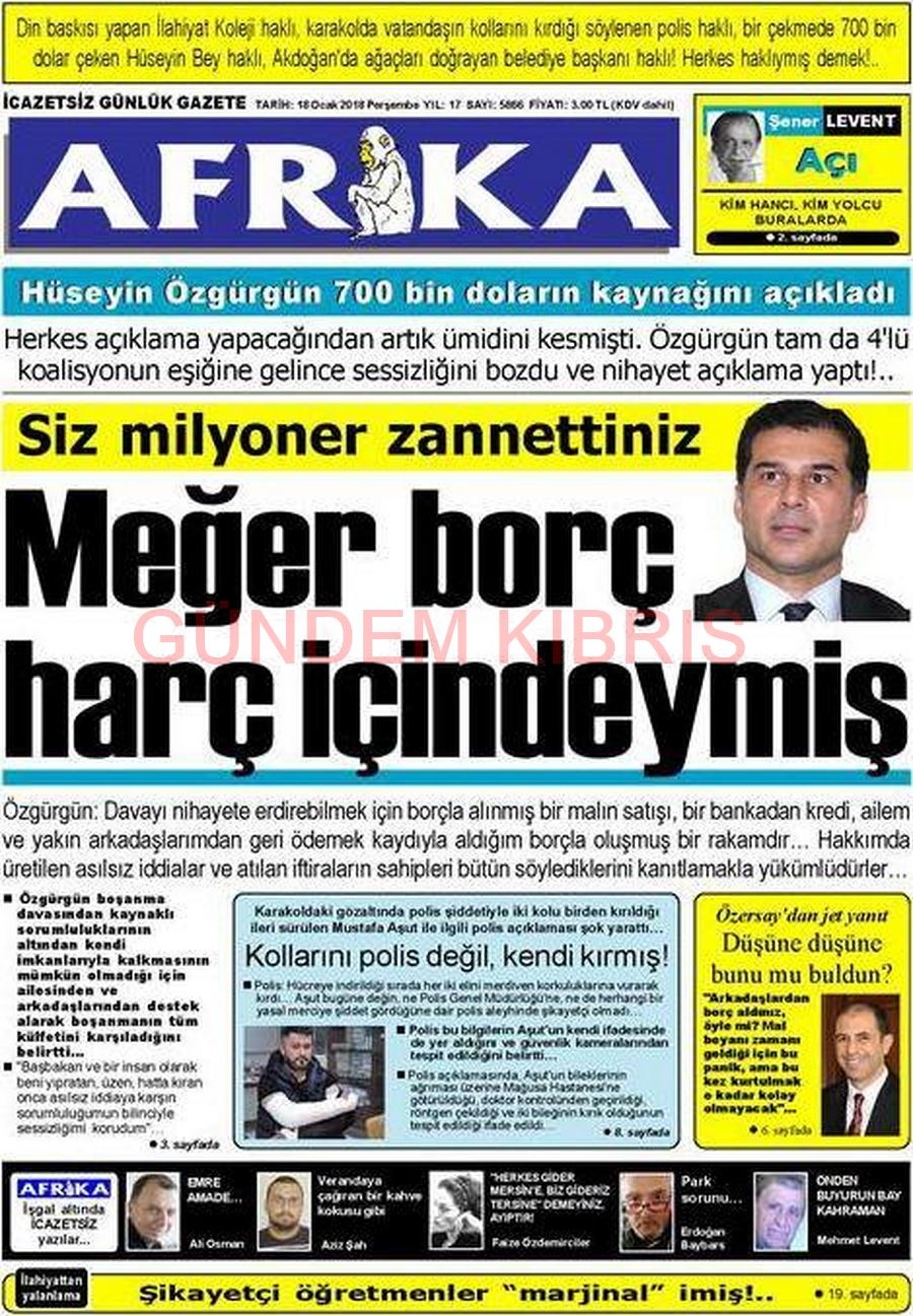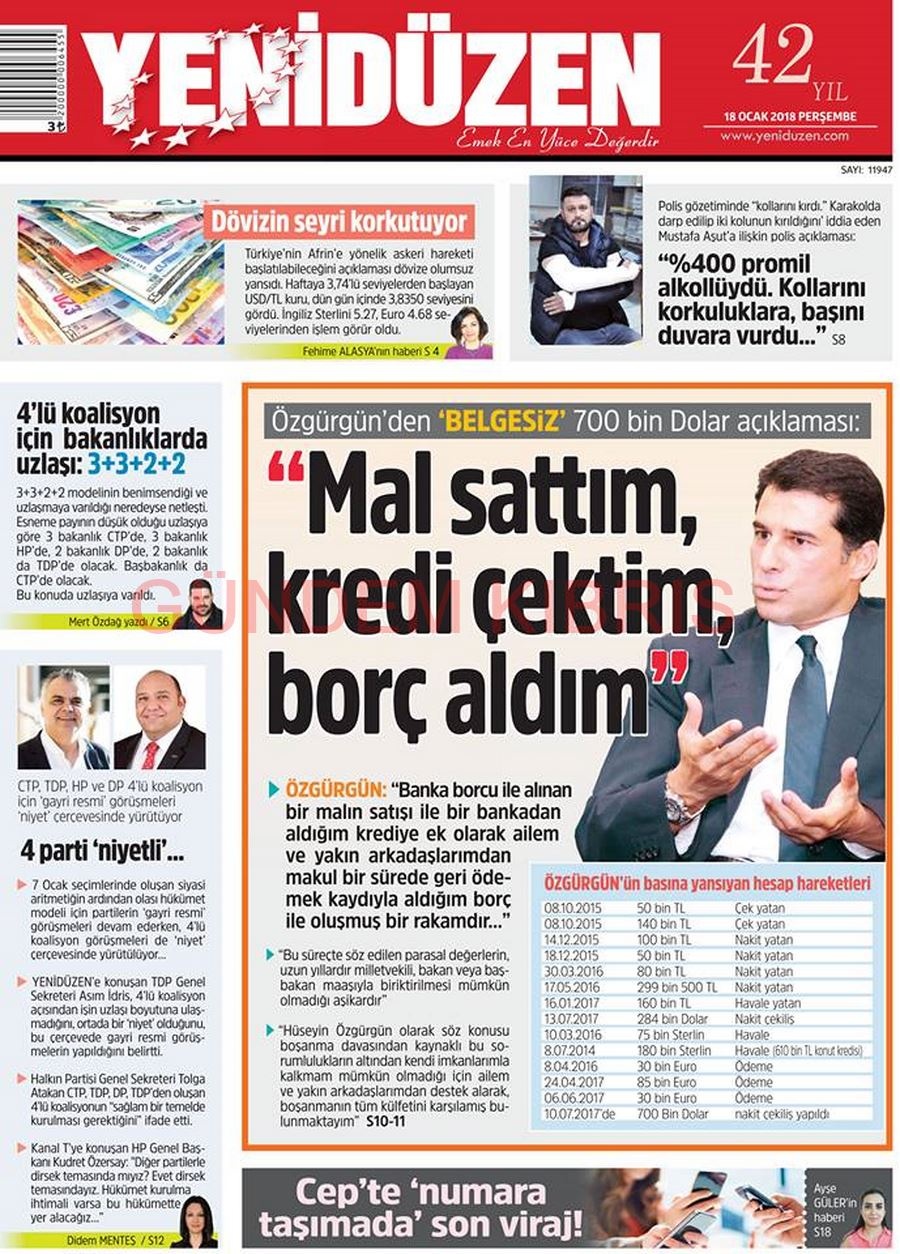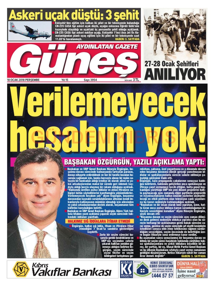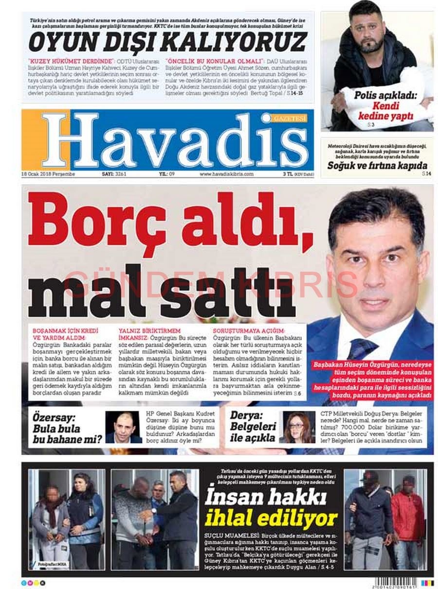 KKTC Gazete Manşetleri 18 Ocak 2018