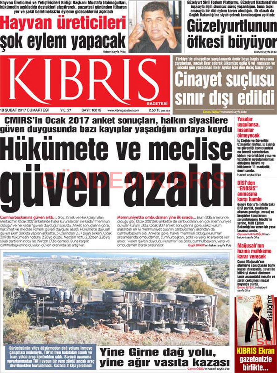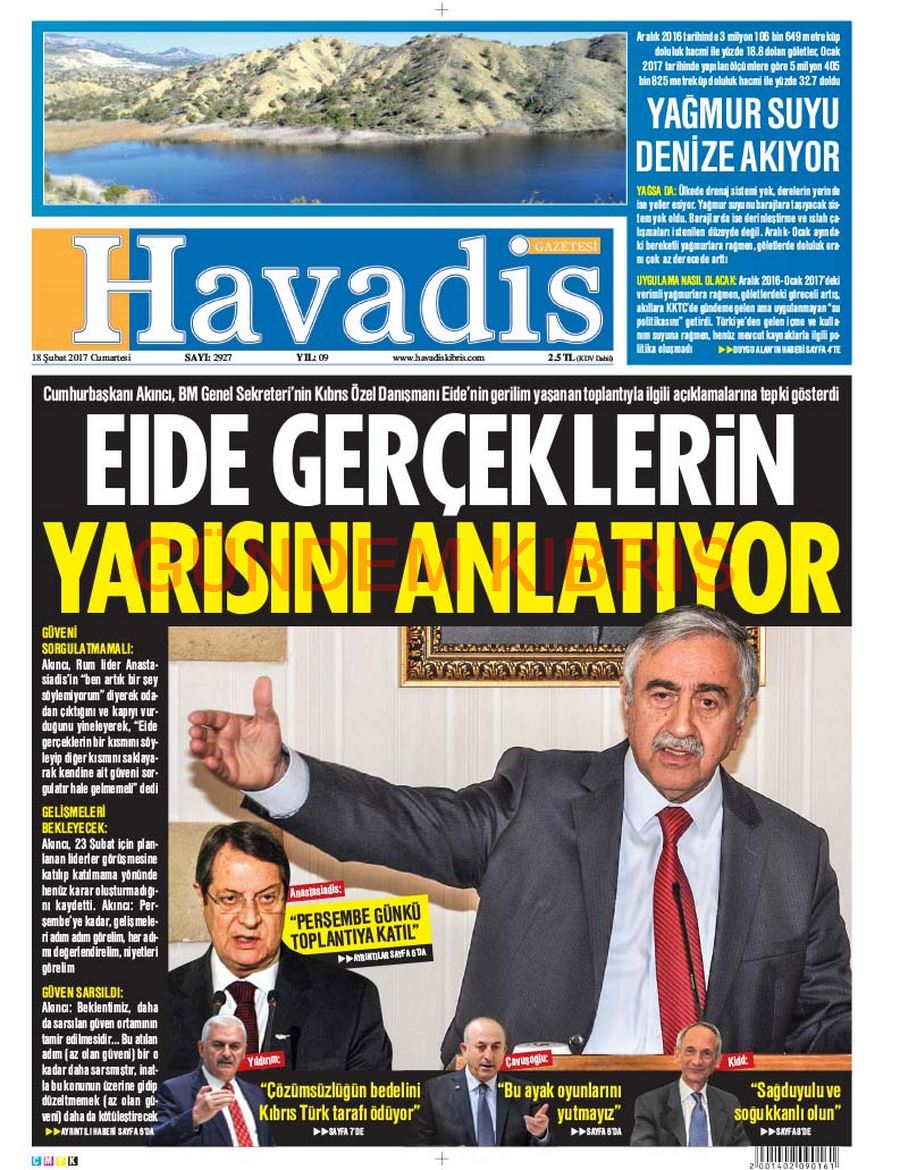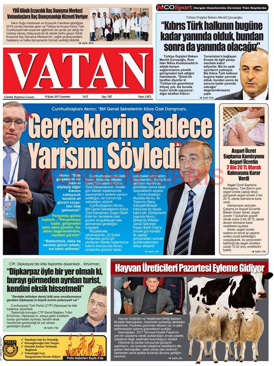 KKTC Gazete Manşetleri 18 Şubat 2017
