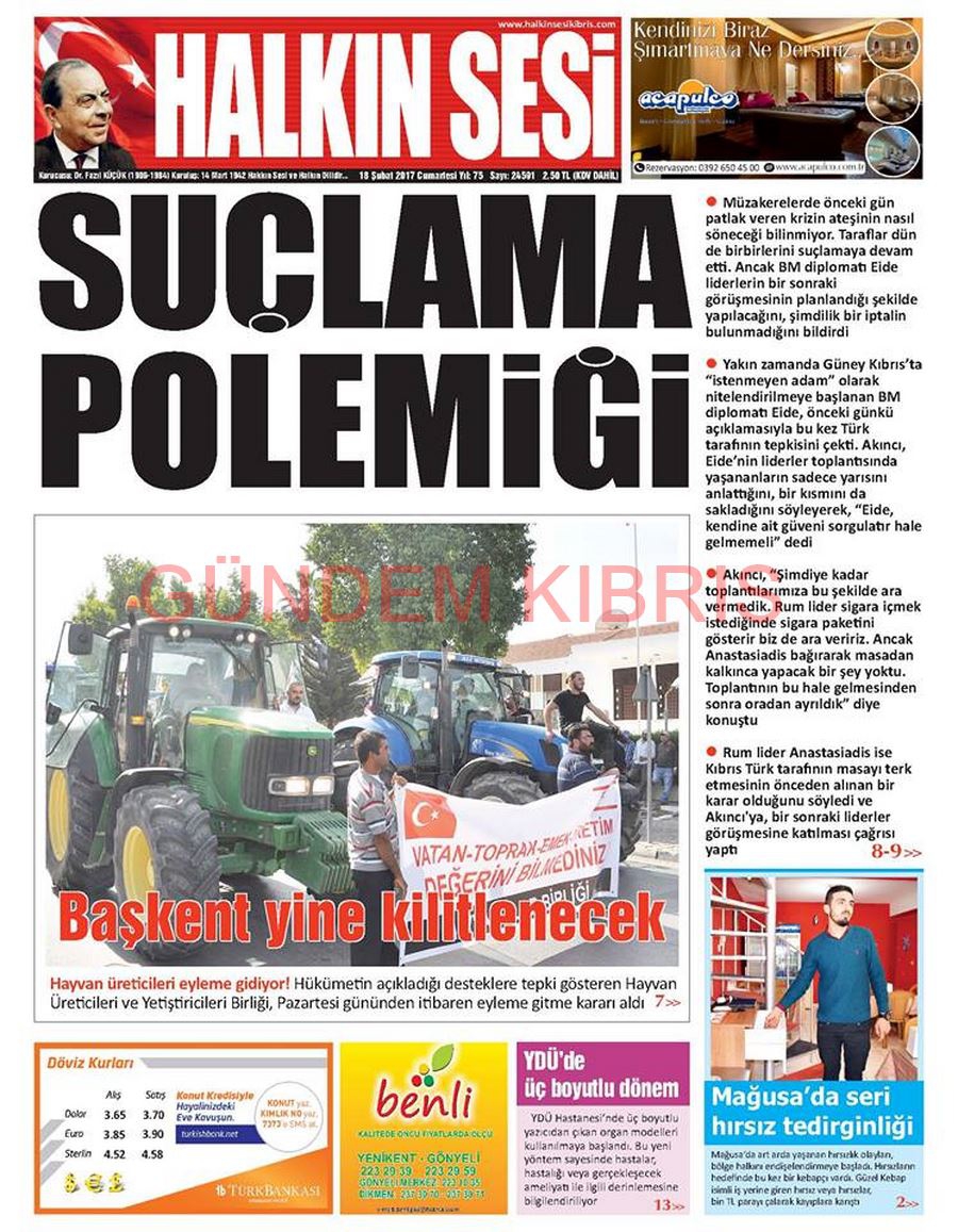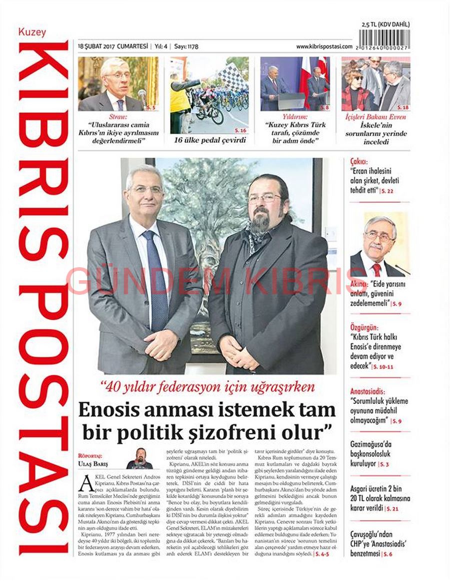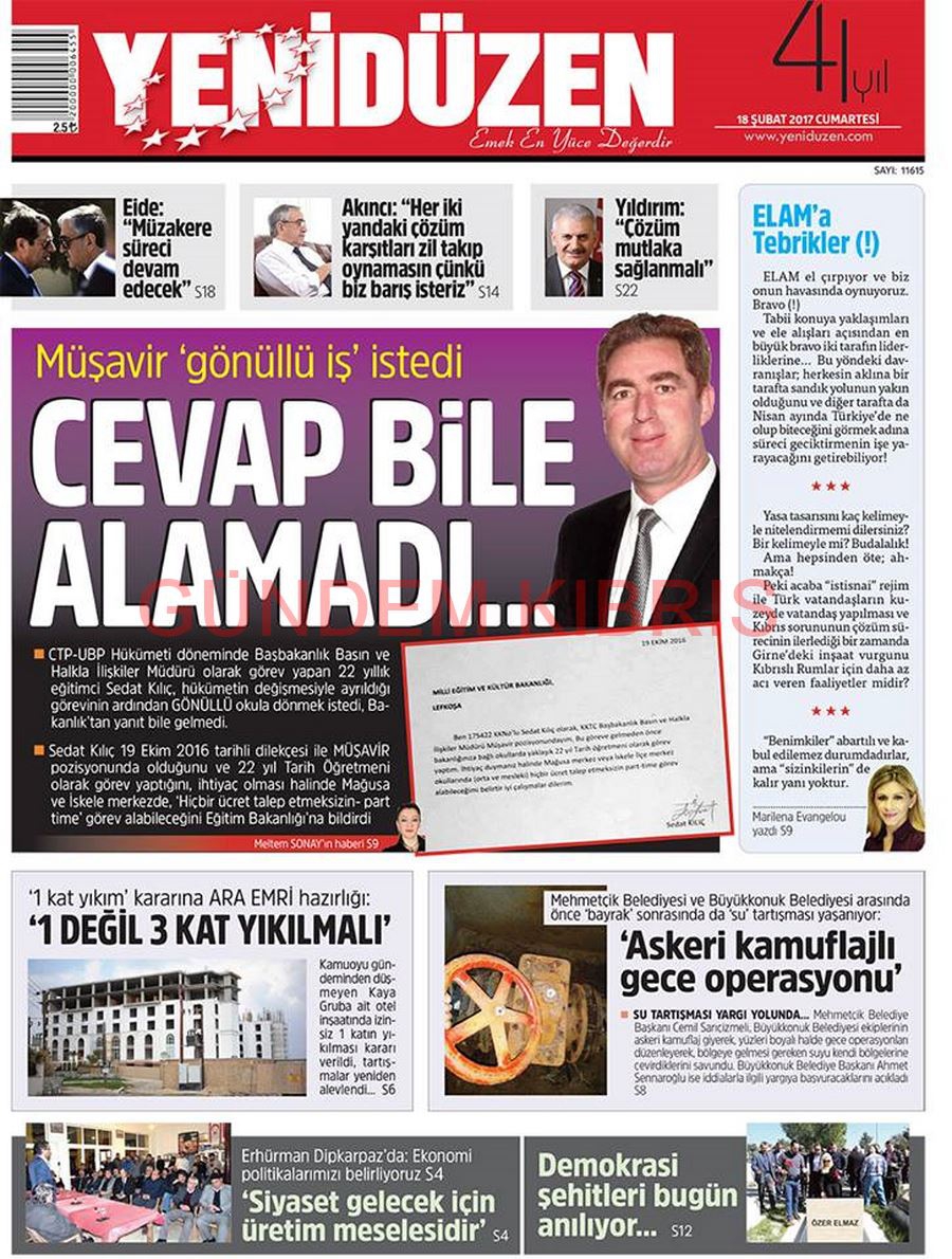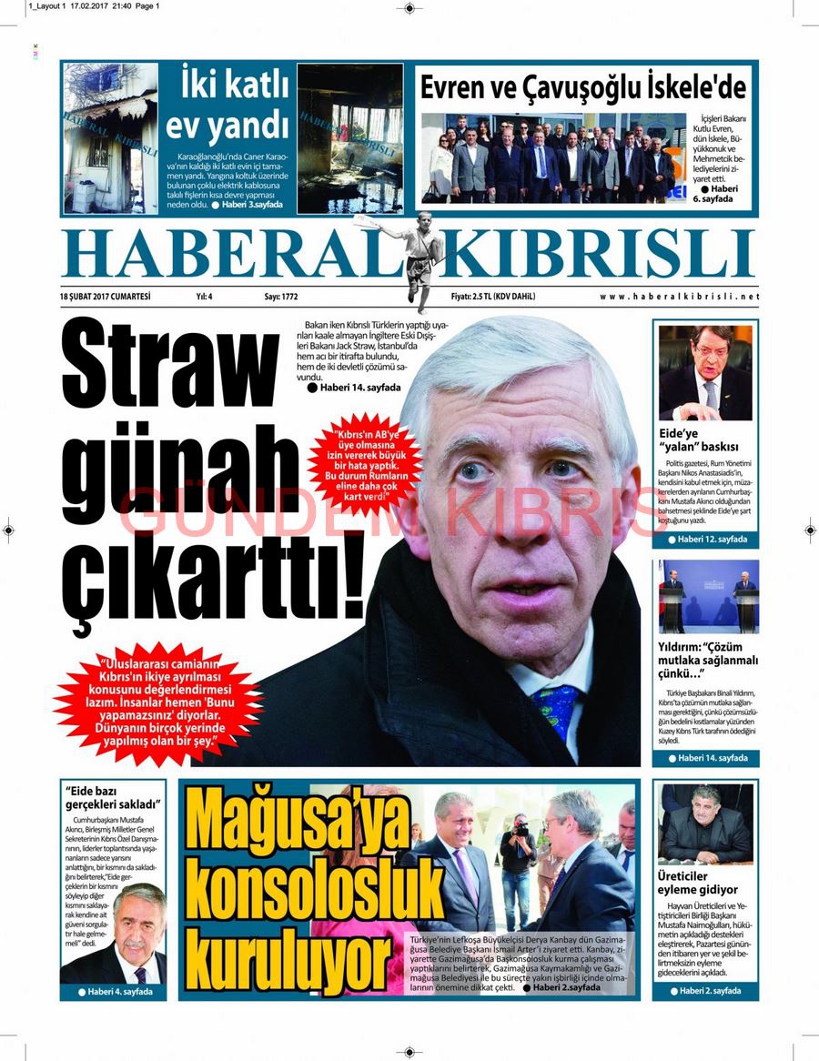 KKTC Gazete Manşetleri 18 Şubat 2017