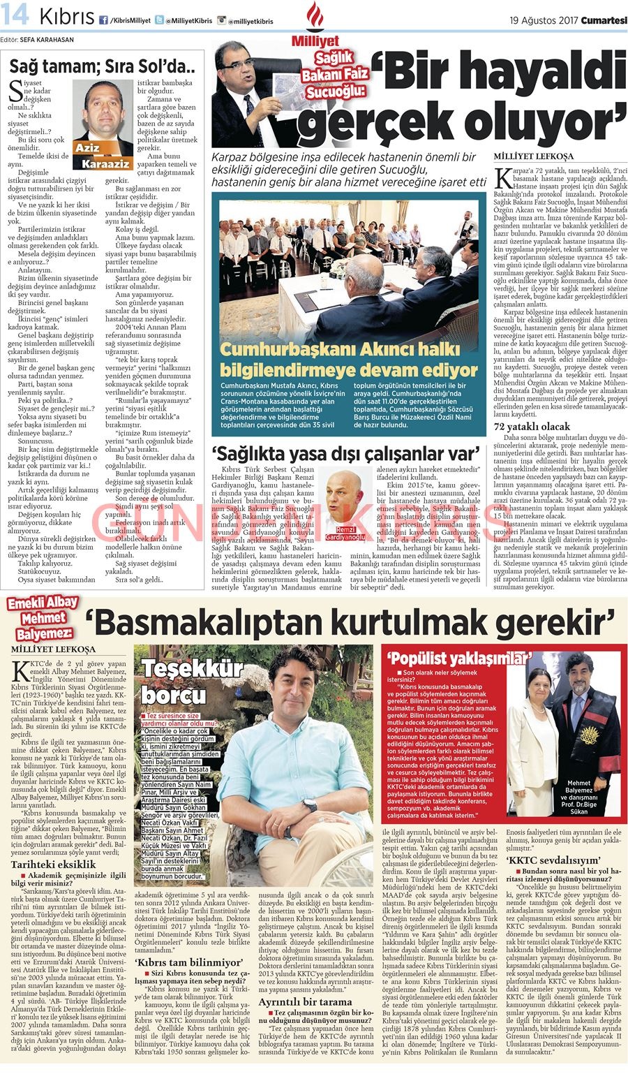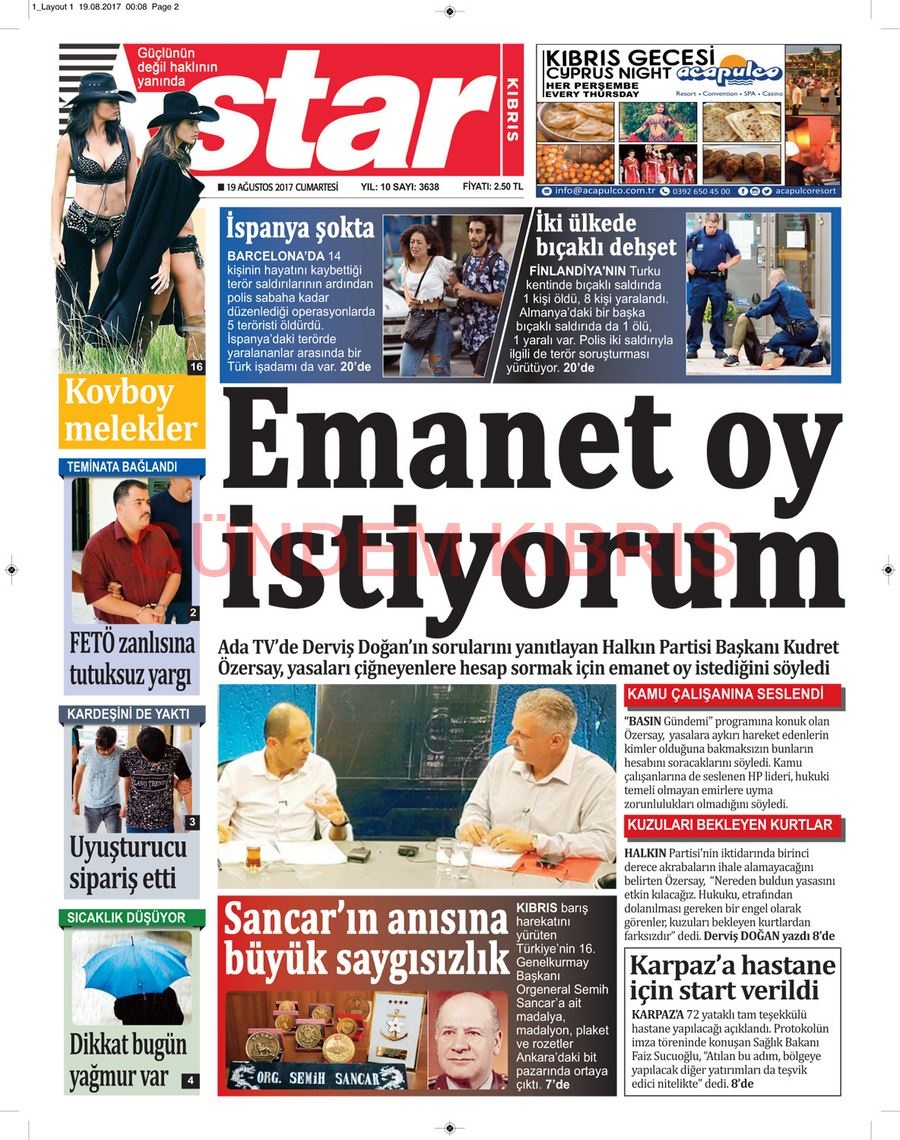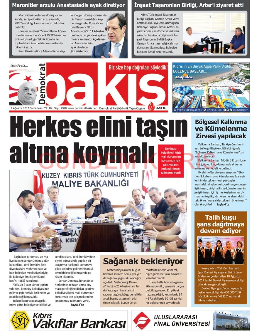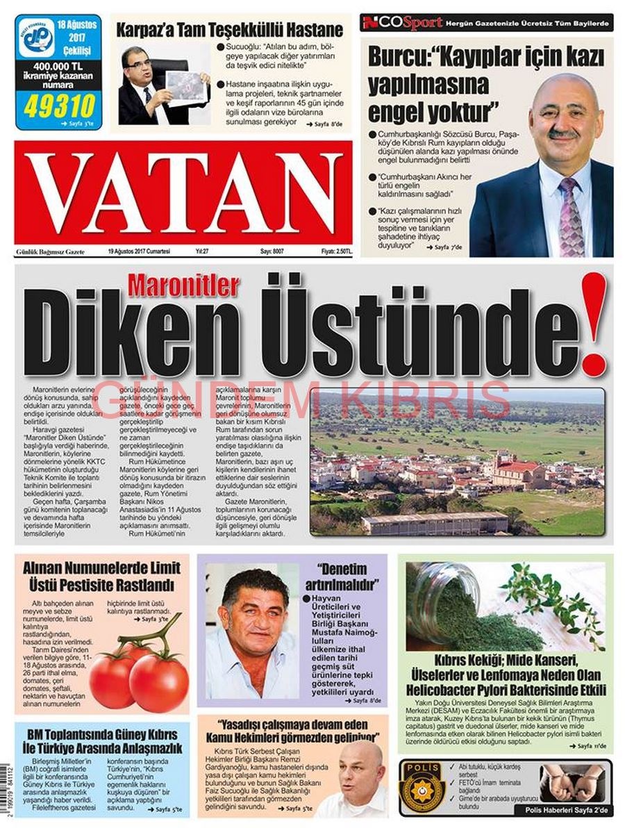 KKTC Gazete Manşetleri 19 Ağustos 2017
