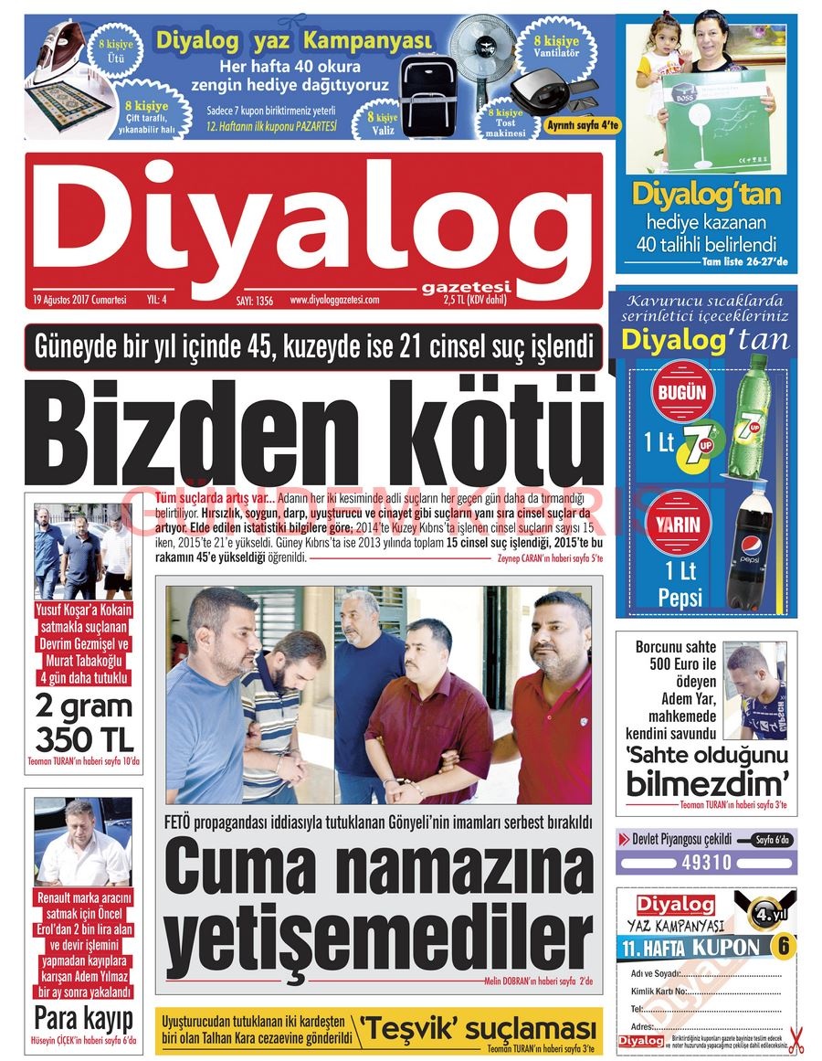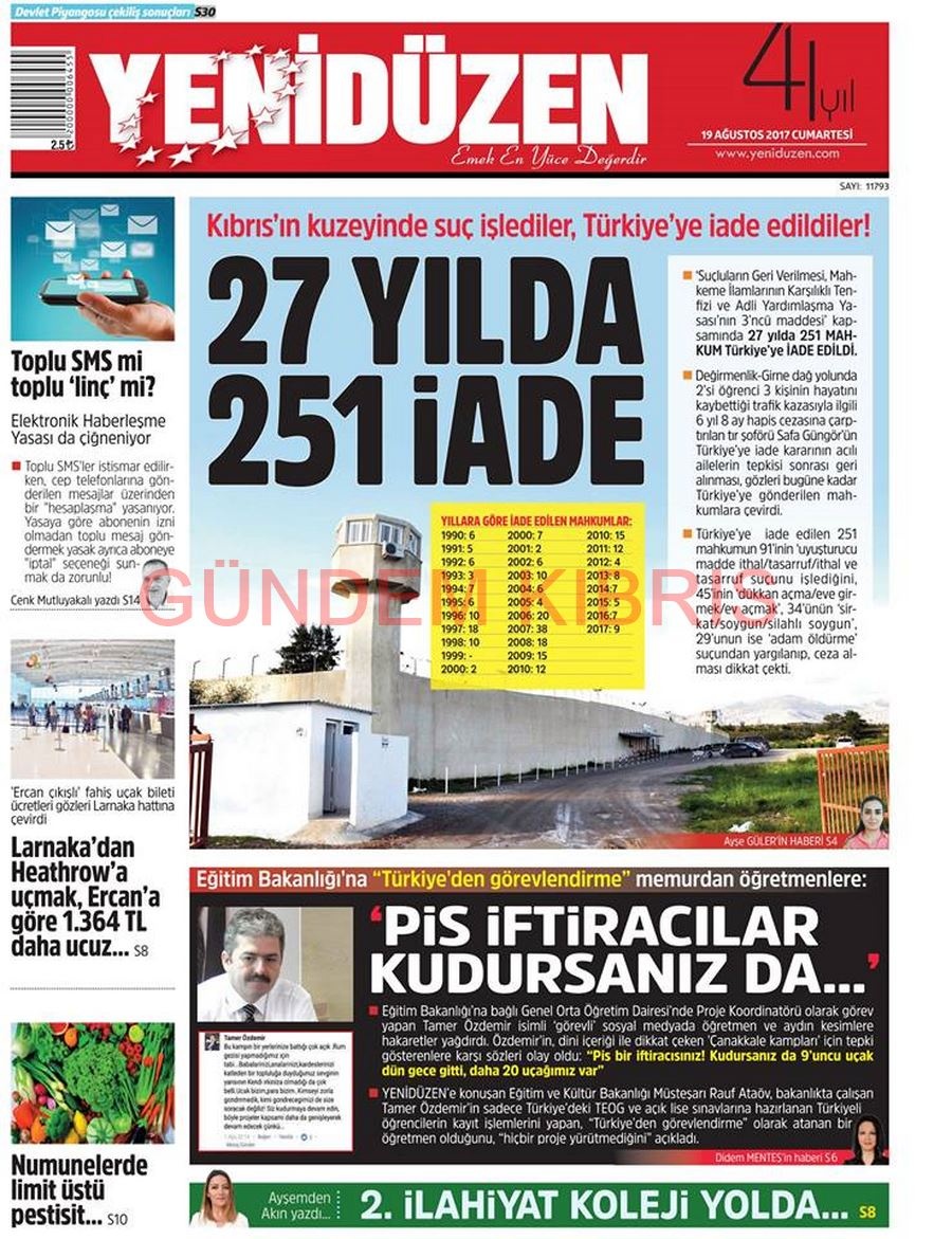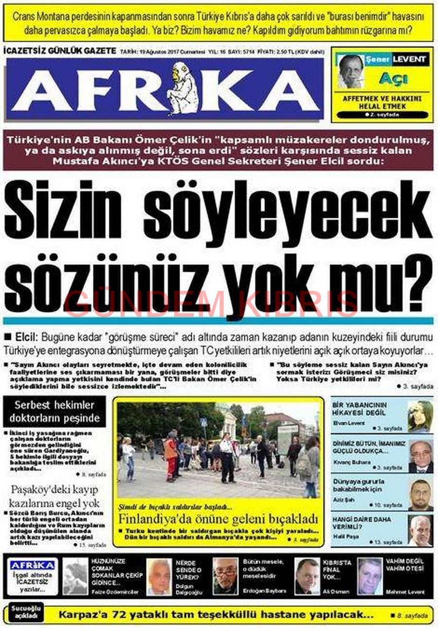 KKTC Gazete Manşetleri 19 Ağustos 2017
