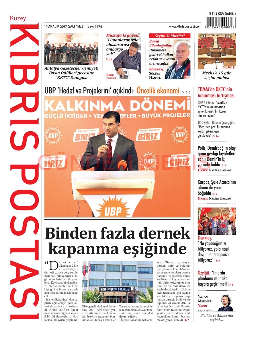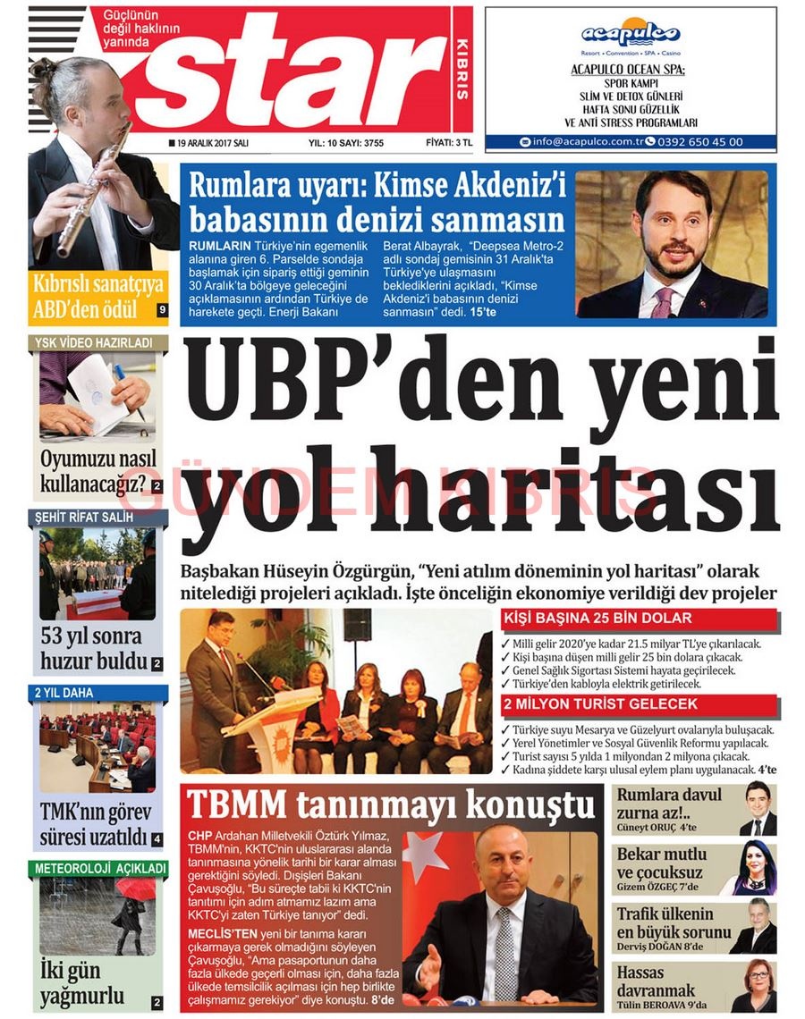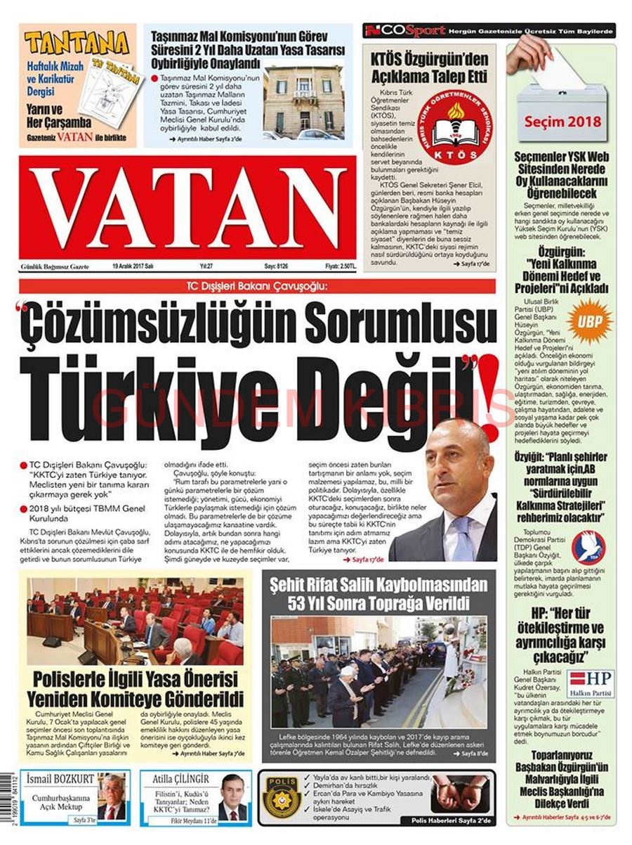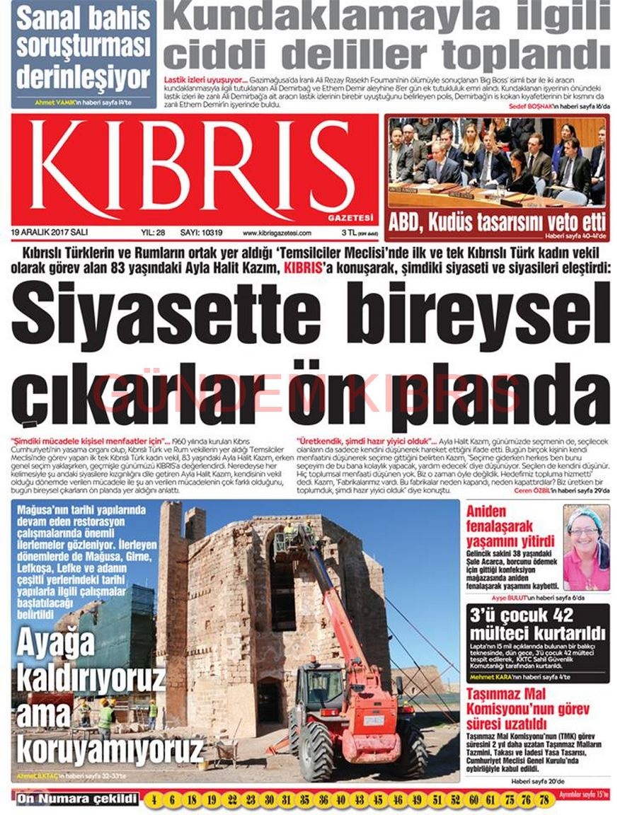 KKTC Gazete Manşetleri 19 Aralık 2017
