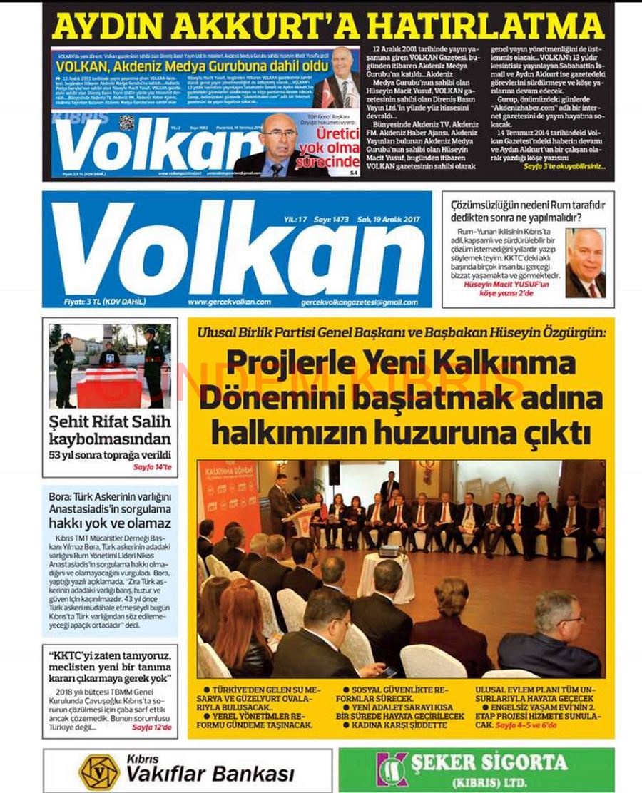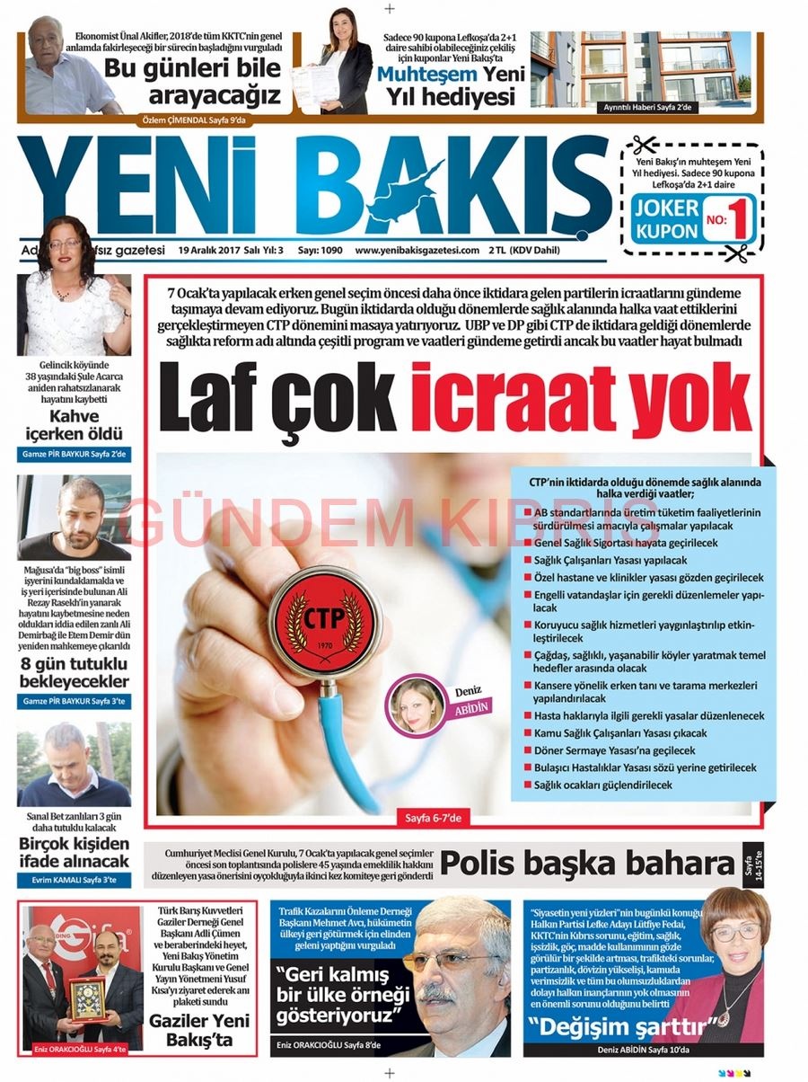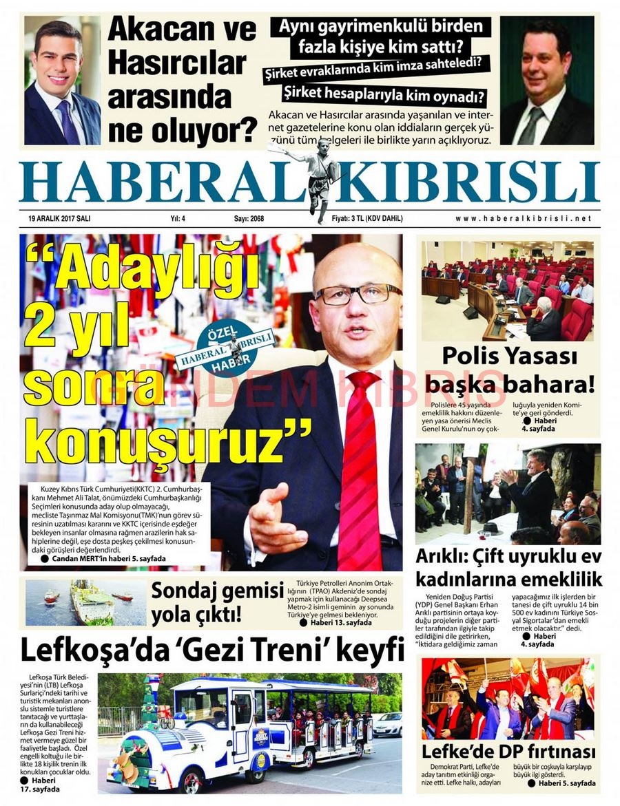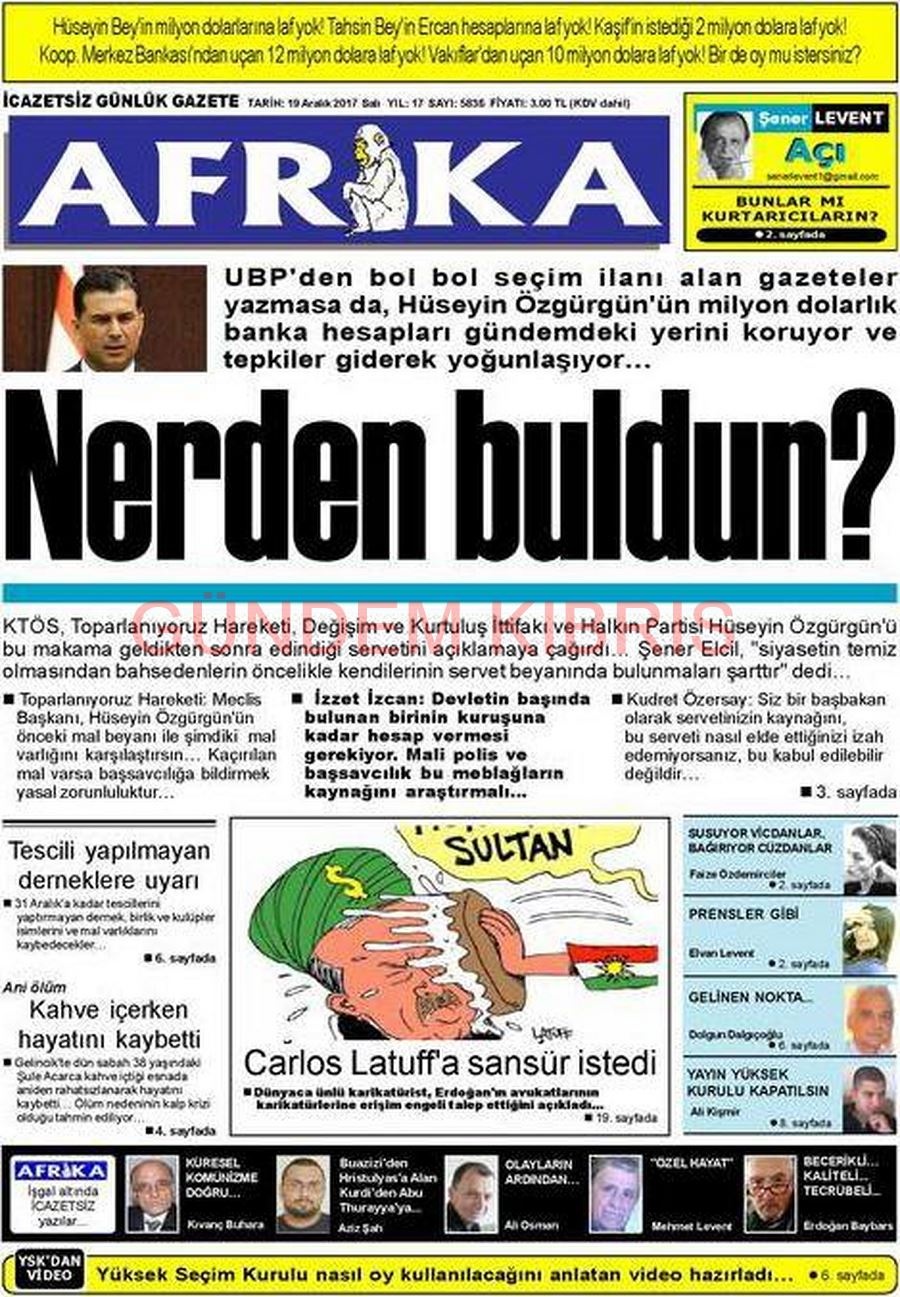 KKTC Gazete Manşetleri 19 Aralık 2017