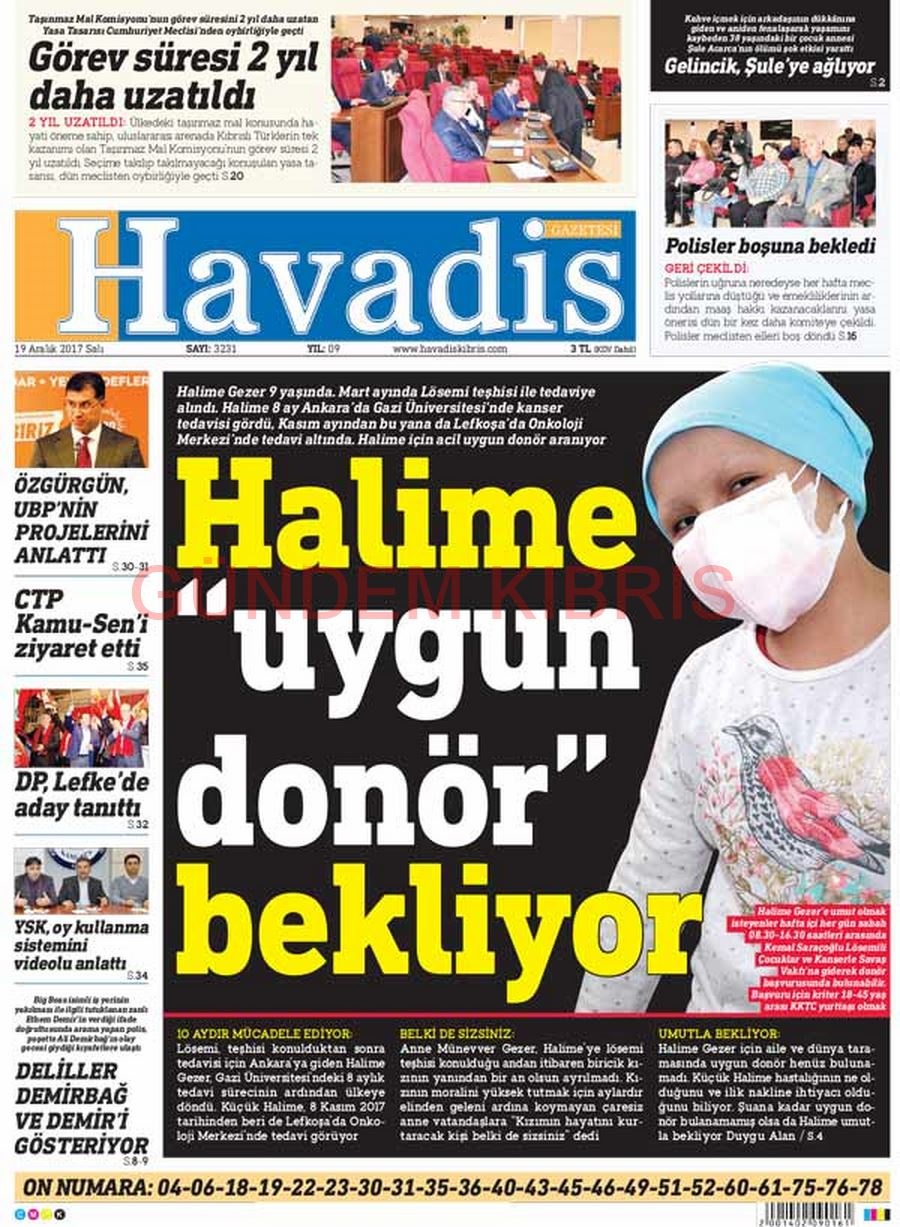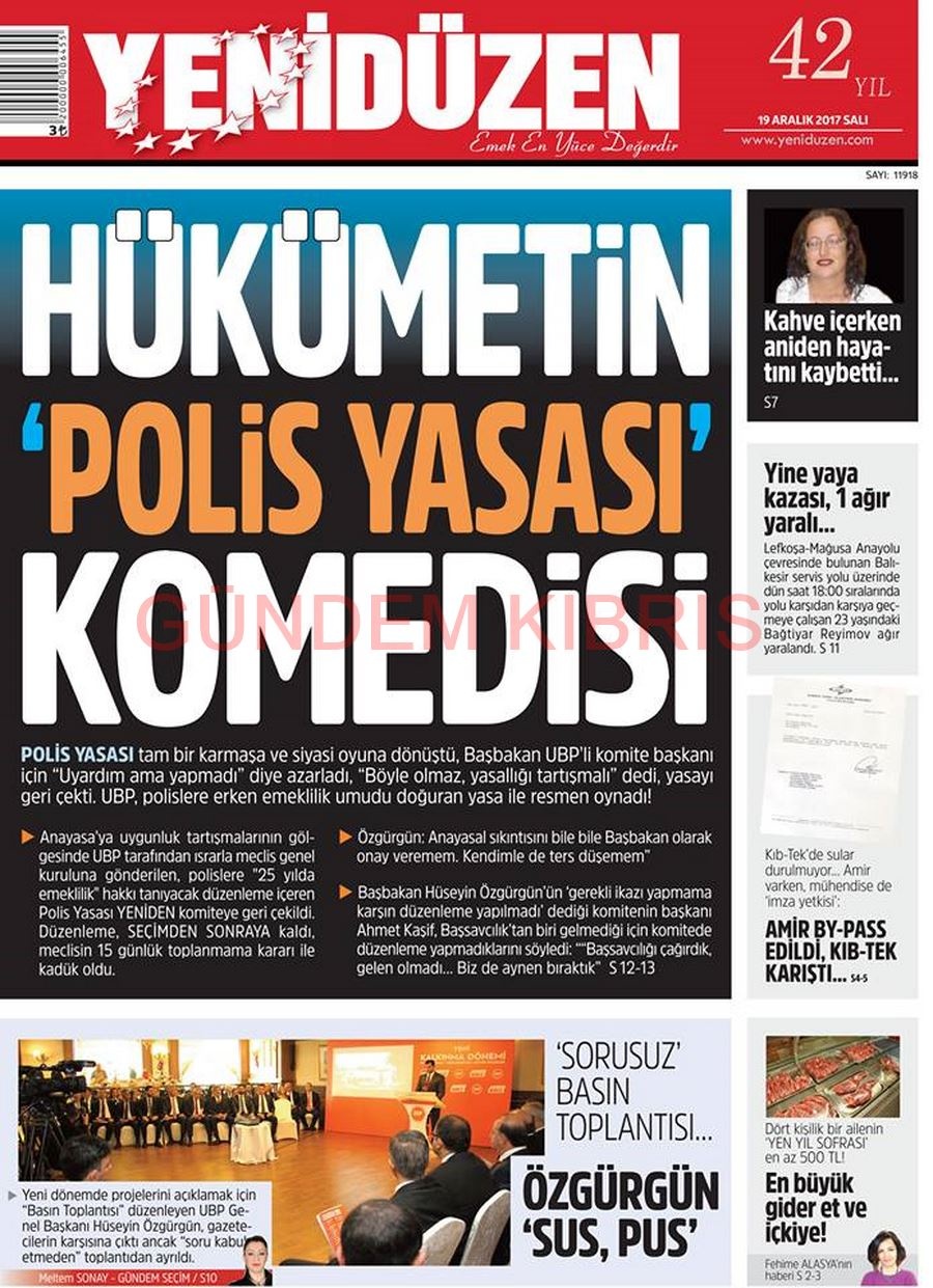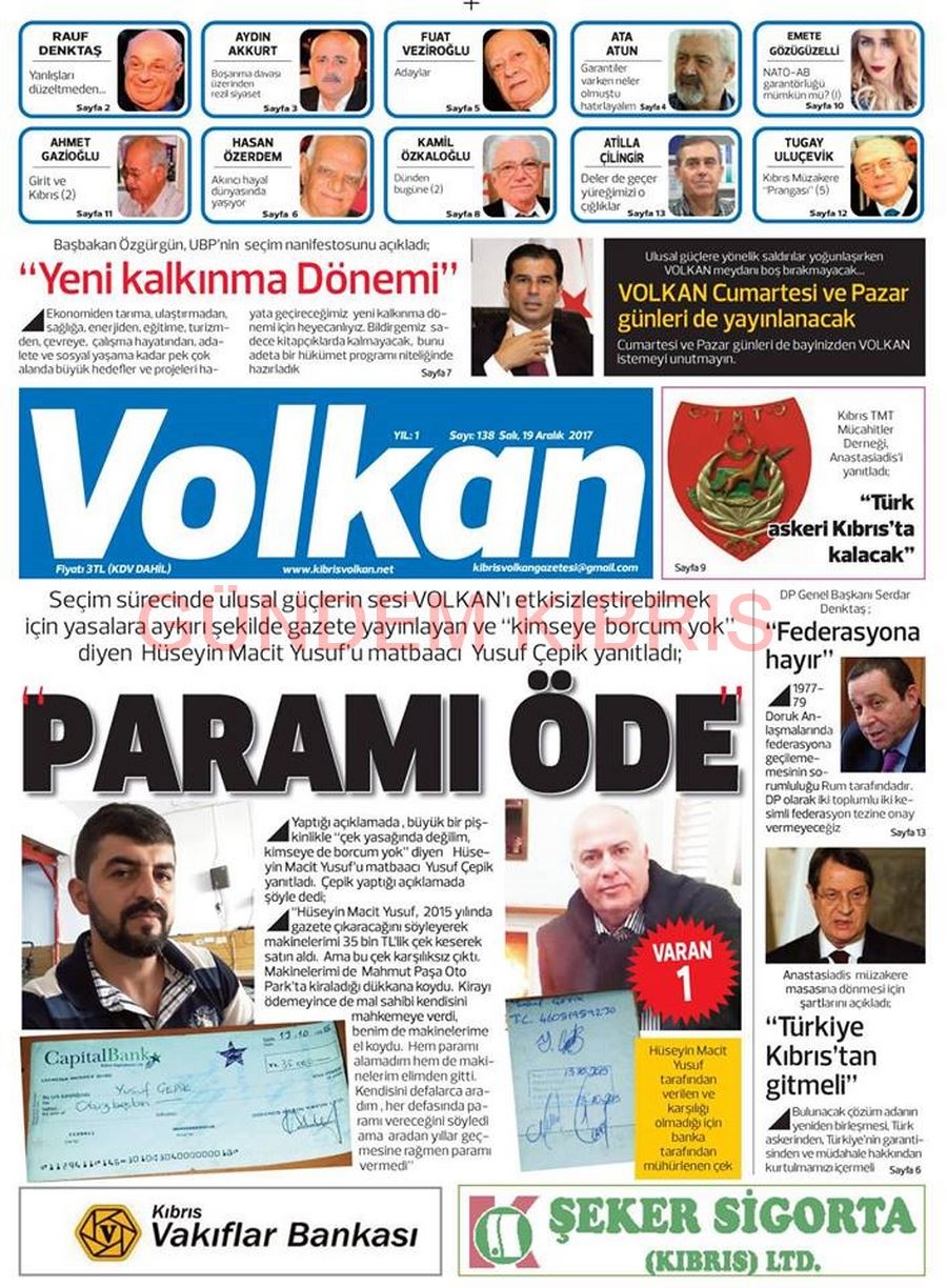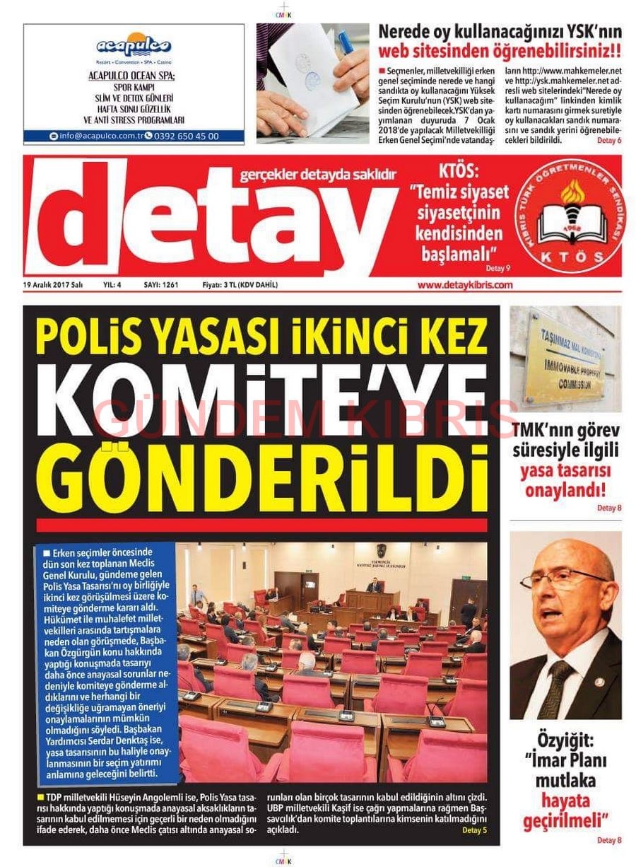 KKTC Gazete Manşetleri 19 Aralık 2017