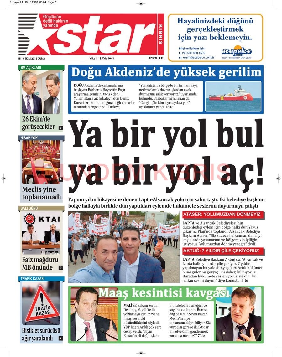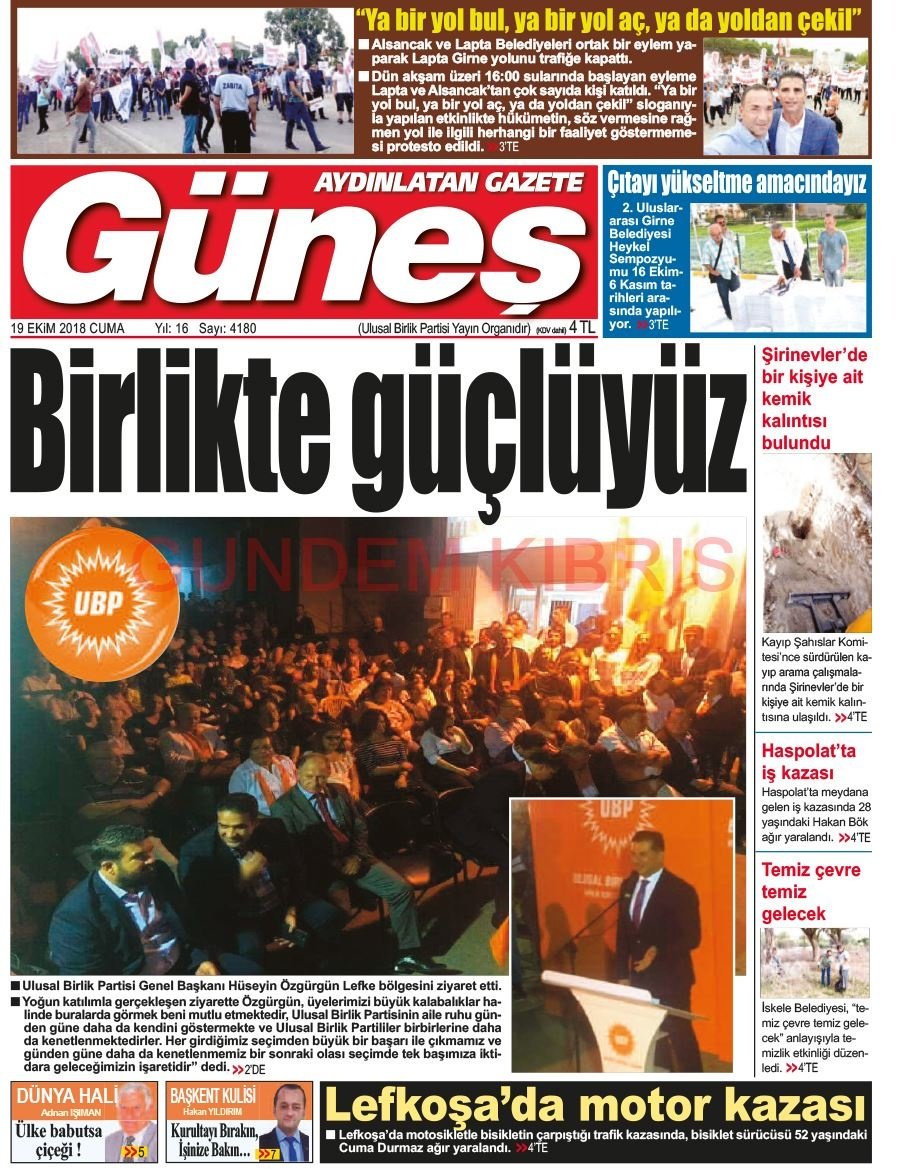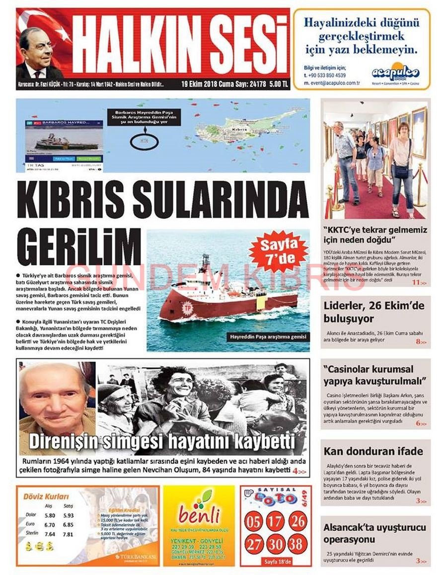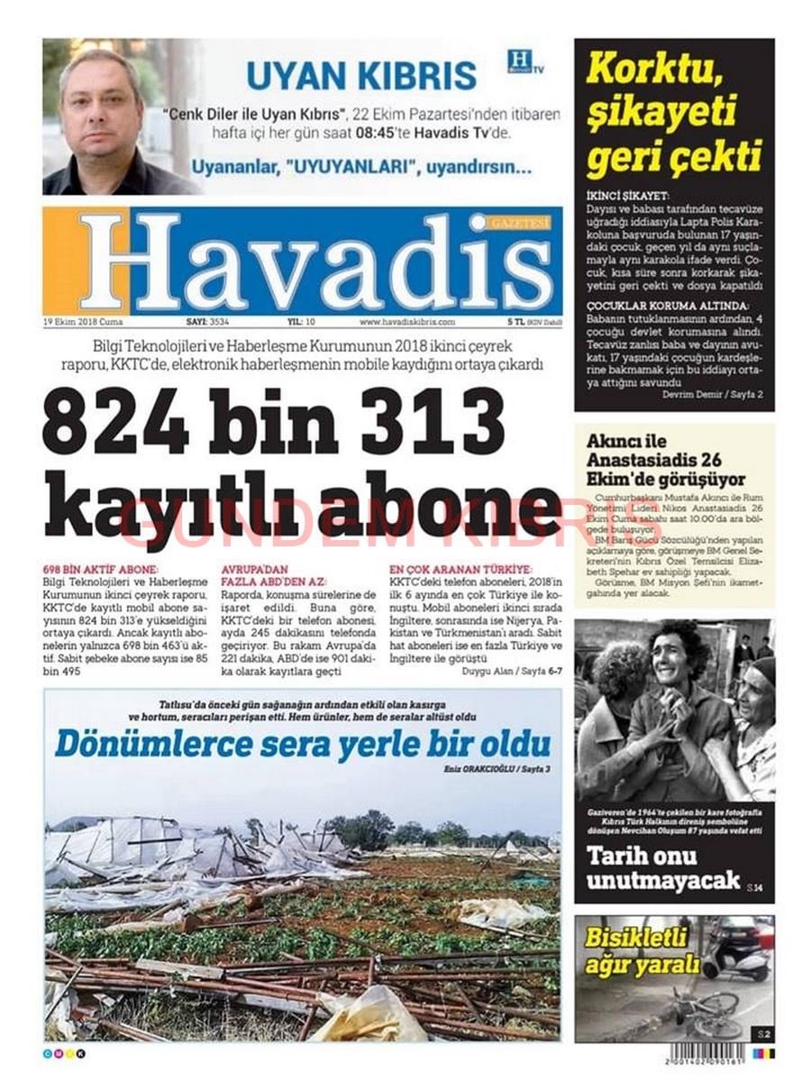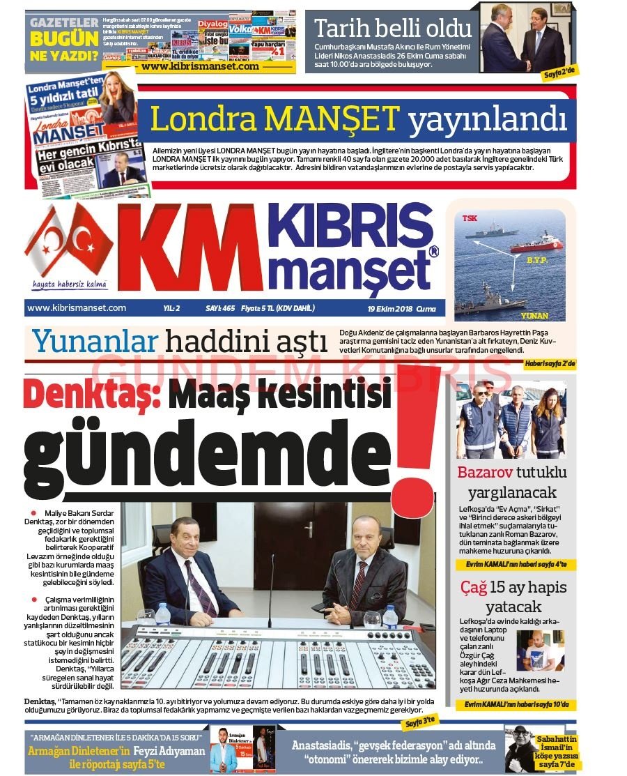 KKTC Gazete Manşetleri 19 Ekim 2018