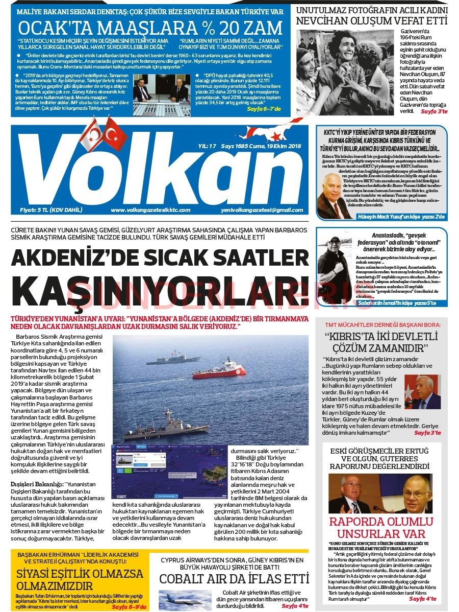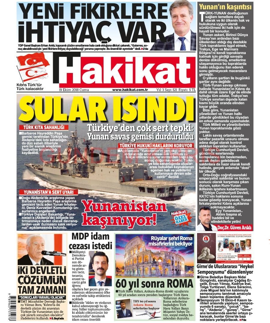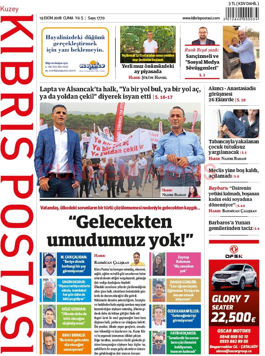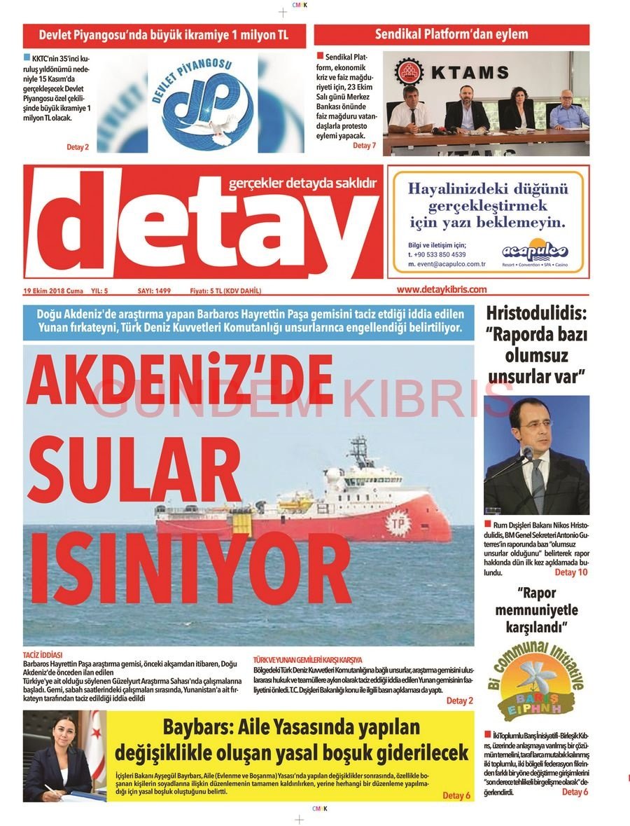 KKTC Gazete Manşetleri 19 Ekim 2018