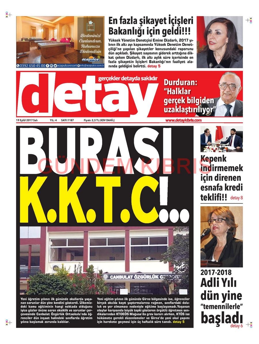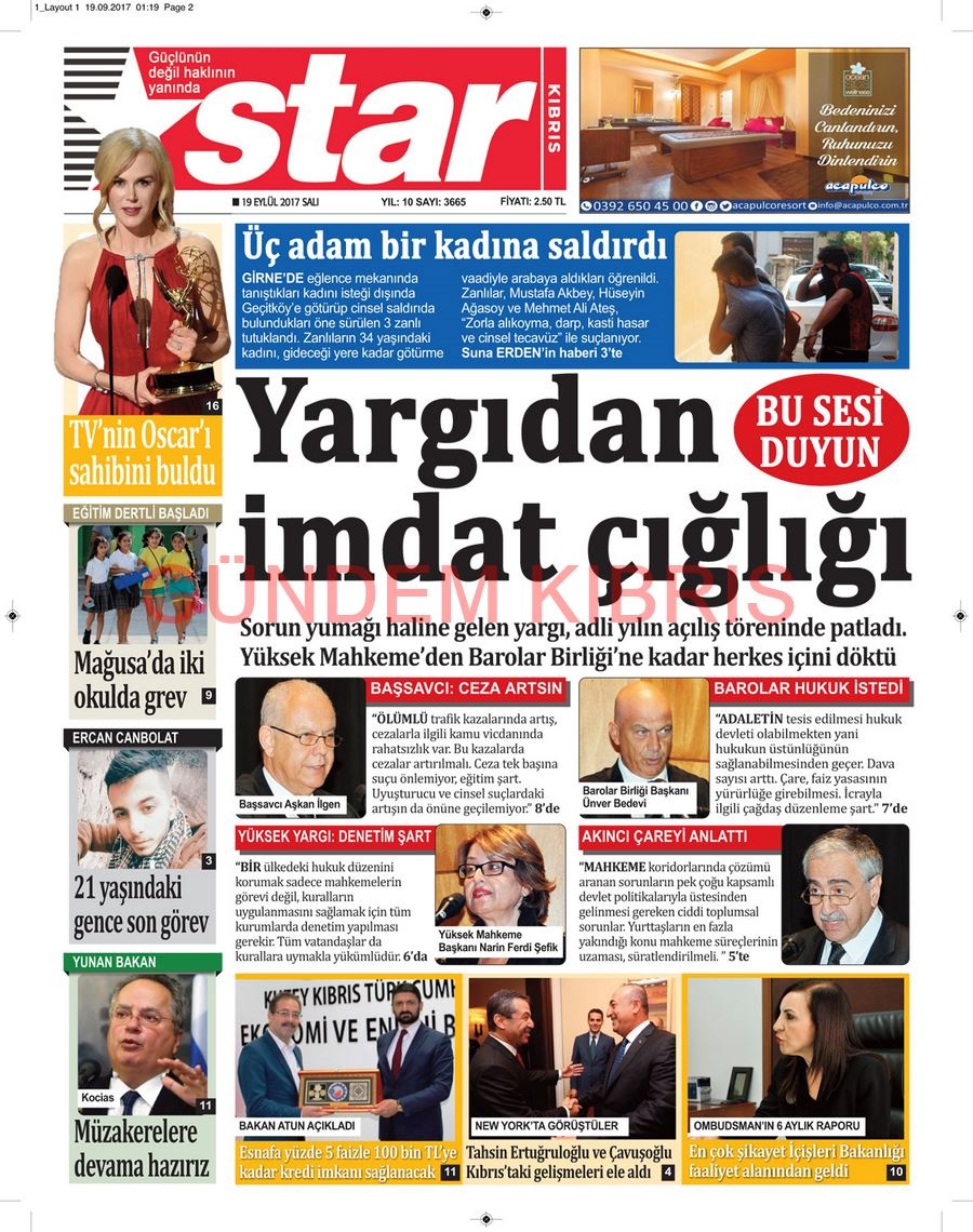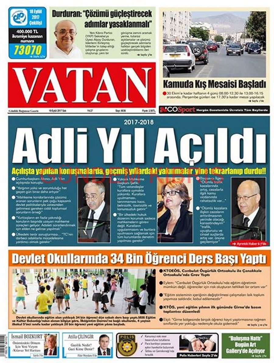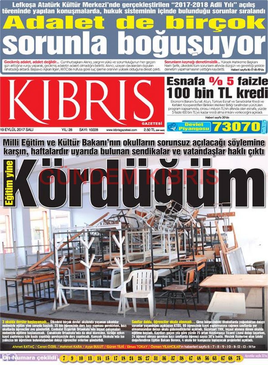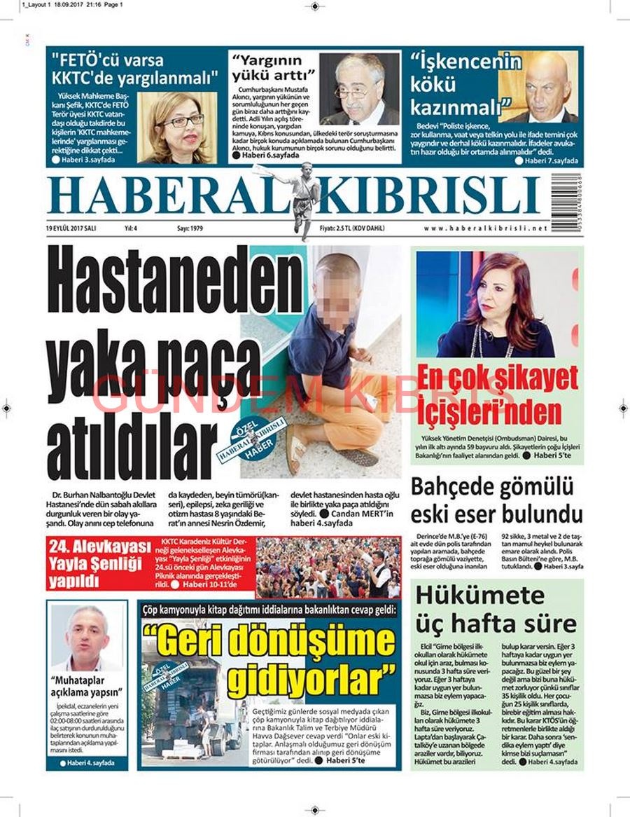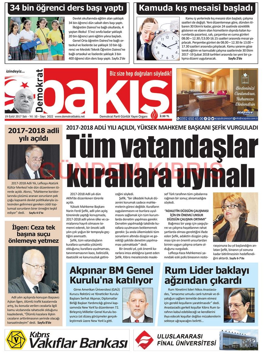 KKTC Gazete Manşetleri 19 Eylül 2017