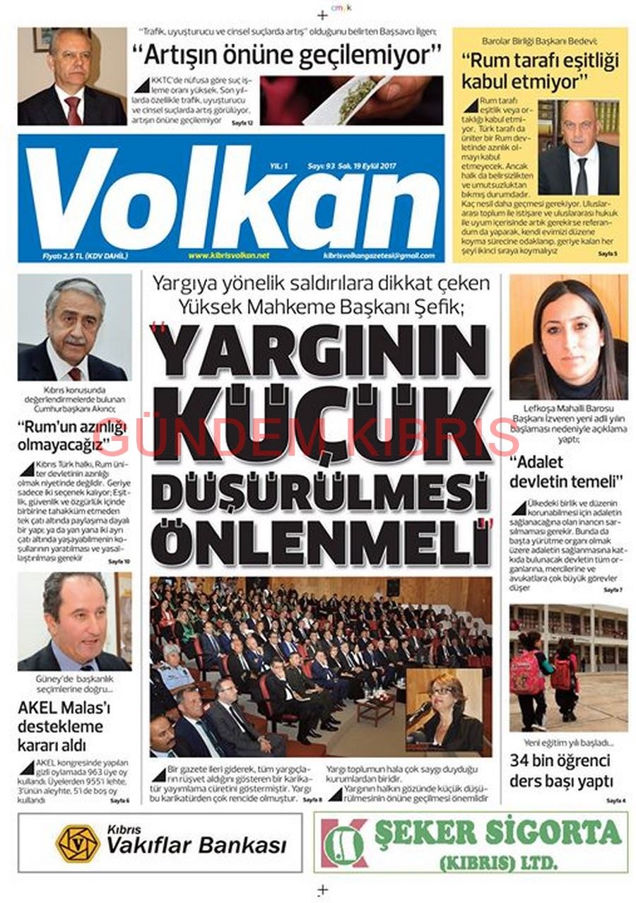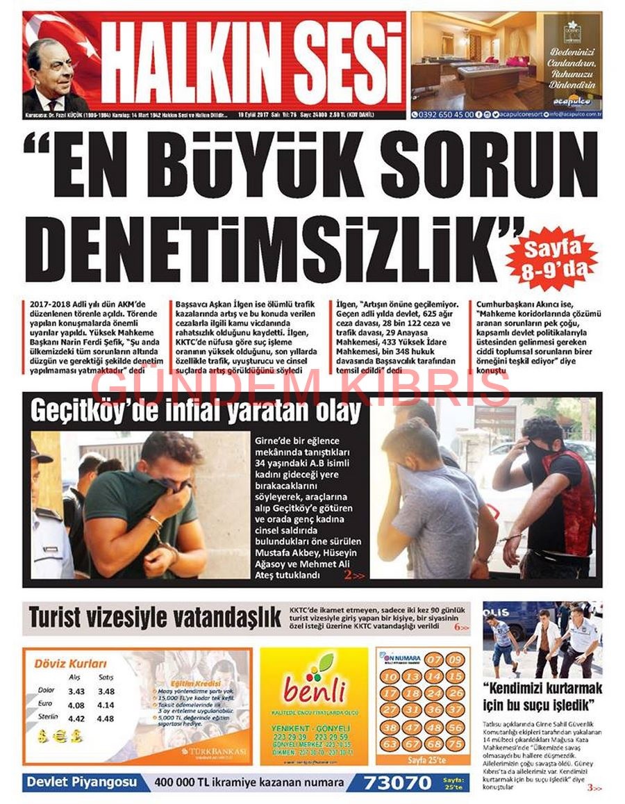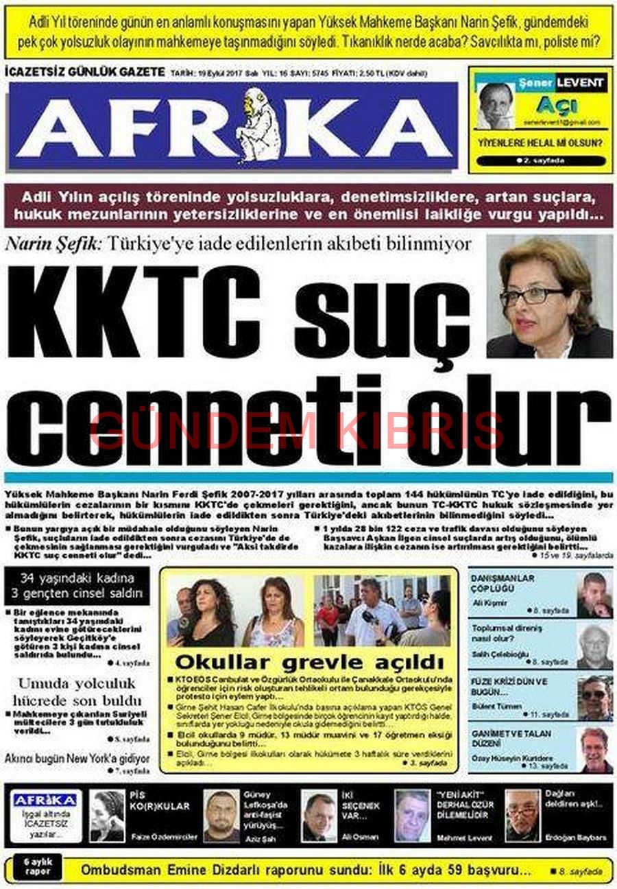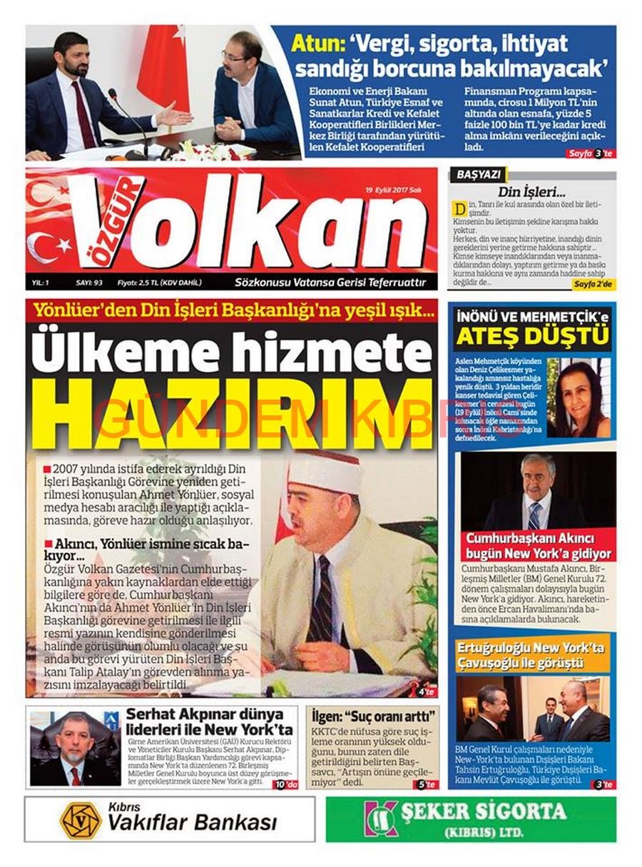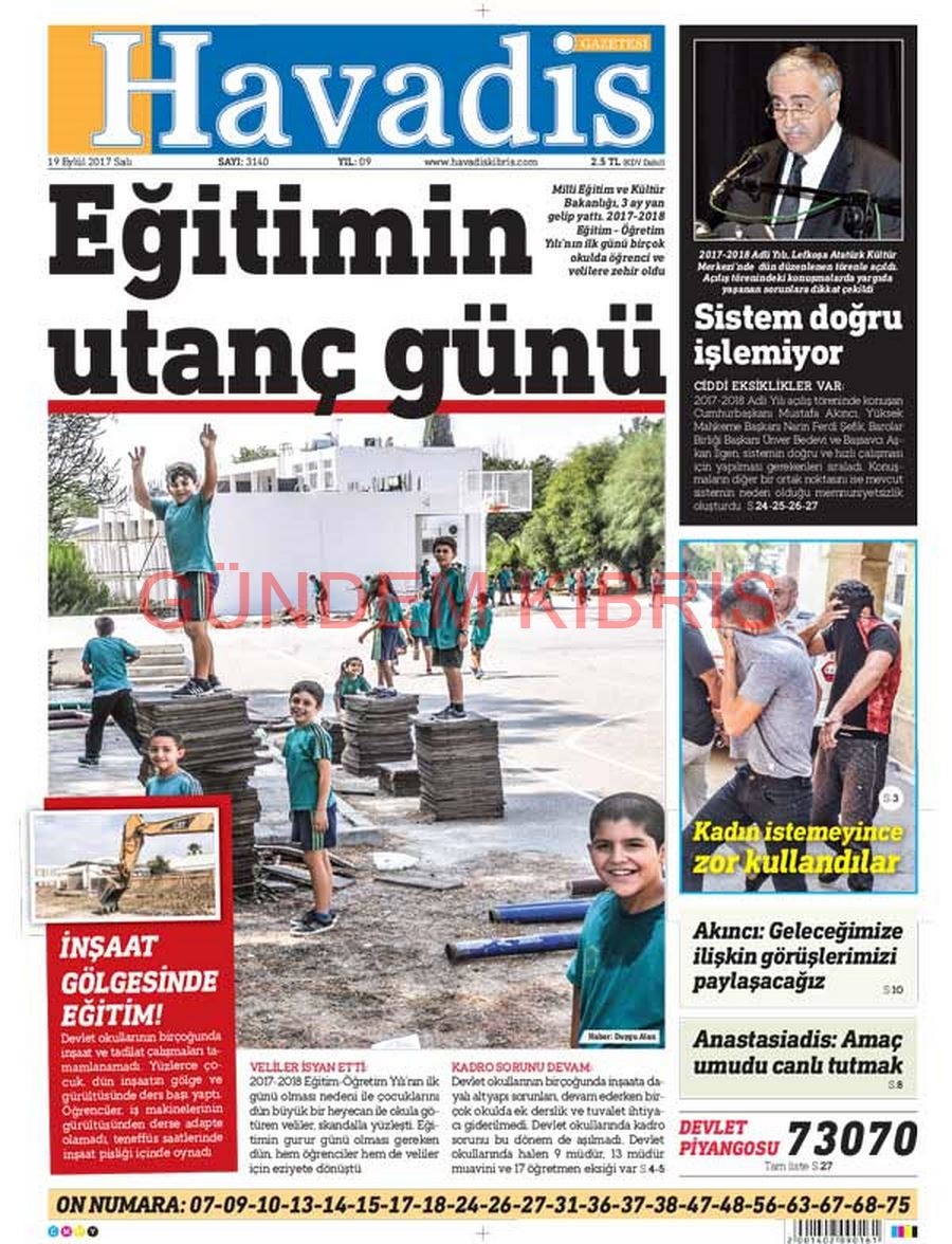 KKTC Gazete Manşetleri 19 Eylül 2017