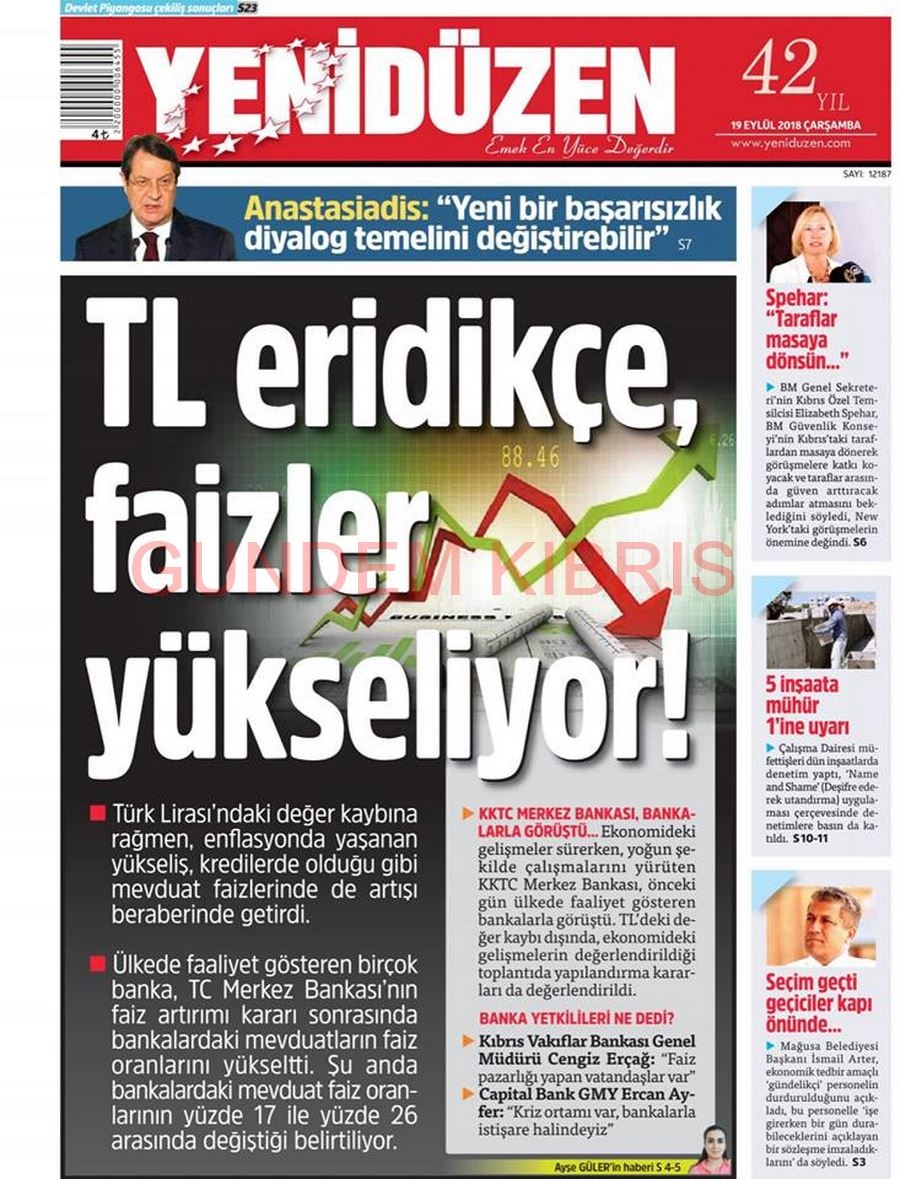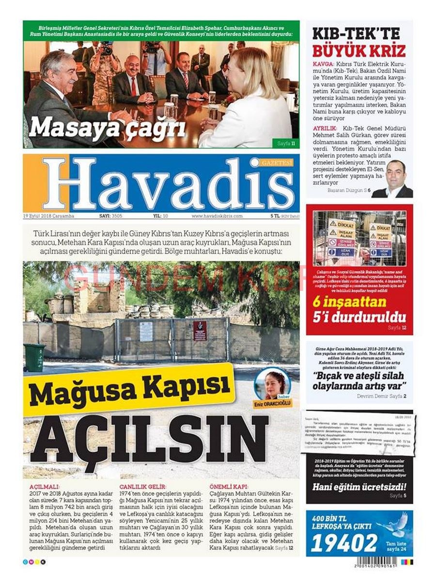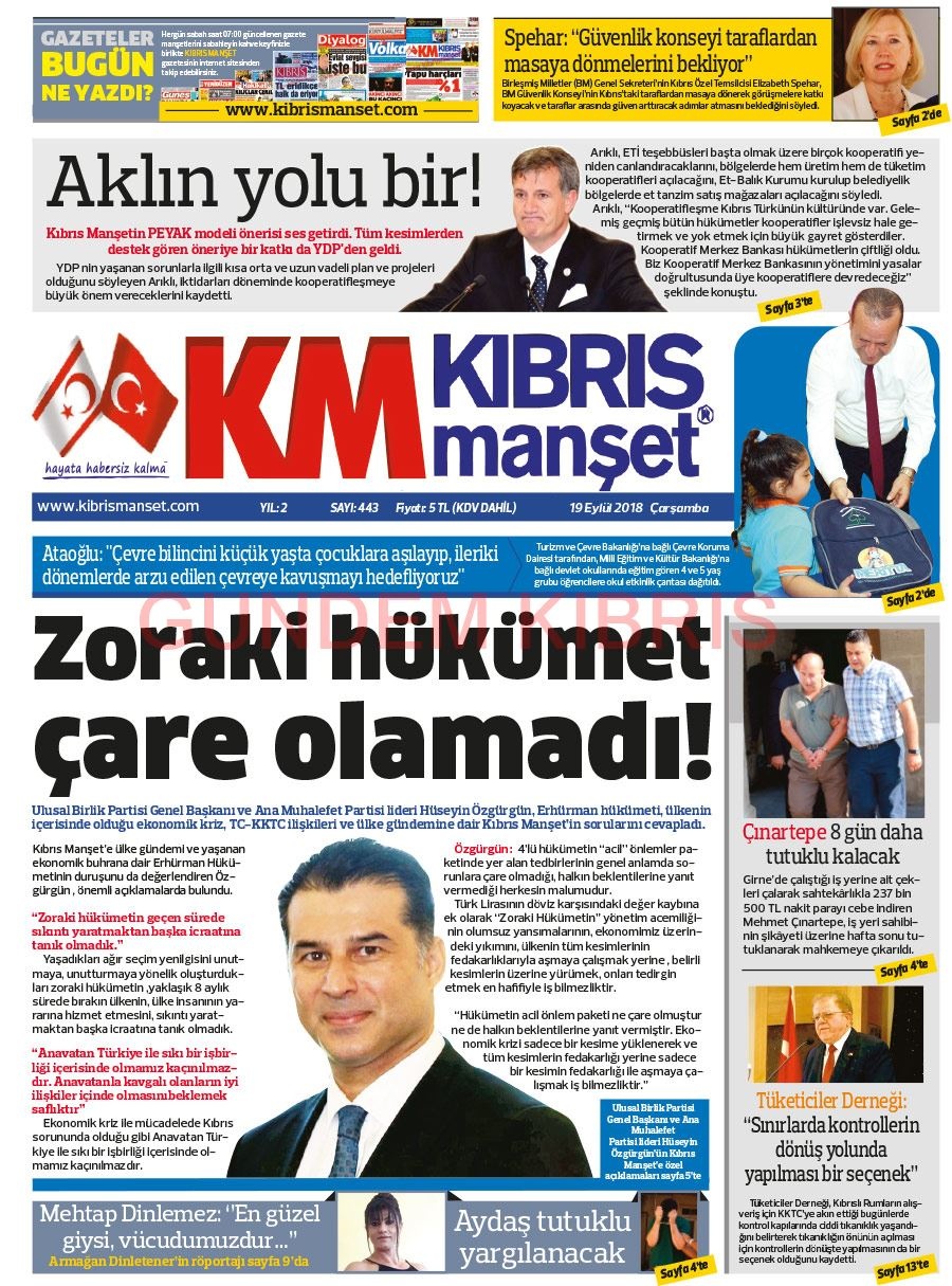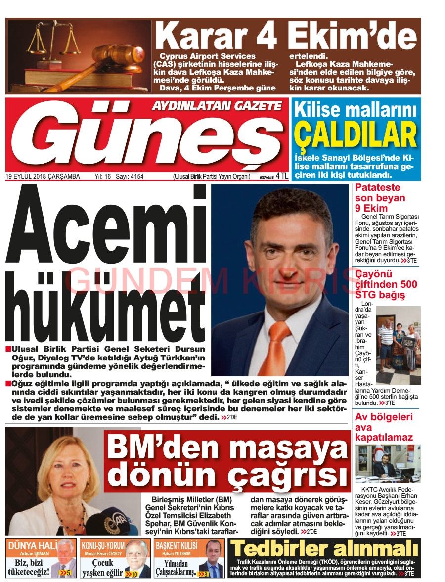 KKTC Gazete Manşetleri 19 Eylül 2018