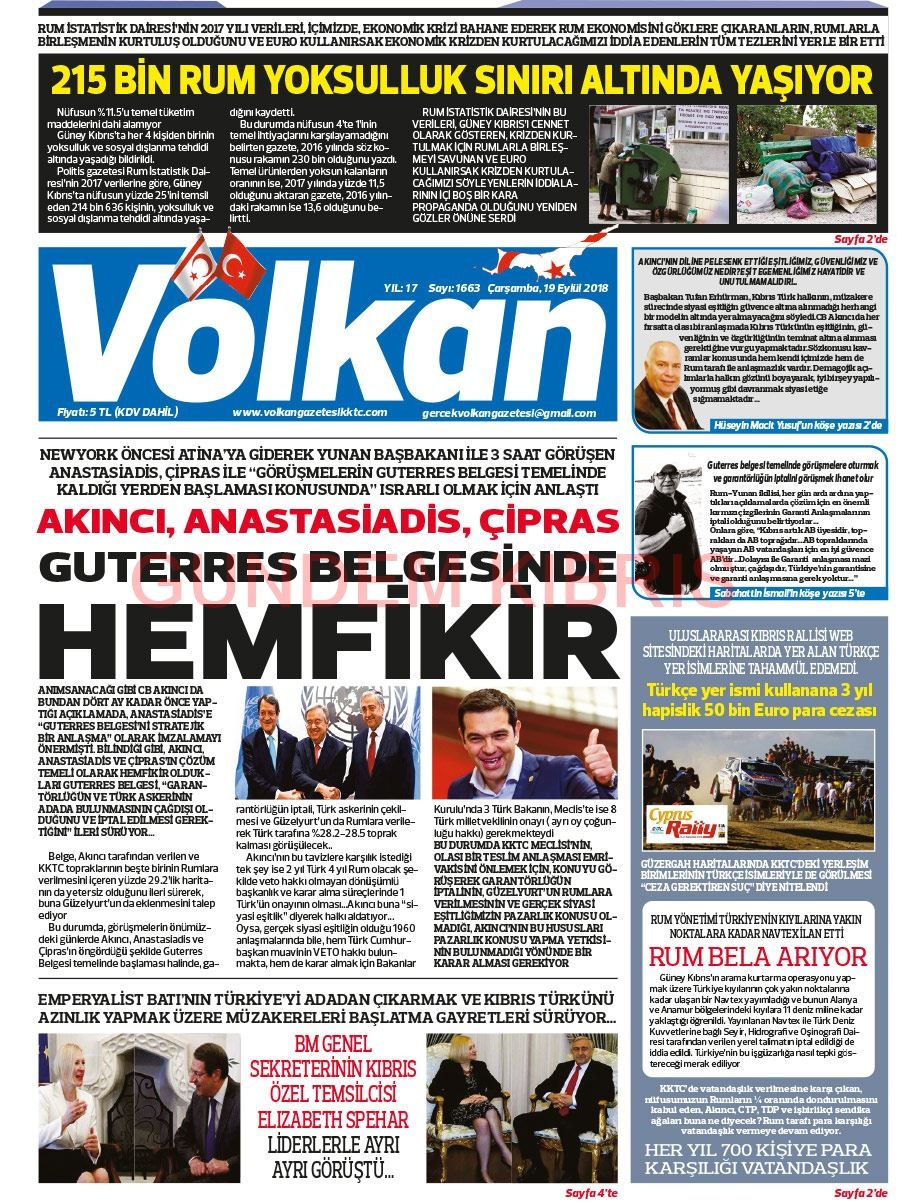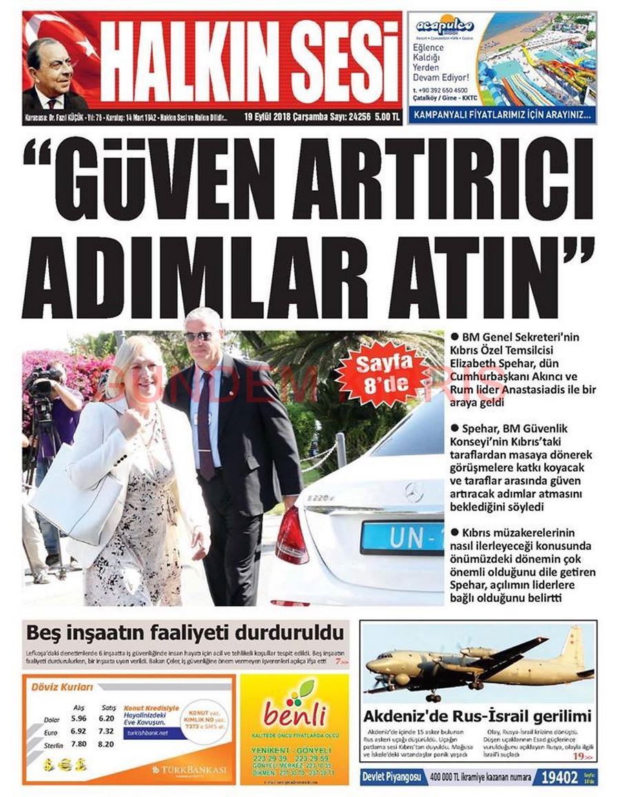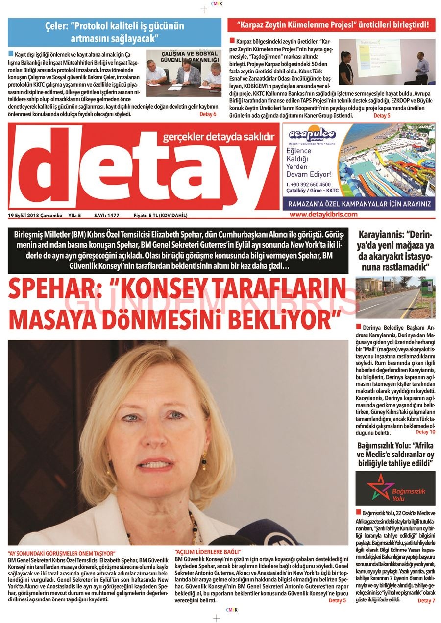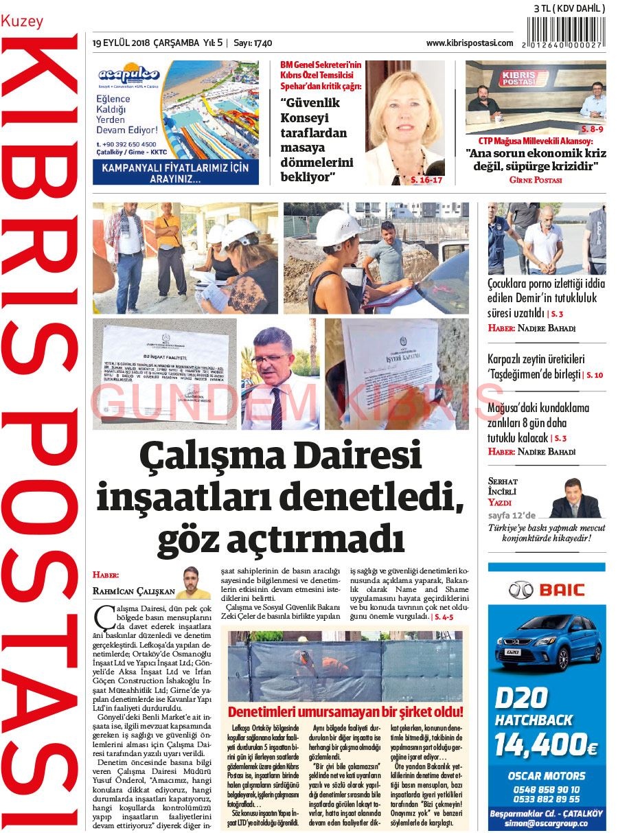 KKTC Gazete Manşetleri 19 Eylül 2018