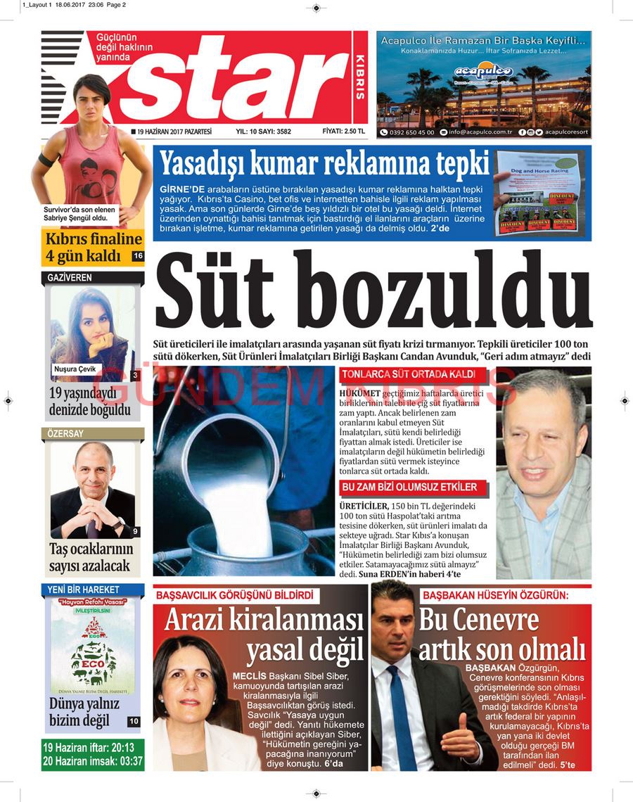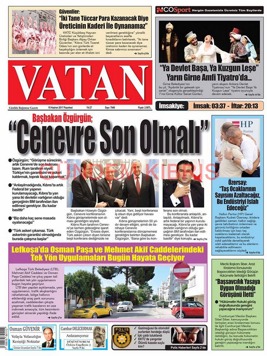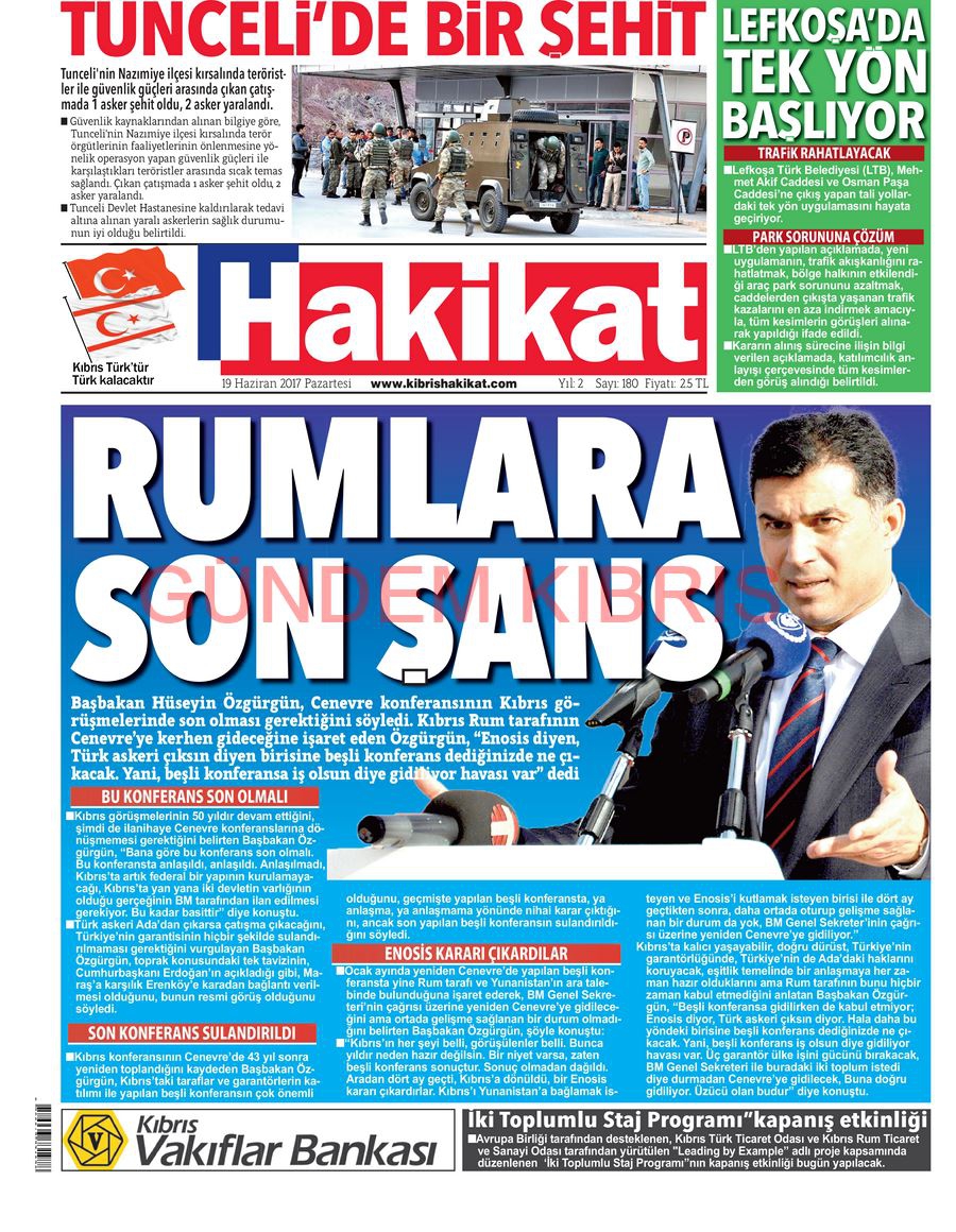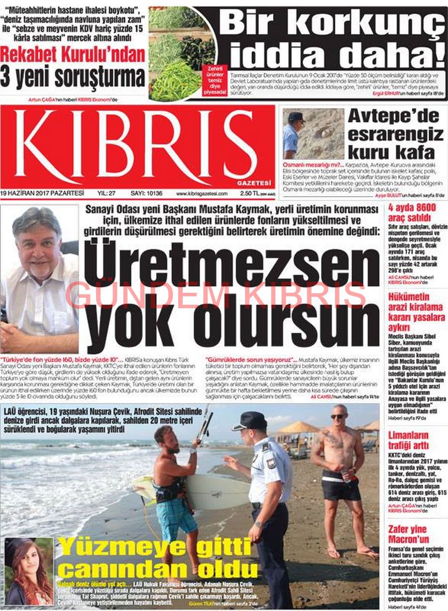 KKTC Gazete Manşetleri 19 Haziran 2017