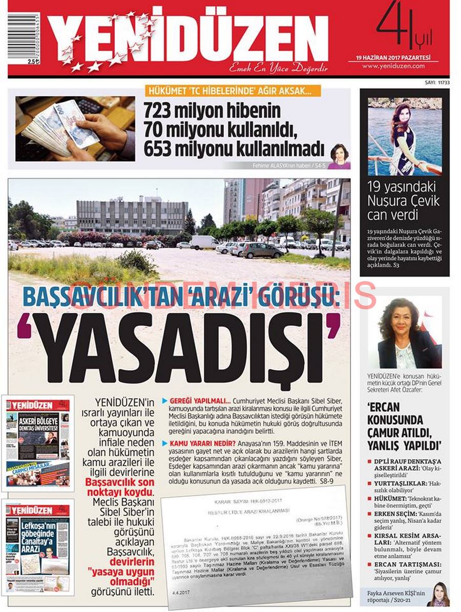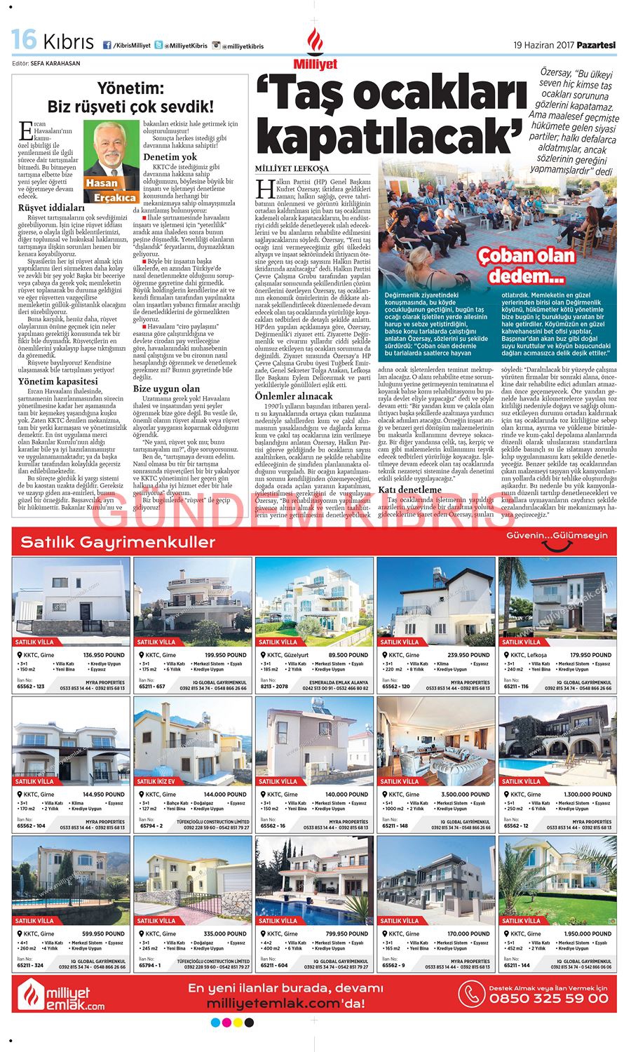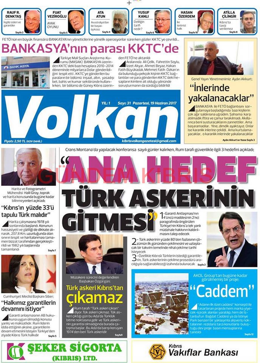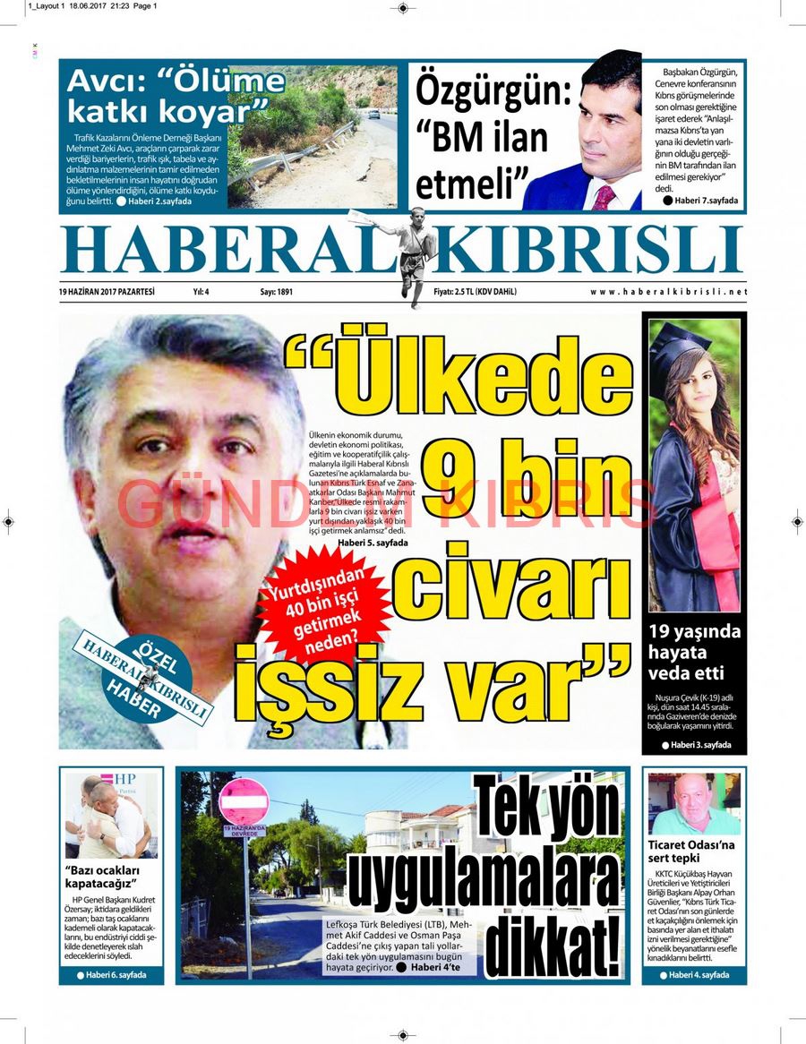 KKTC Gazete Manşetleri 19 Haziran 2017