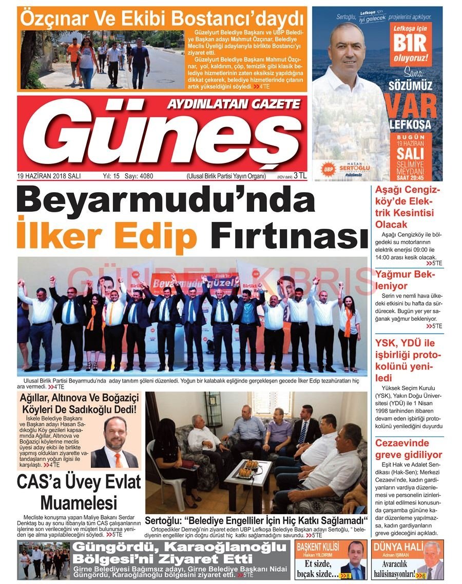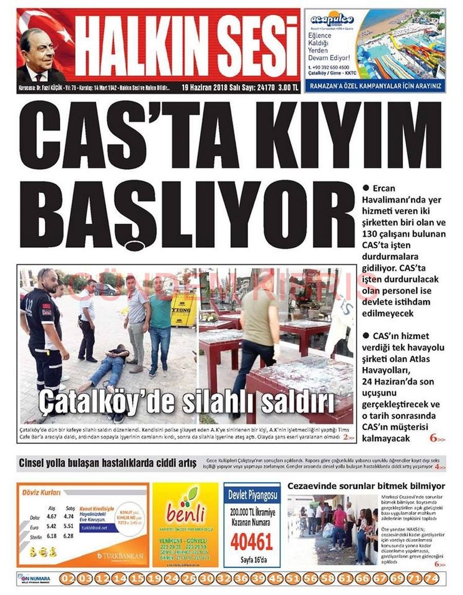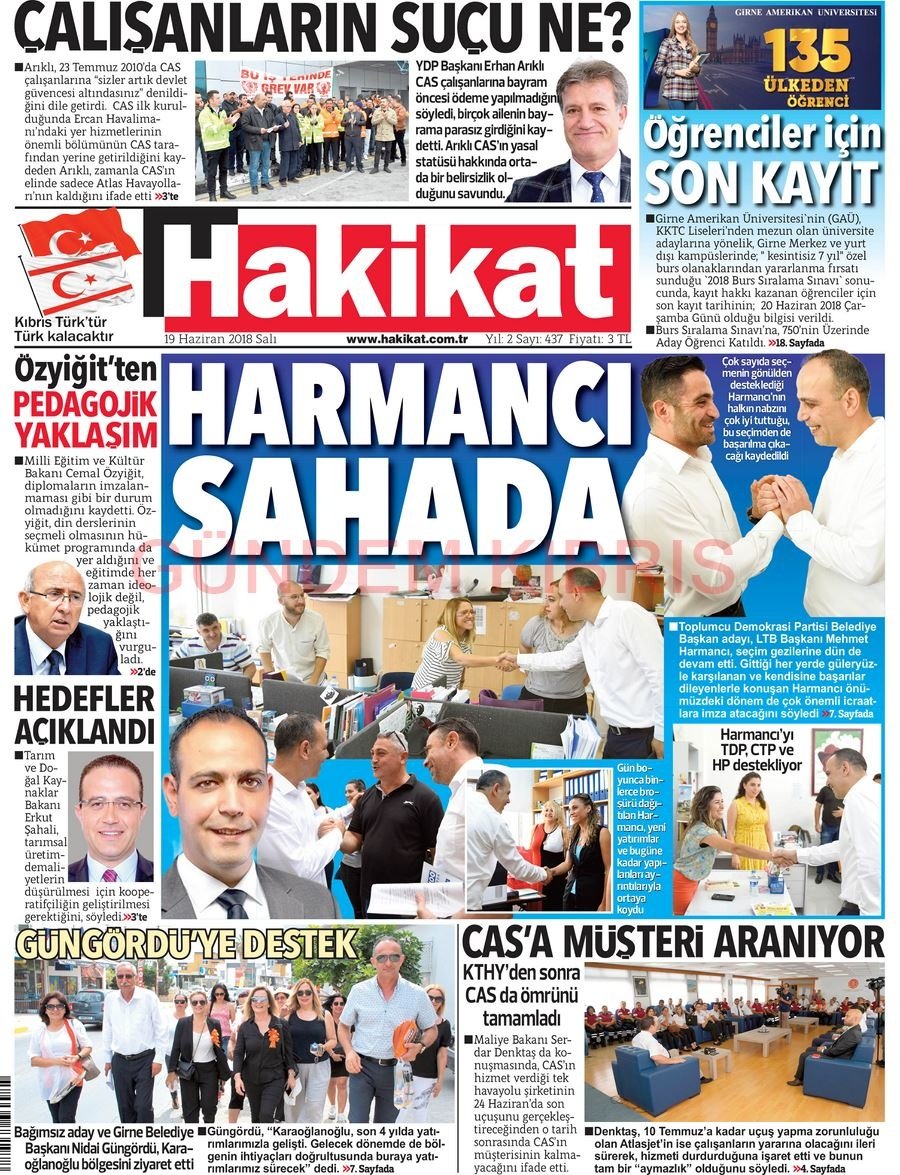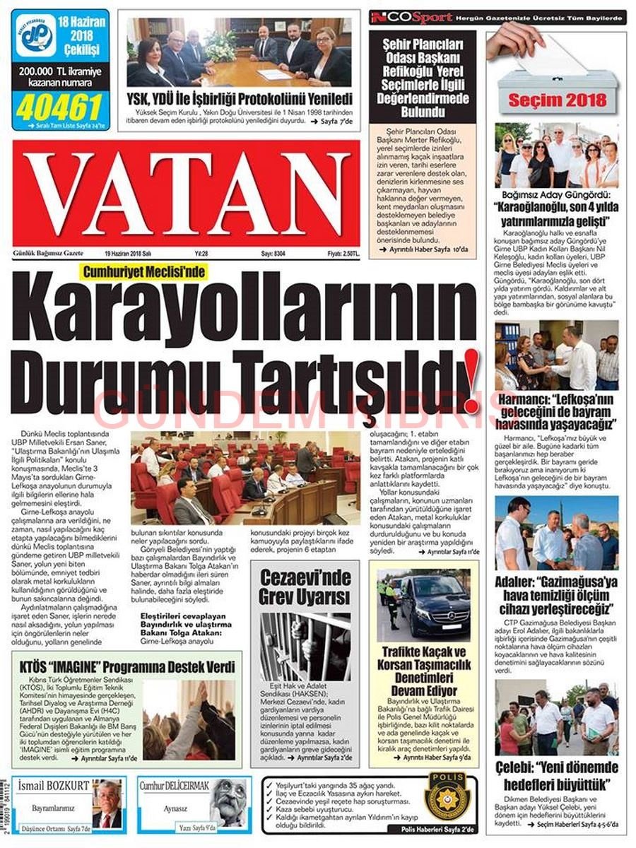 KKTC Gazete Manşetleri 19 Haziran 2018