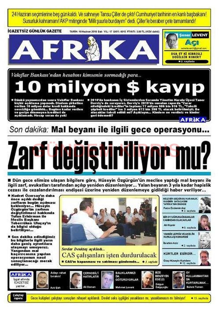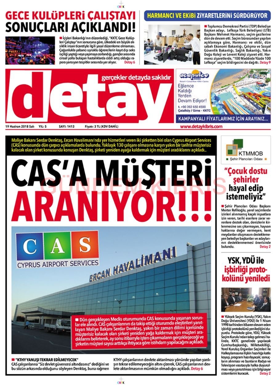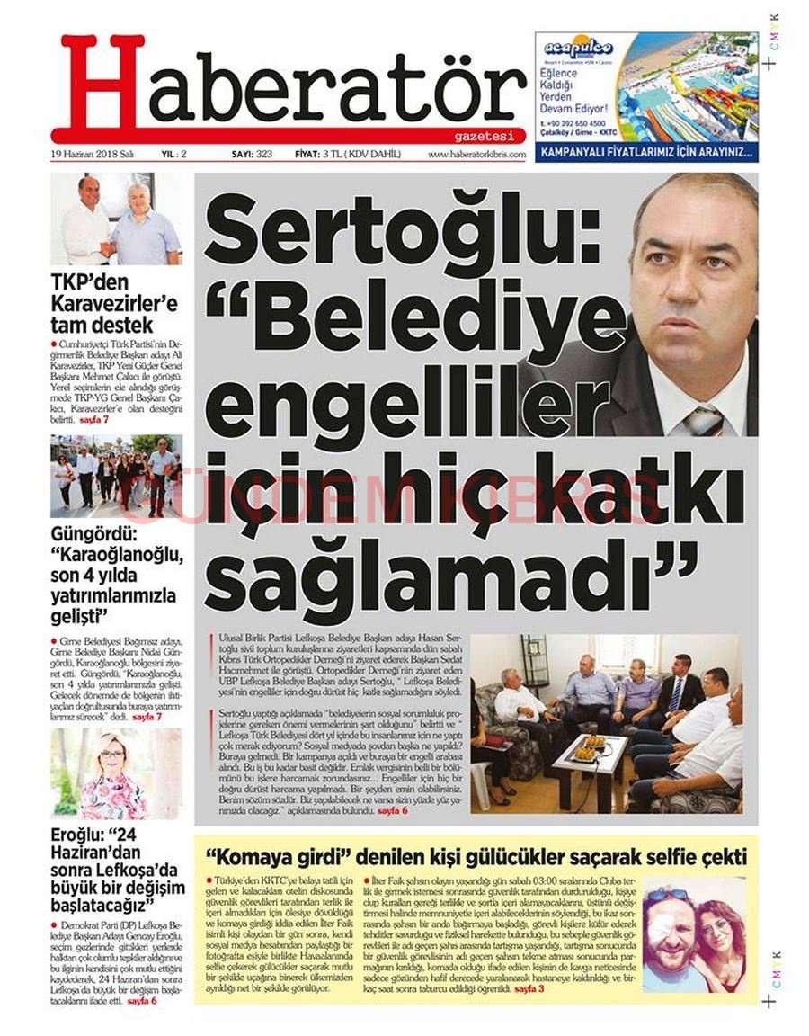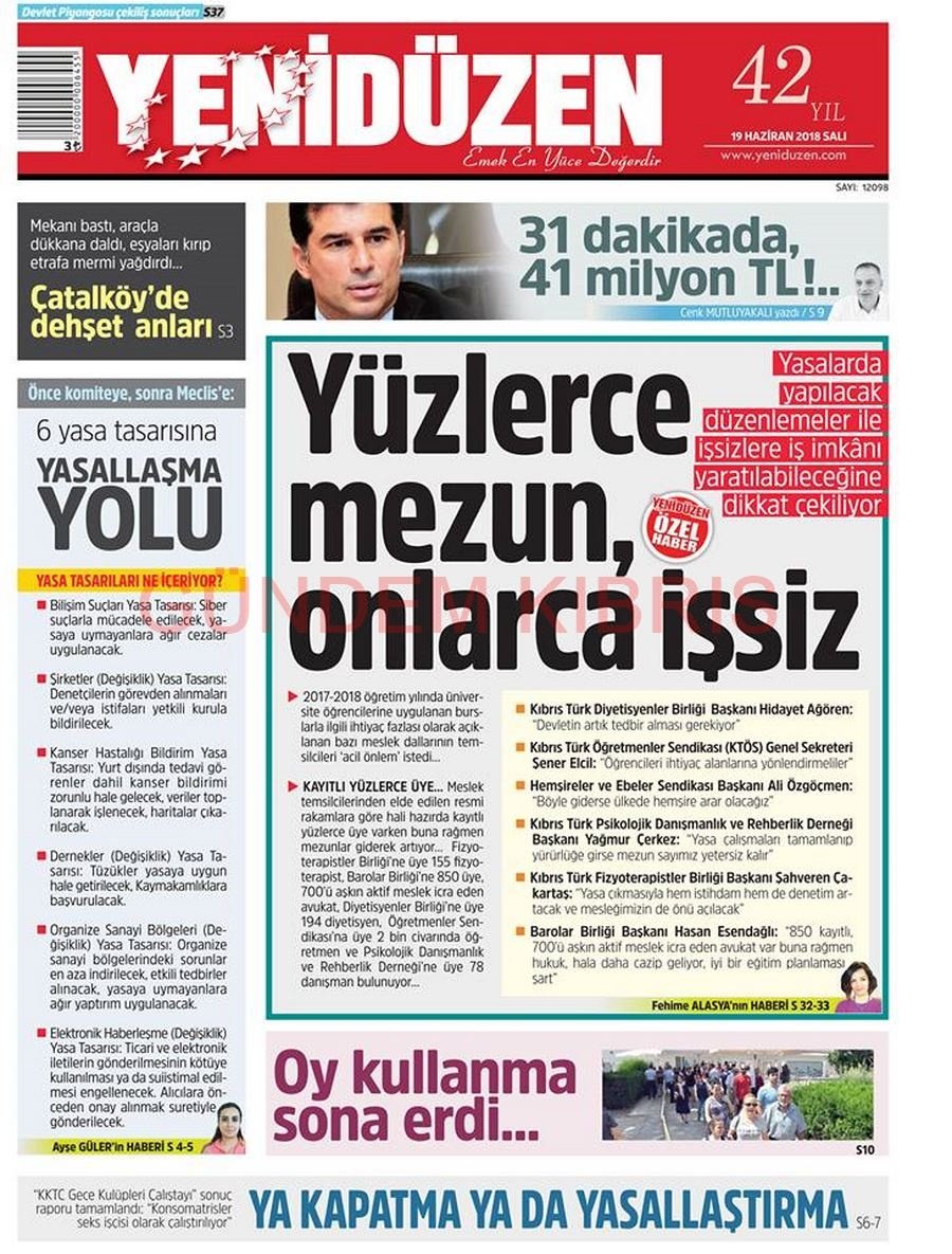 KKTC Gazete Manşetleri 19 Haziran 2018