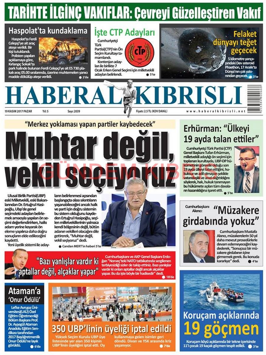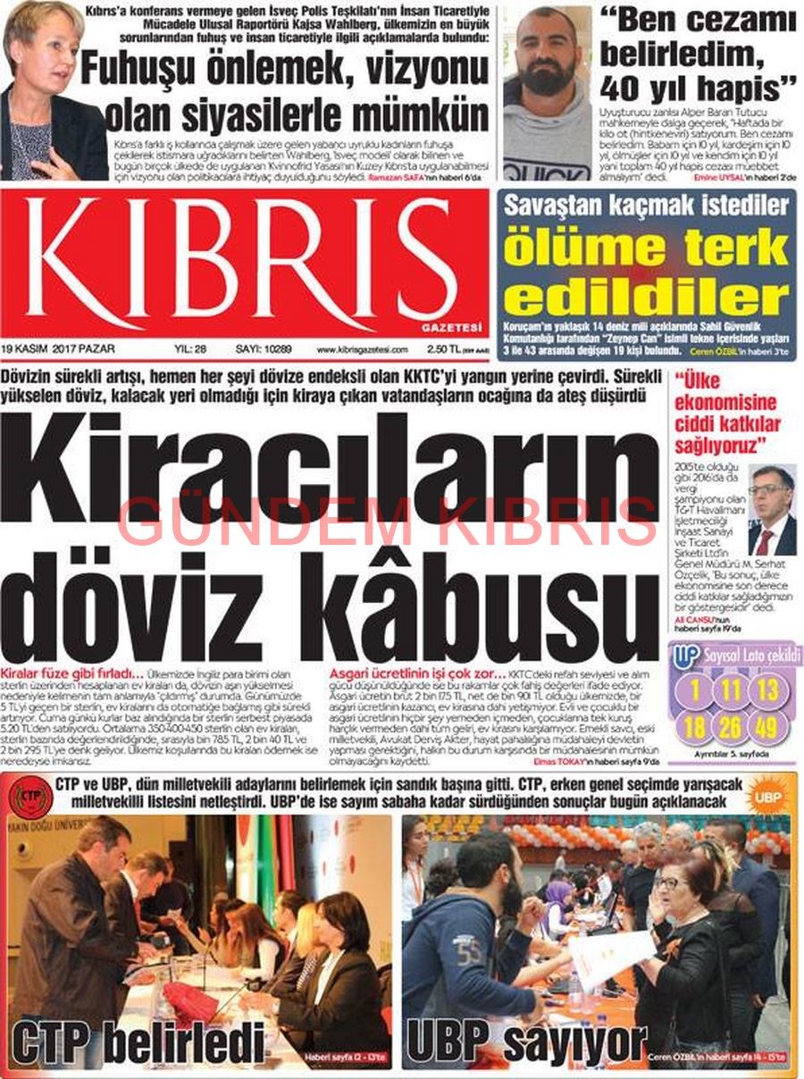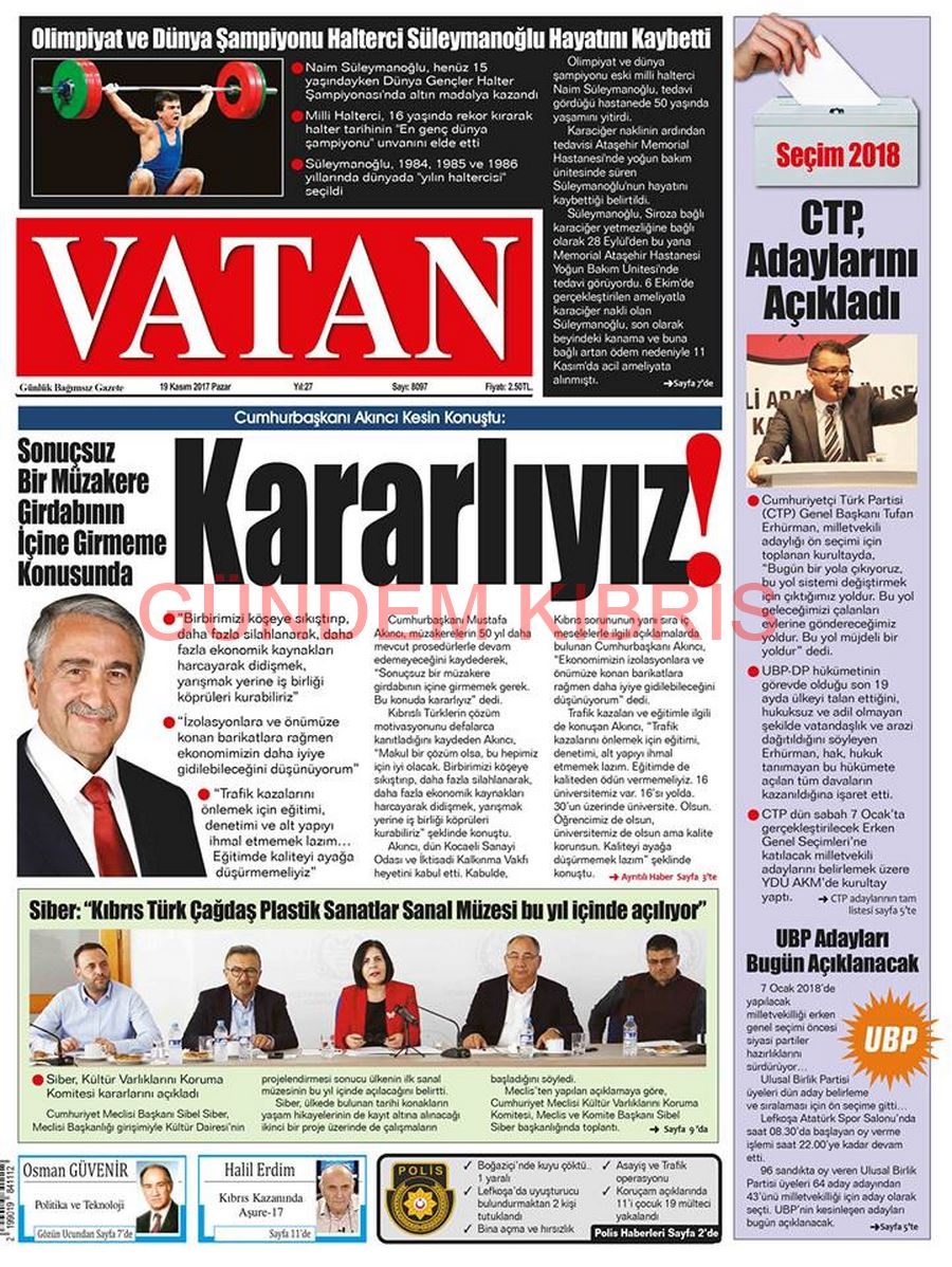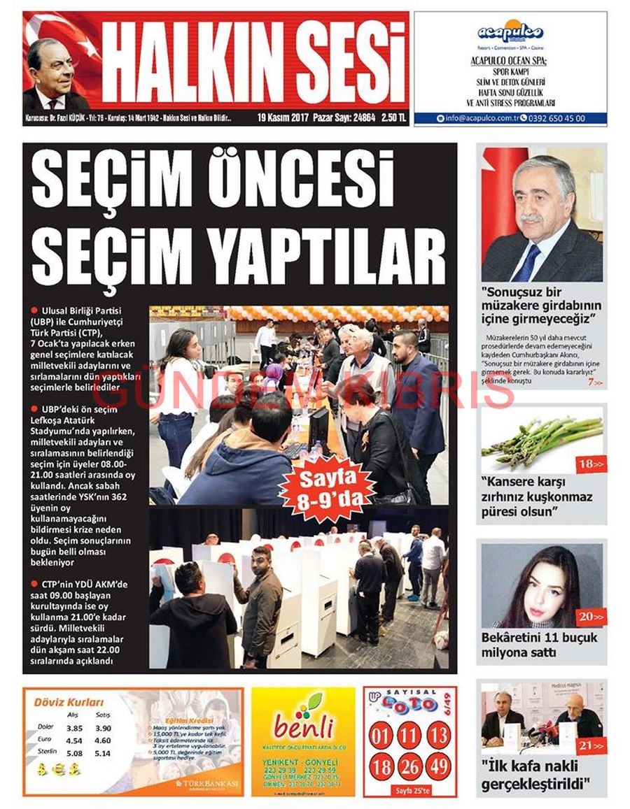 KKTC Gazete Manşetleri 19 Kasım 2017
