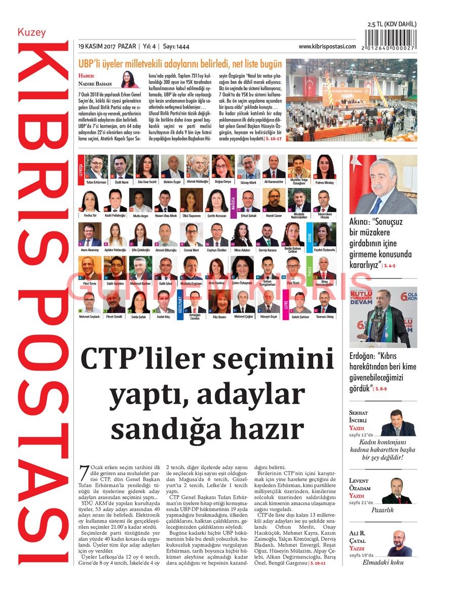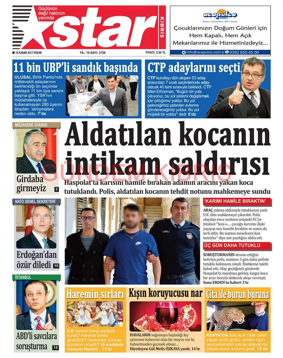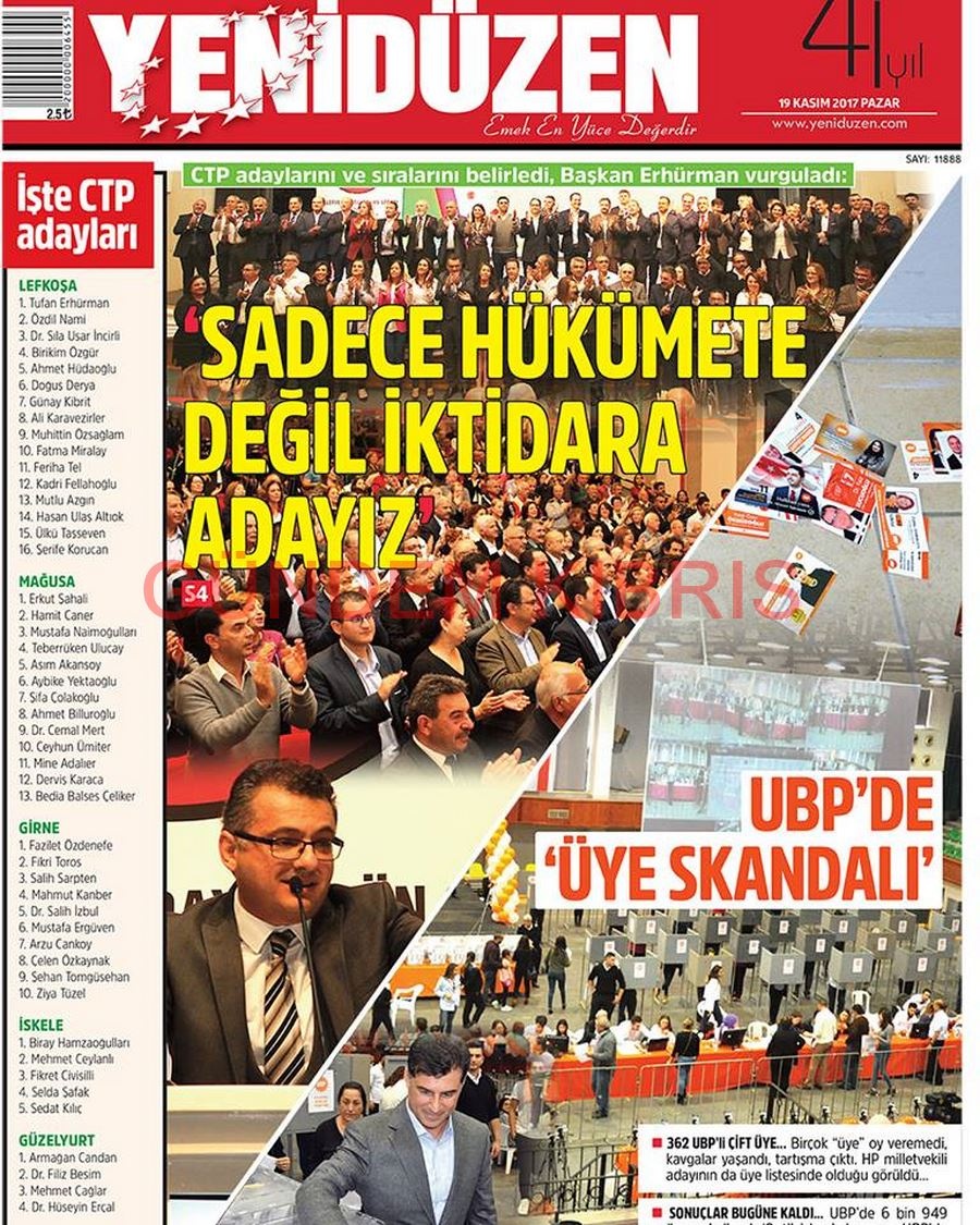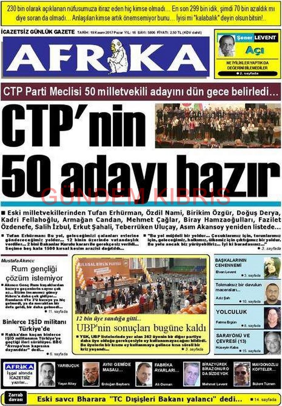 KKTC Gazete Manşetleri 19 Kasım 2017