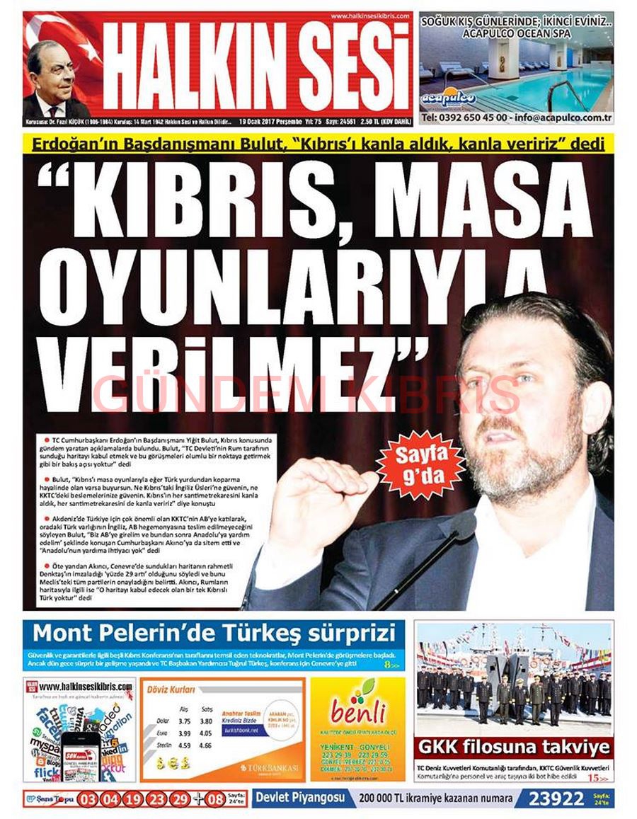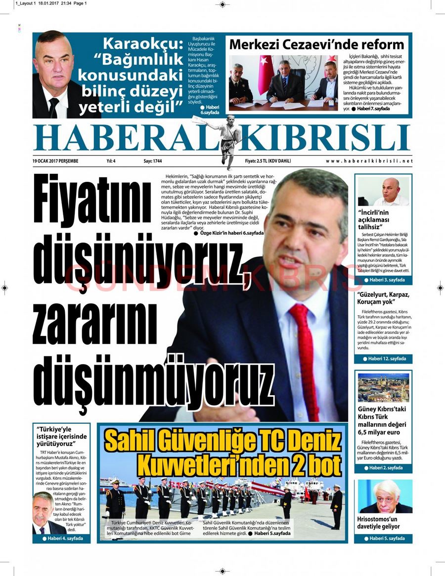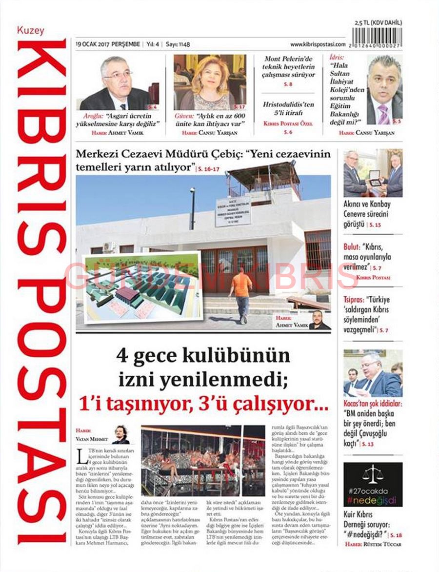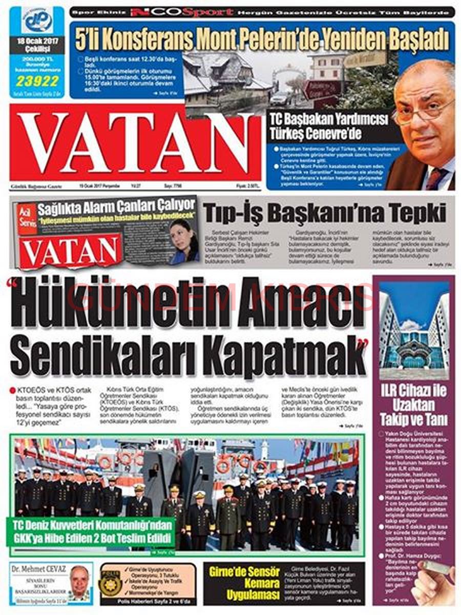 KKTC Gazete Manşetleri 19 Ocak 2017
