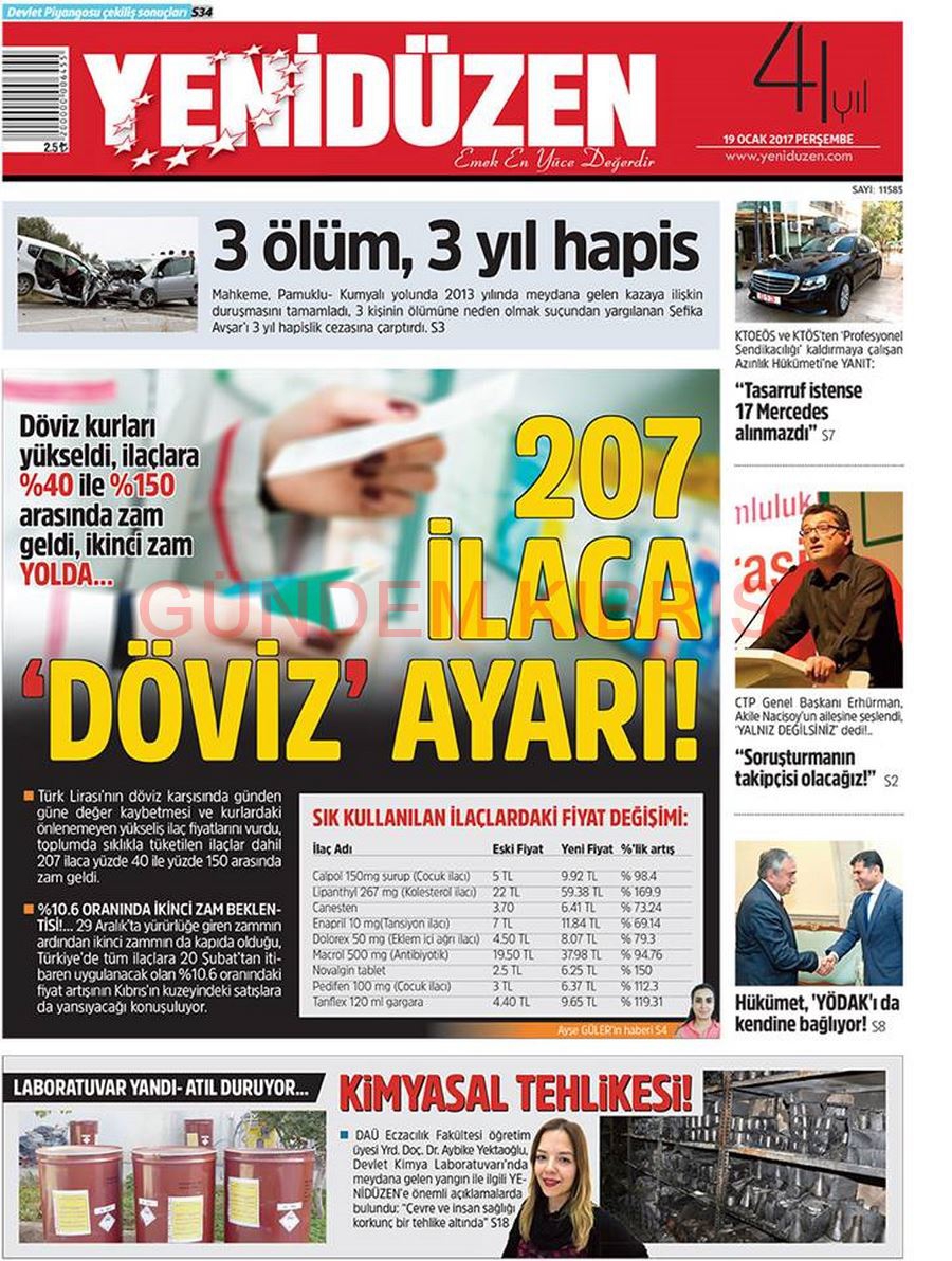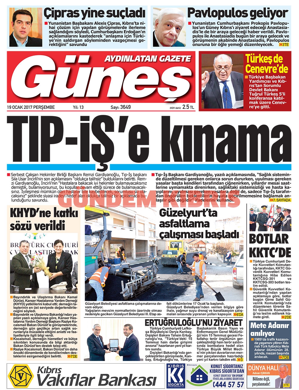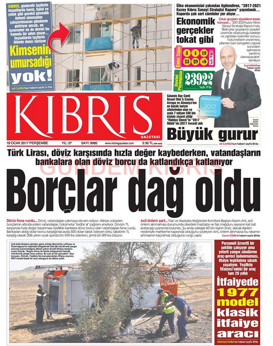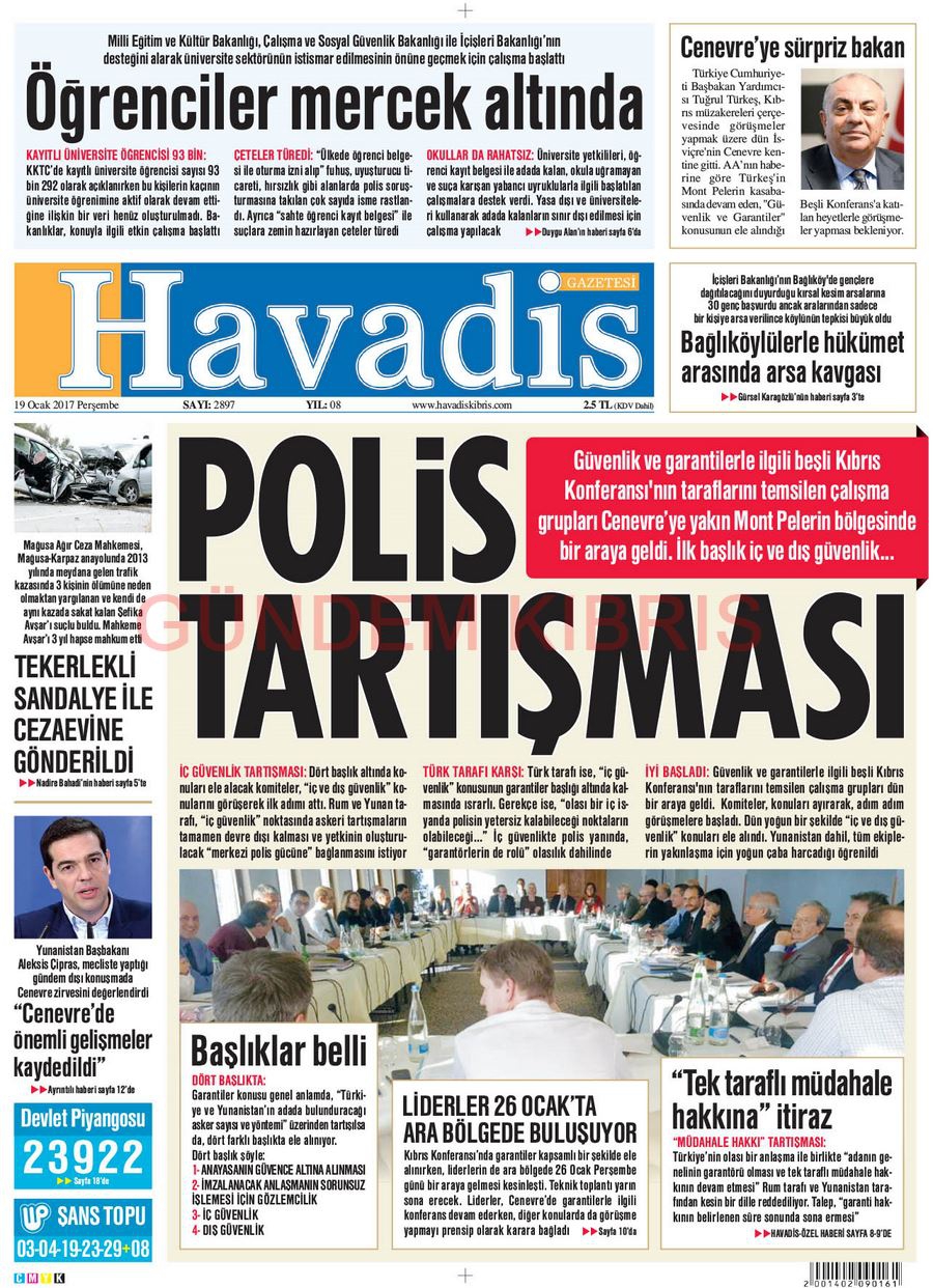 KKTC Gazete Manşetleri 19 Ocak 2017