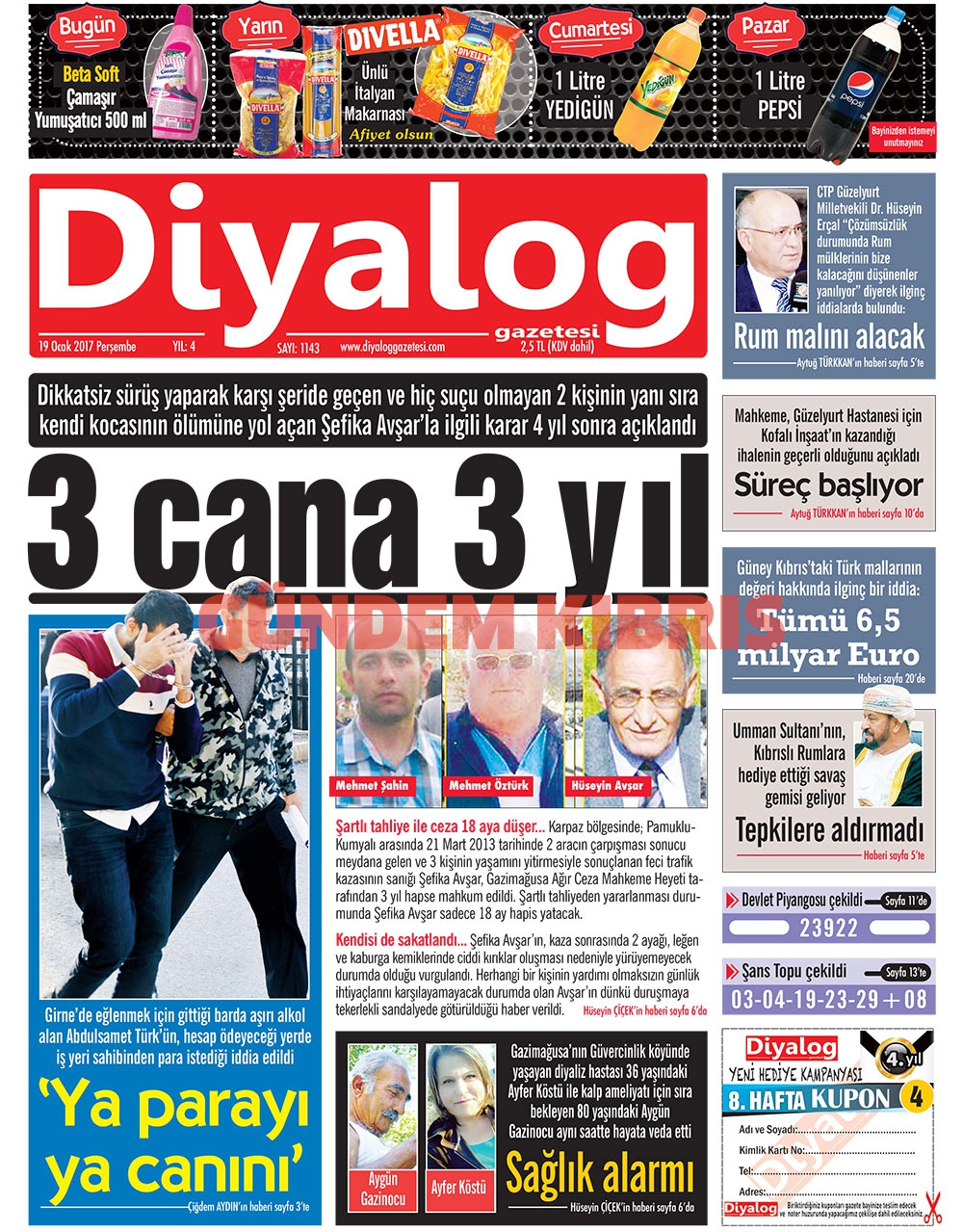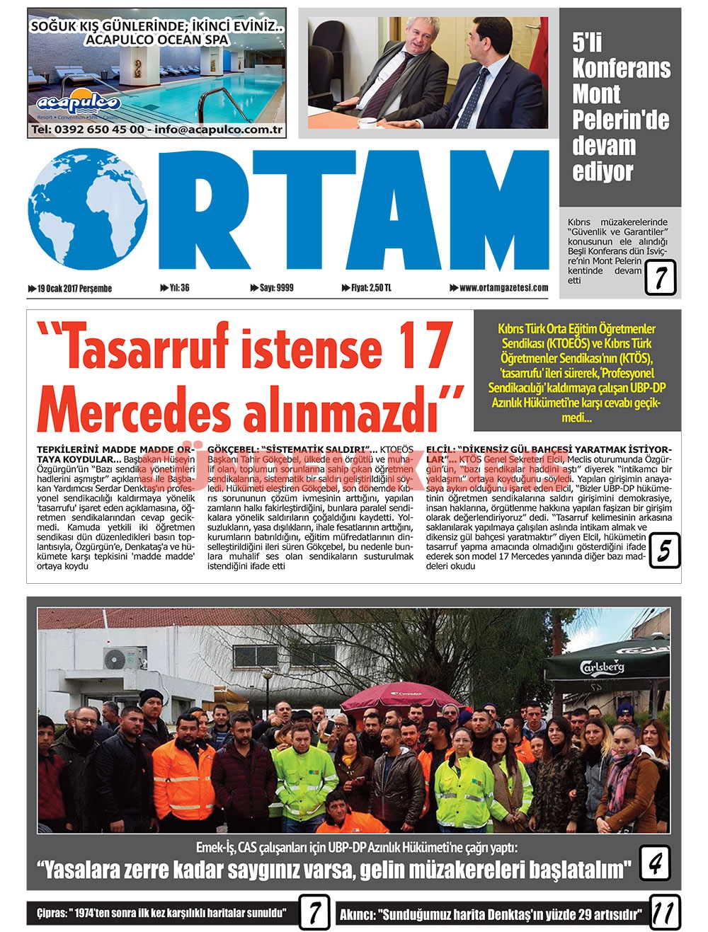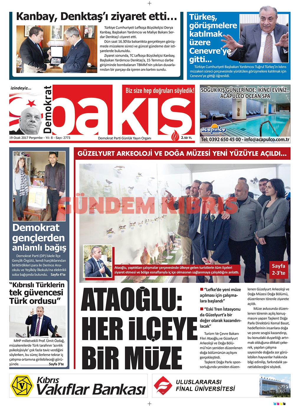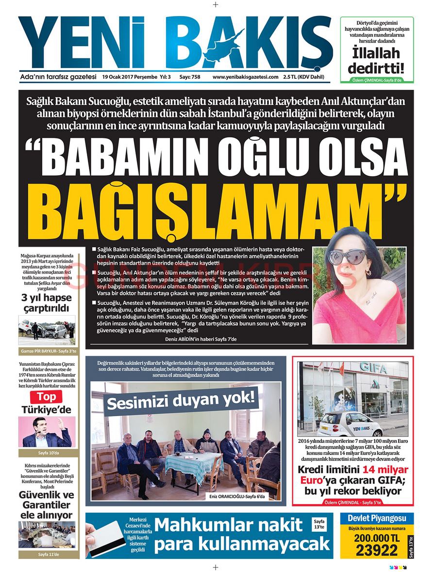 KKTC Gazete Manşetleri 19 Ocak 2017