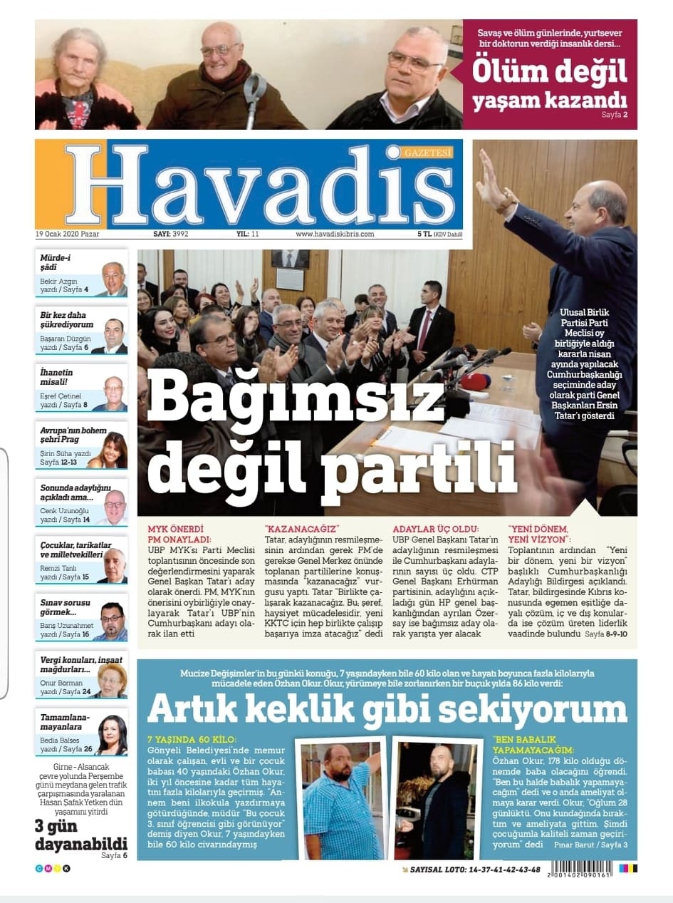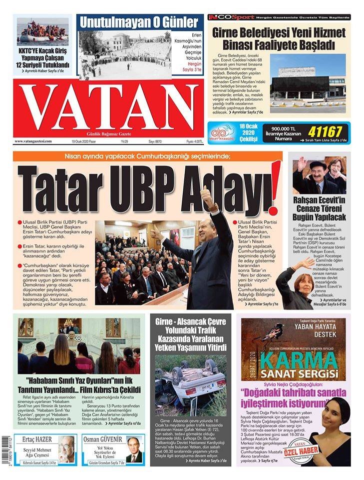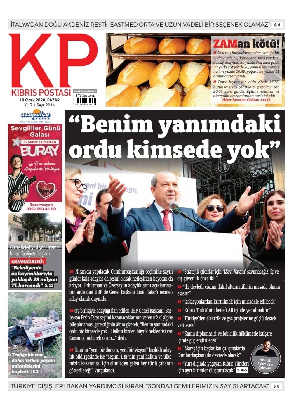 KKTC Gazete Manşetleri 19 Ocak 2020
