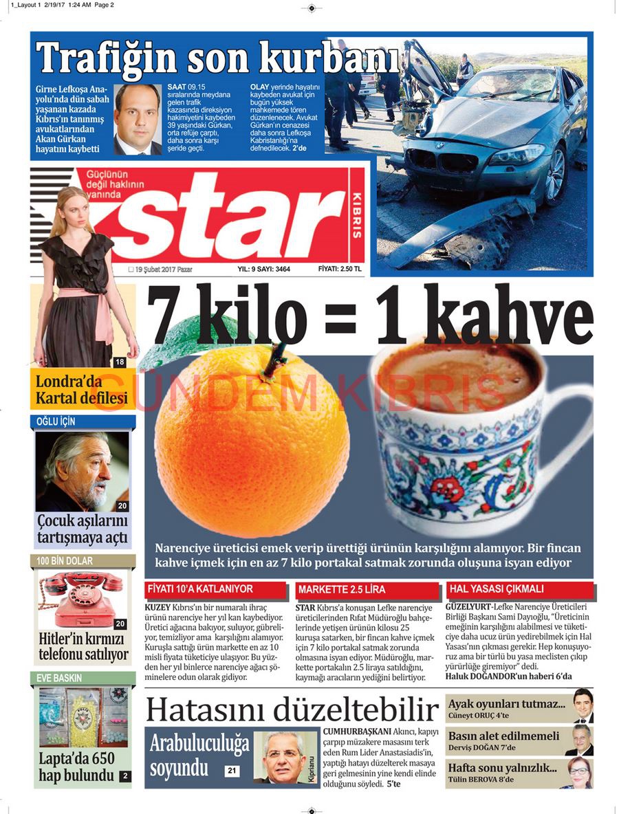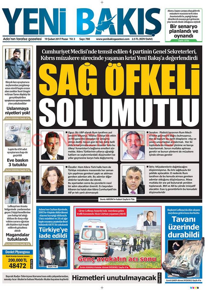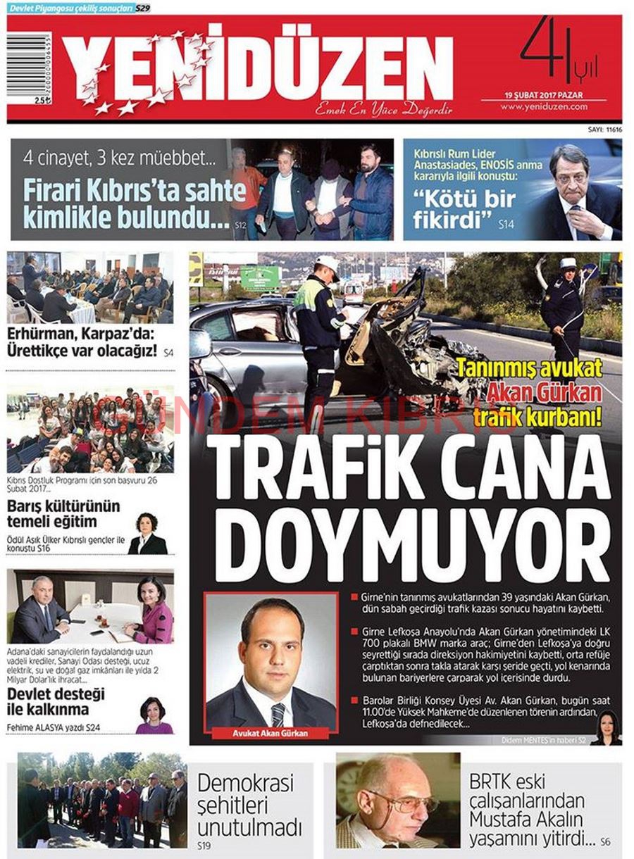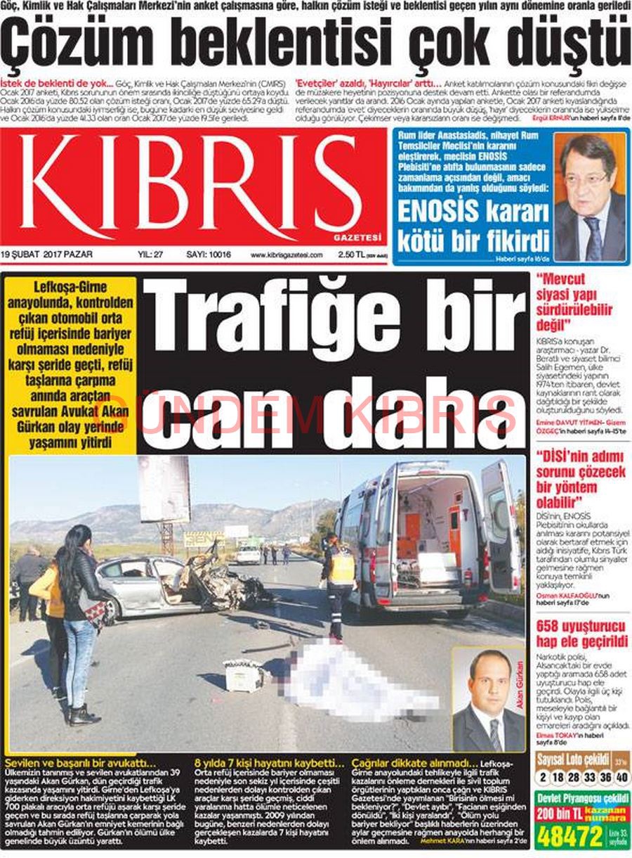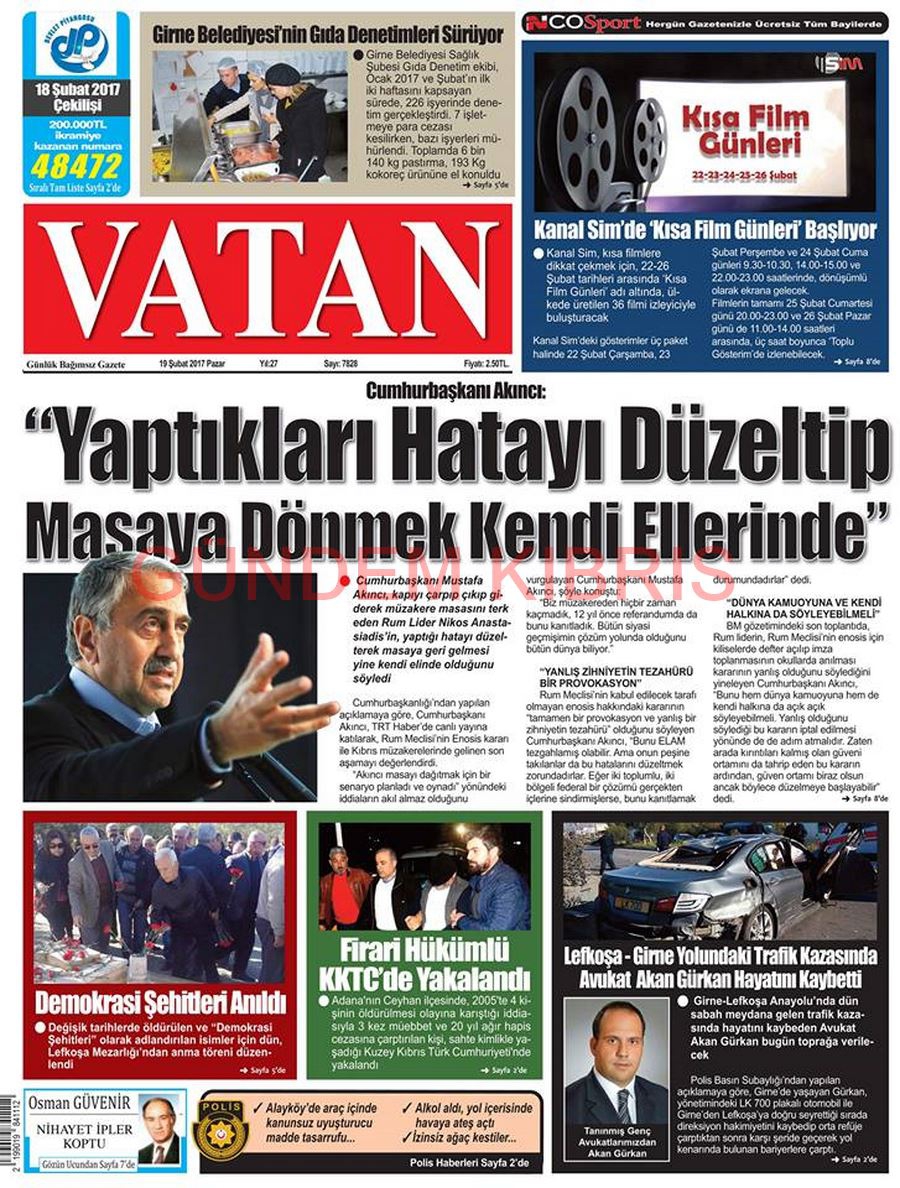 KKTC Gazete Manşetleri 19 Şubat 2017