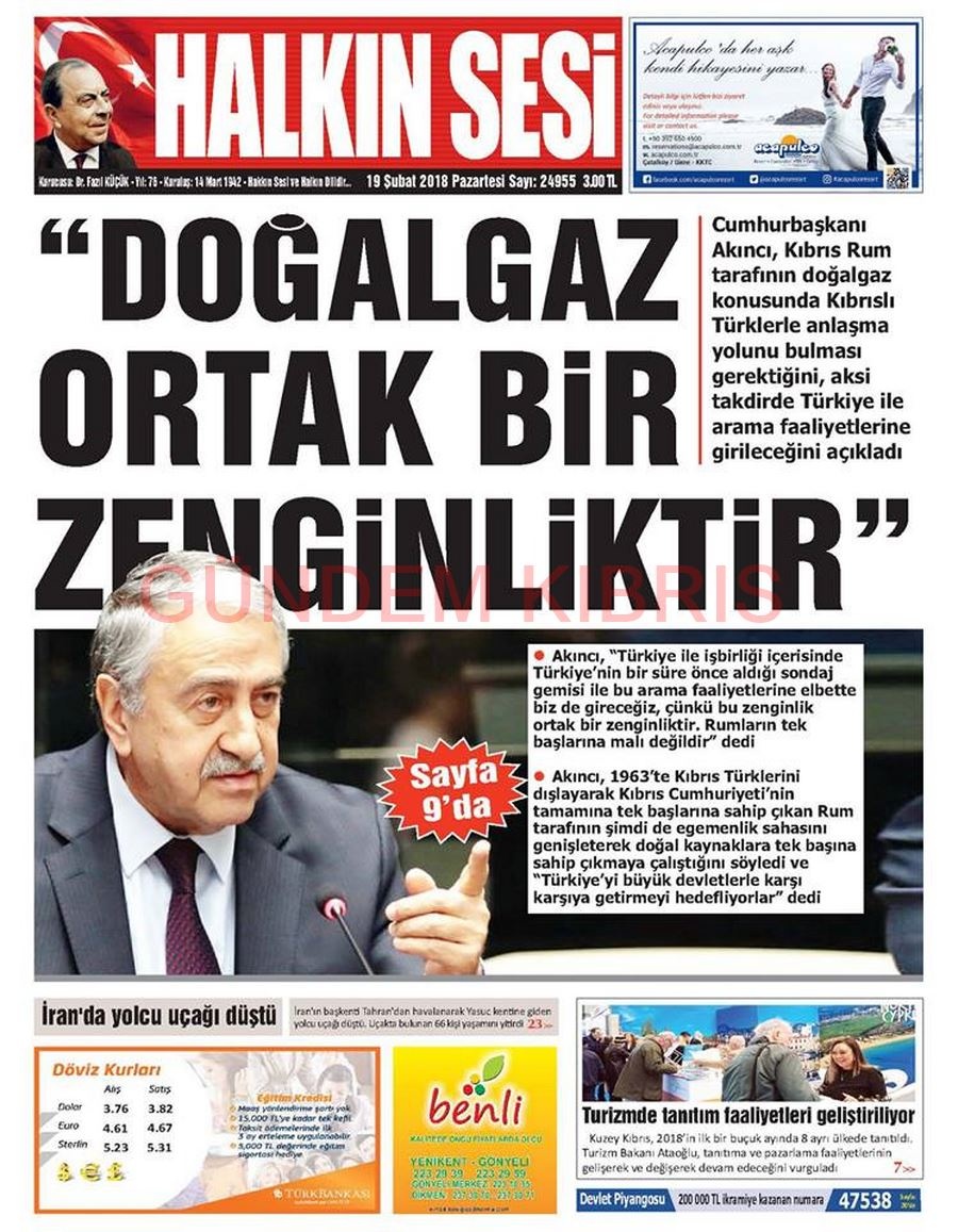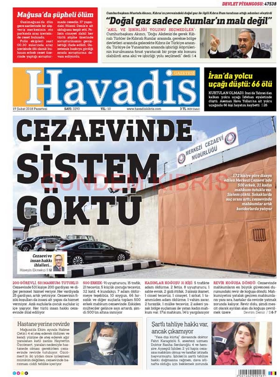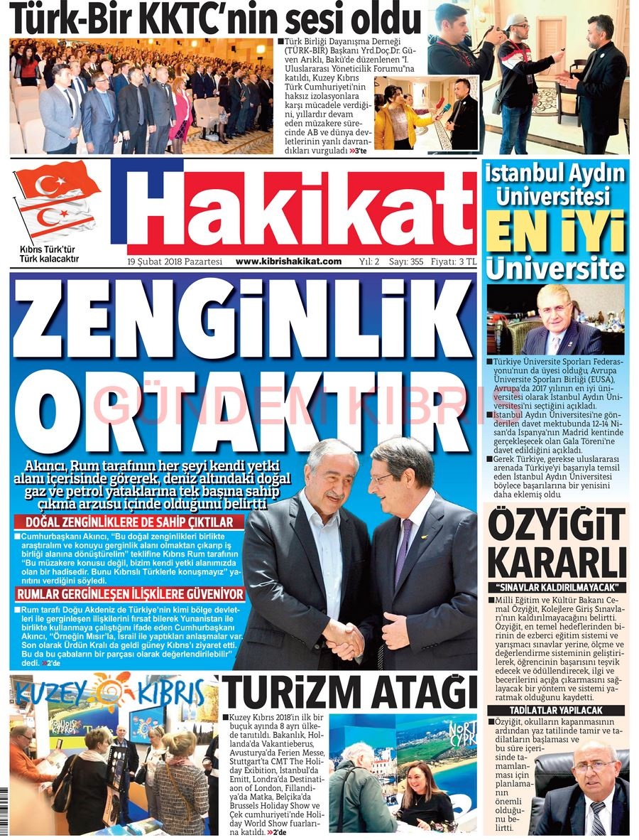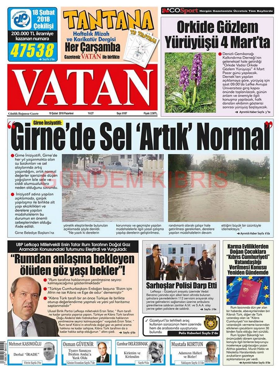 KKTC Gazete Manşetleri 19 Şubat 2018