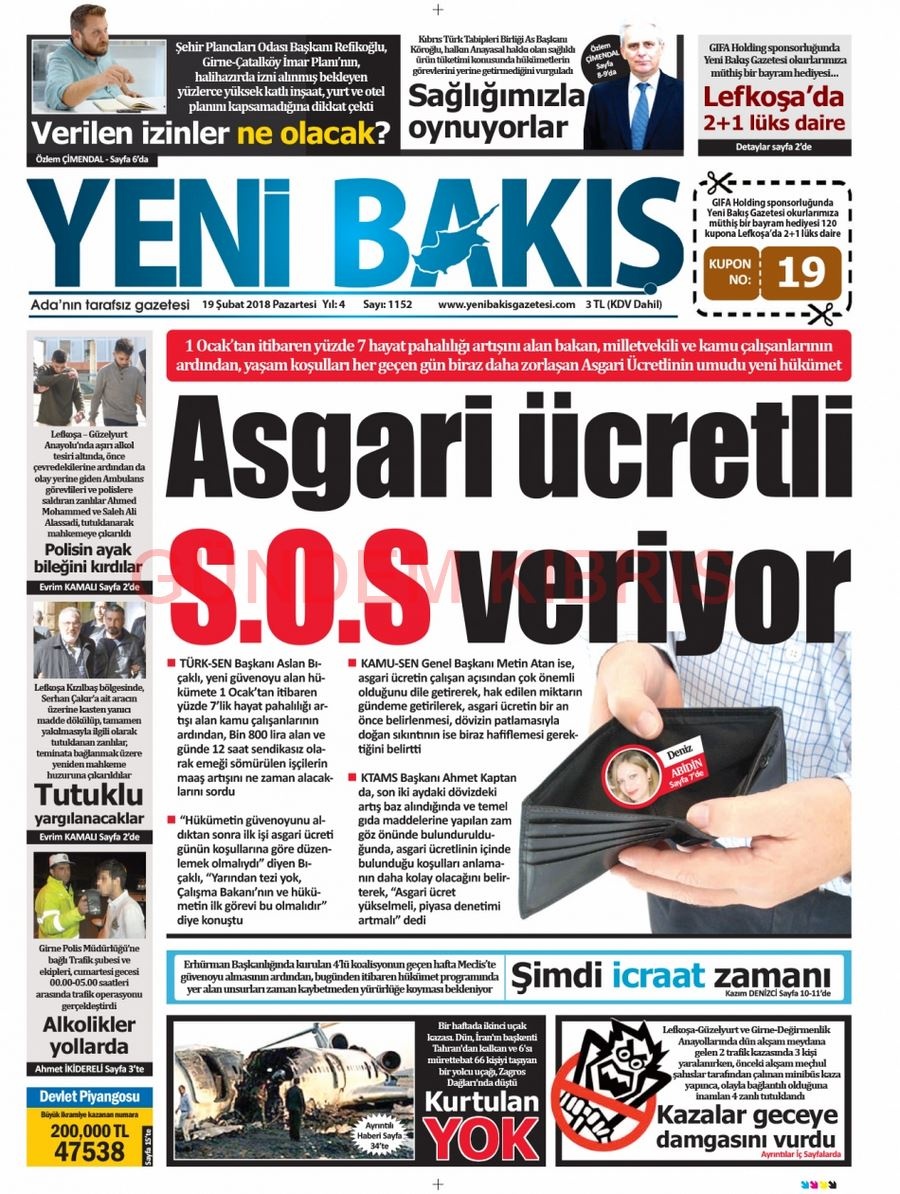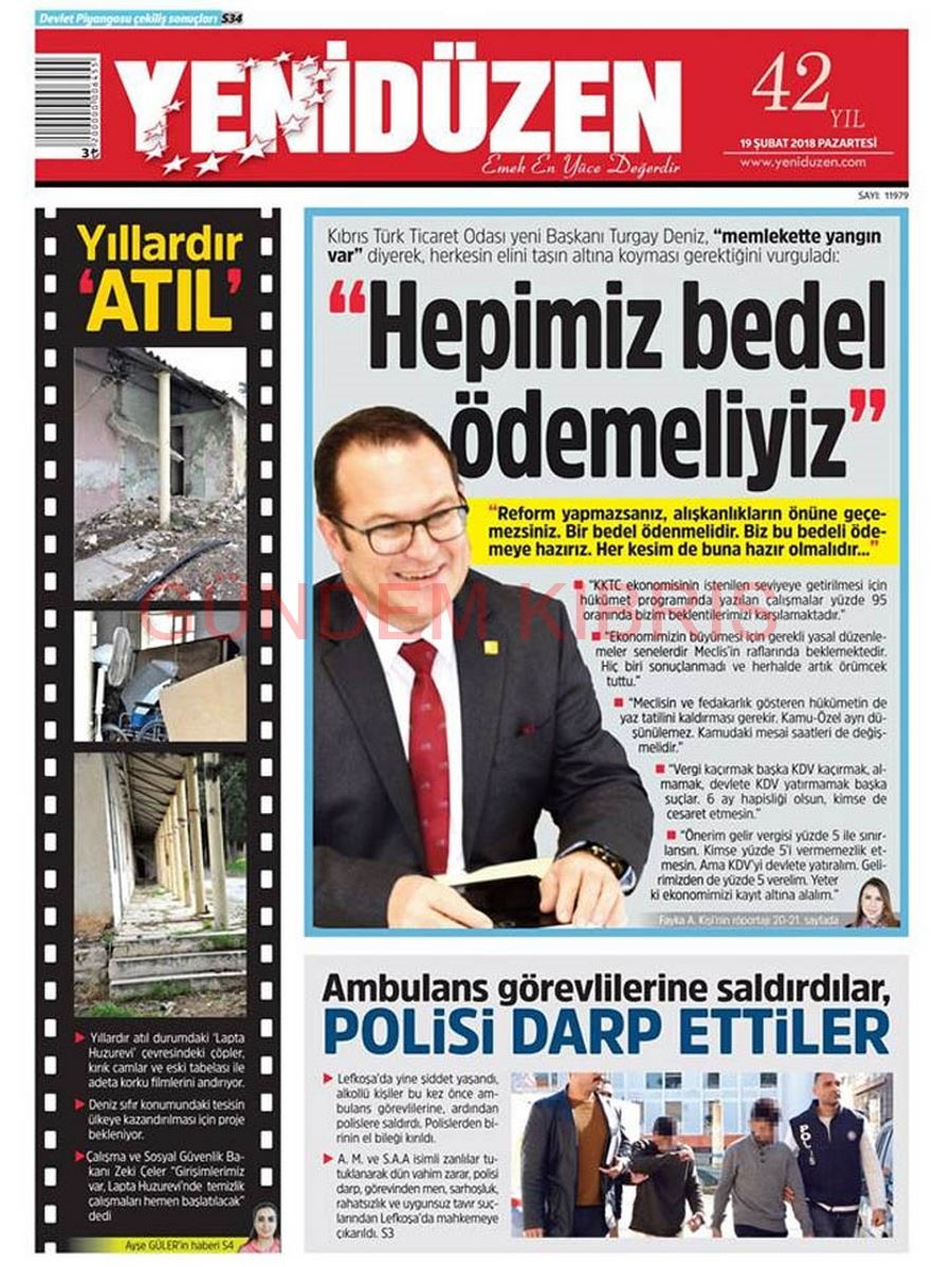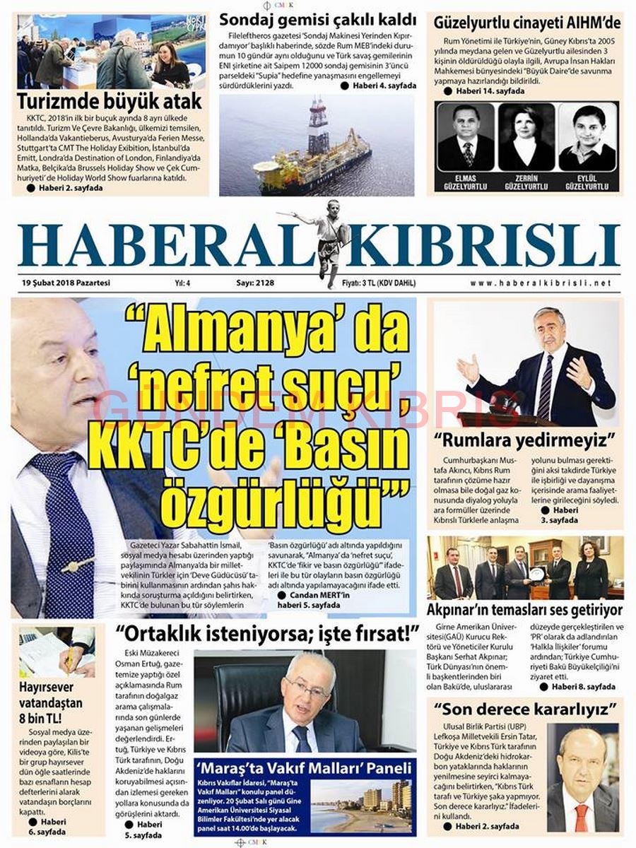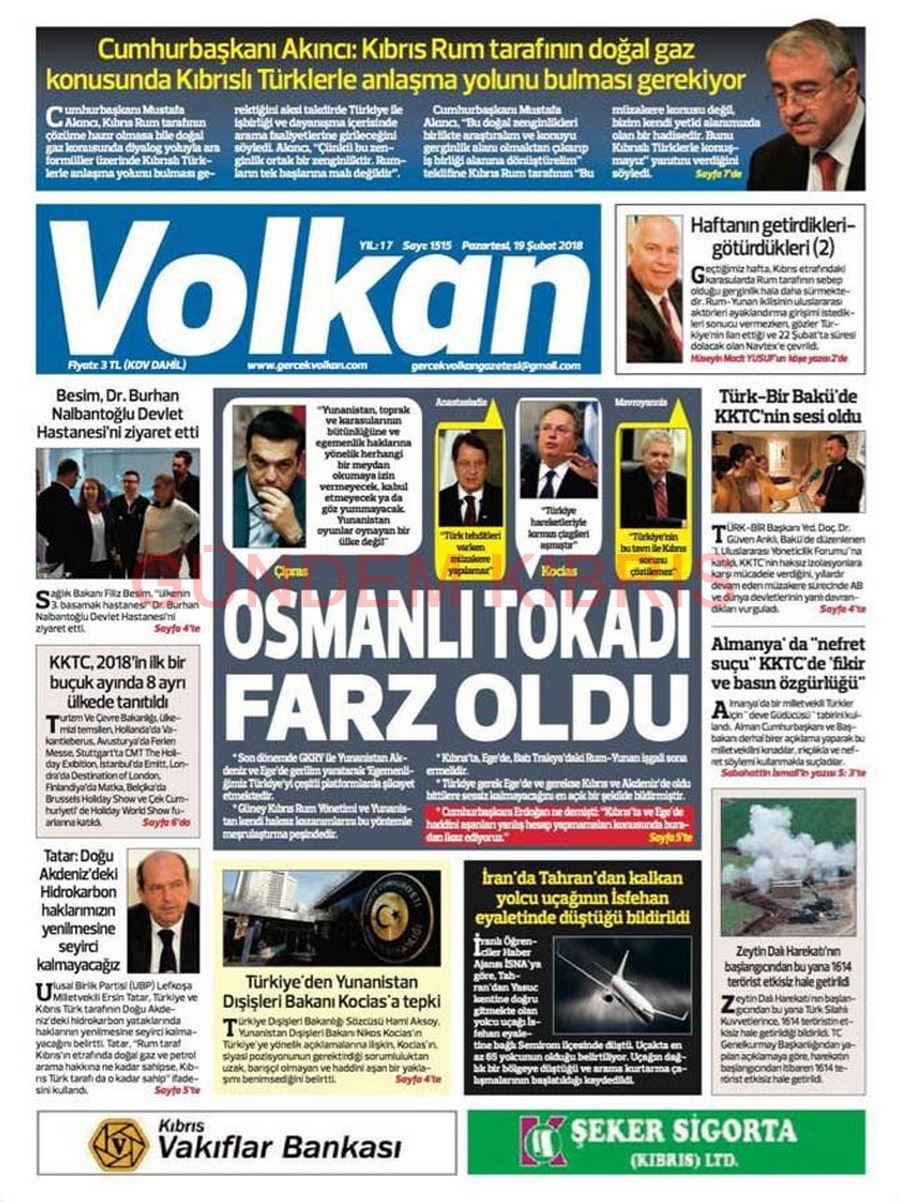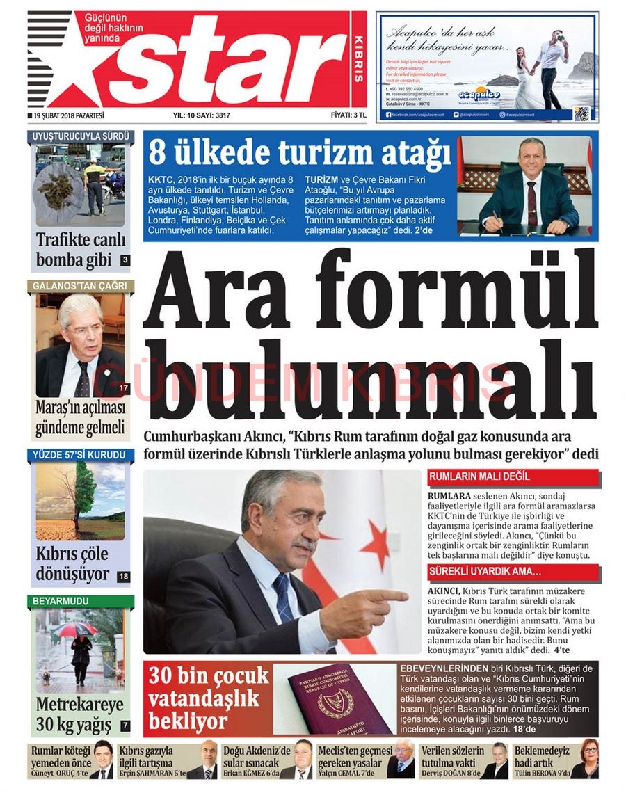 KKTC Gazete Manşetleri 19 Şubat 2018