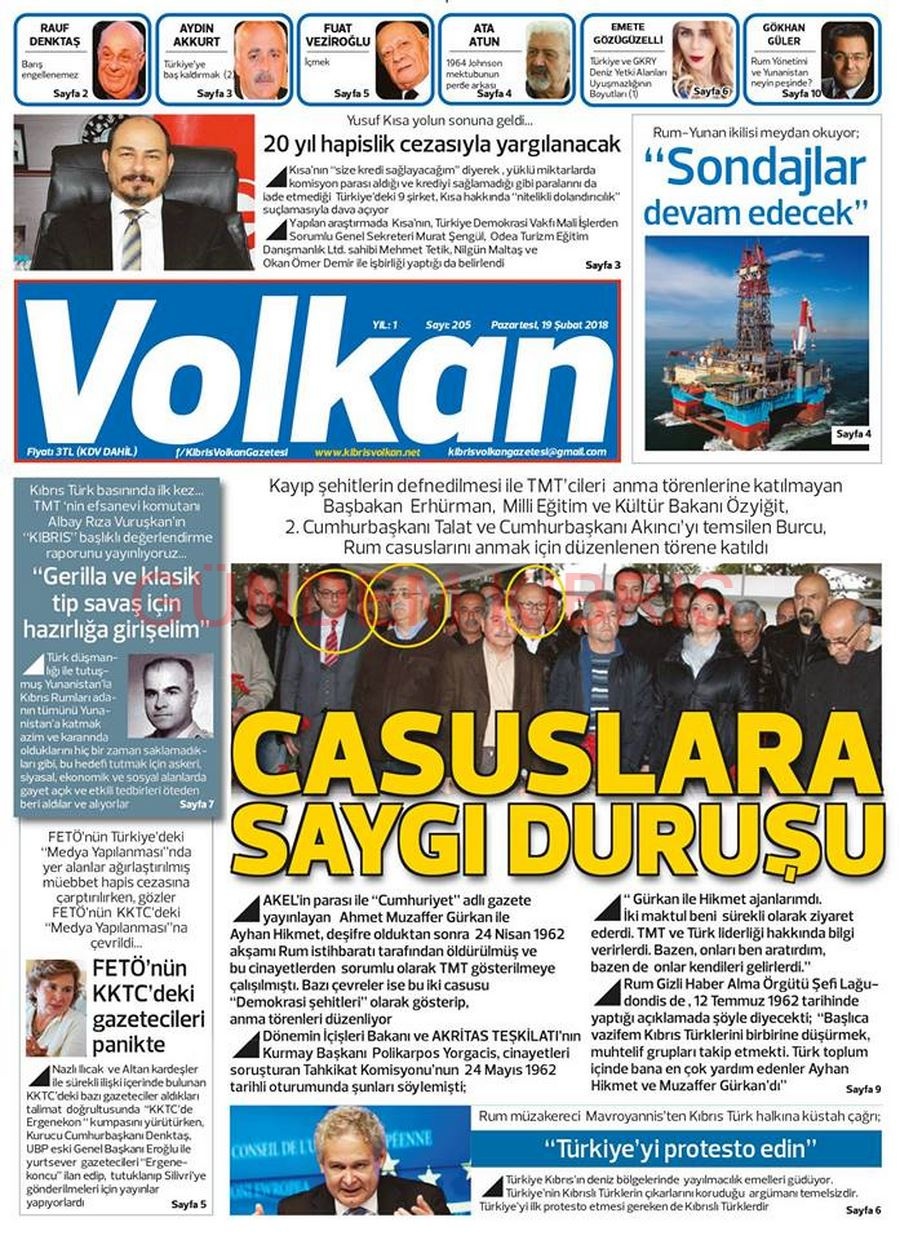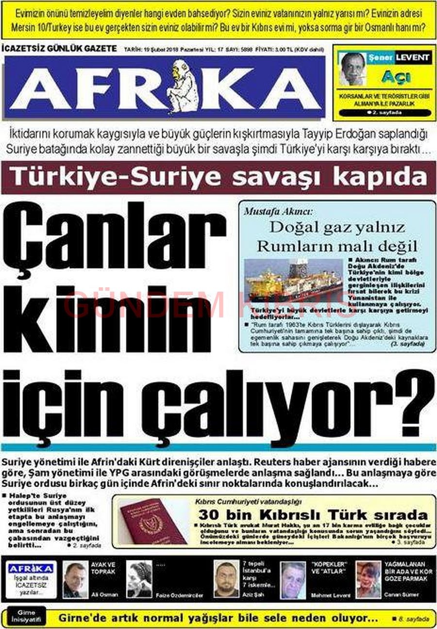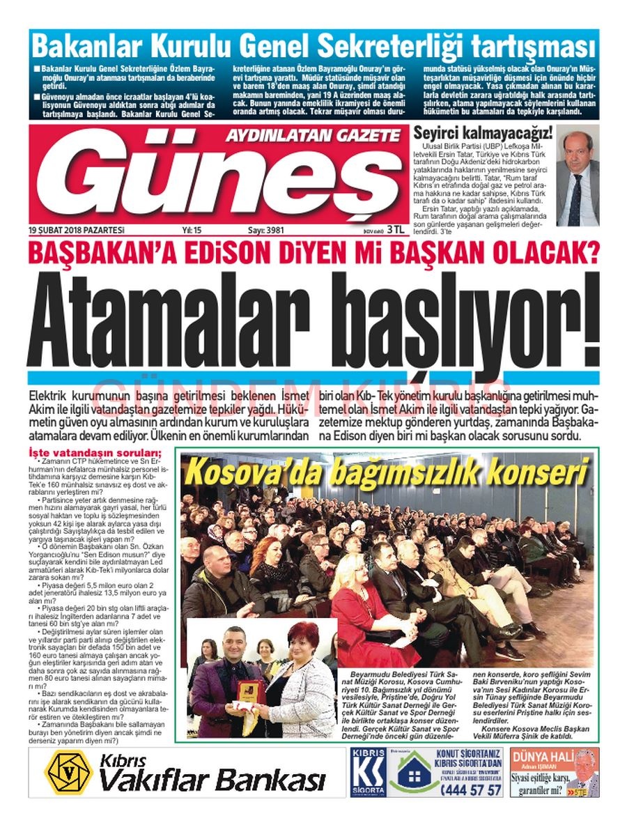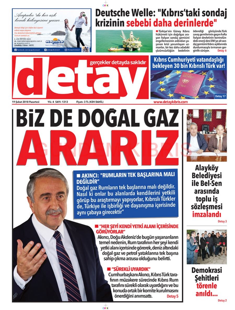 KKTC Gazete Manşetleri 19 Şubat 2018