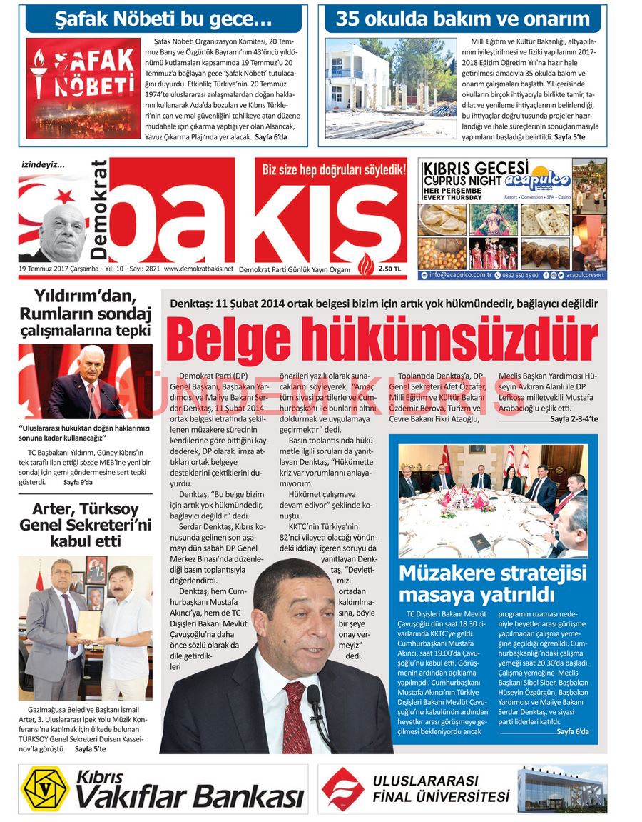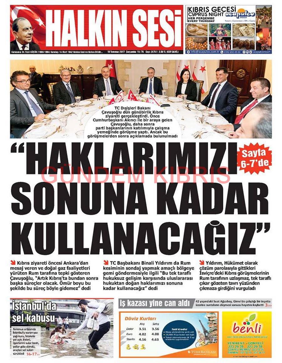 KKTC Gazete Manşetleri 19 Temmuz 2017