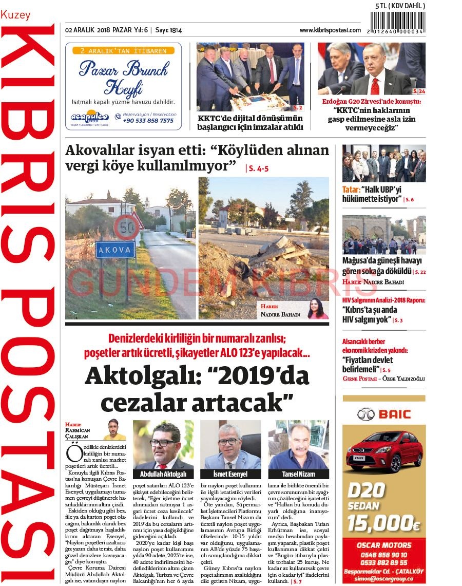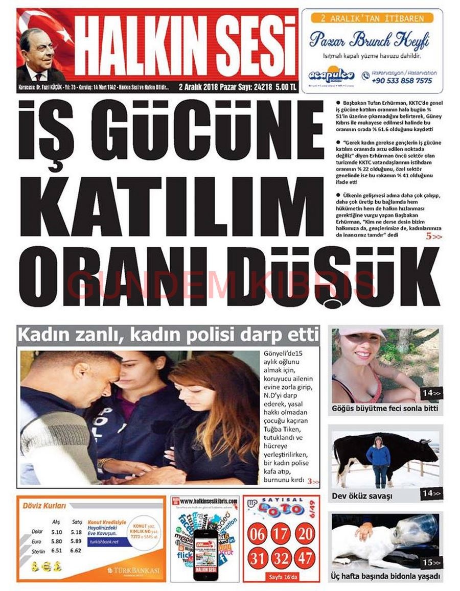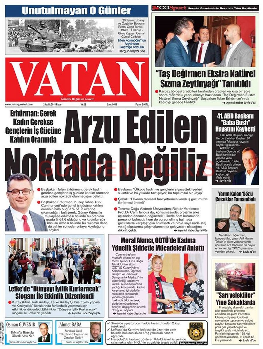 KKTC Gazete Manşetleri 2 Aralık 2018