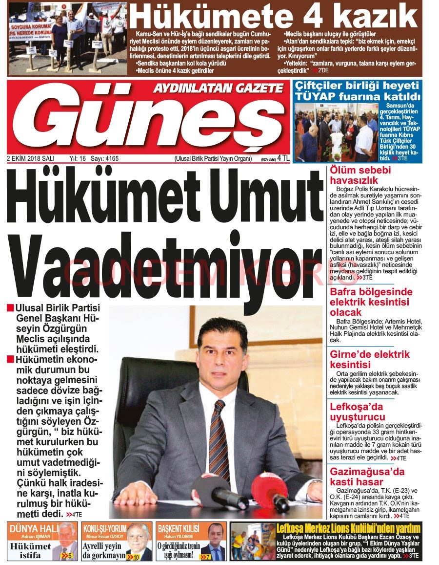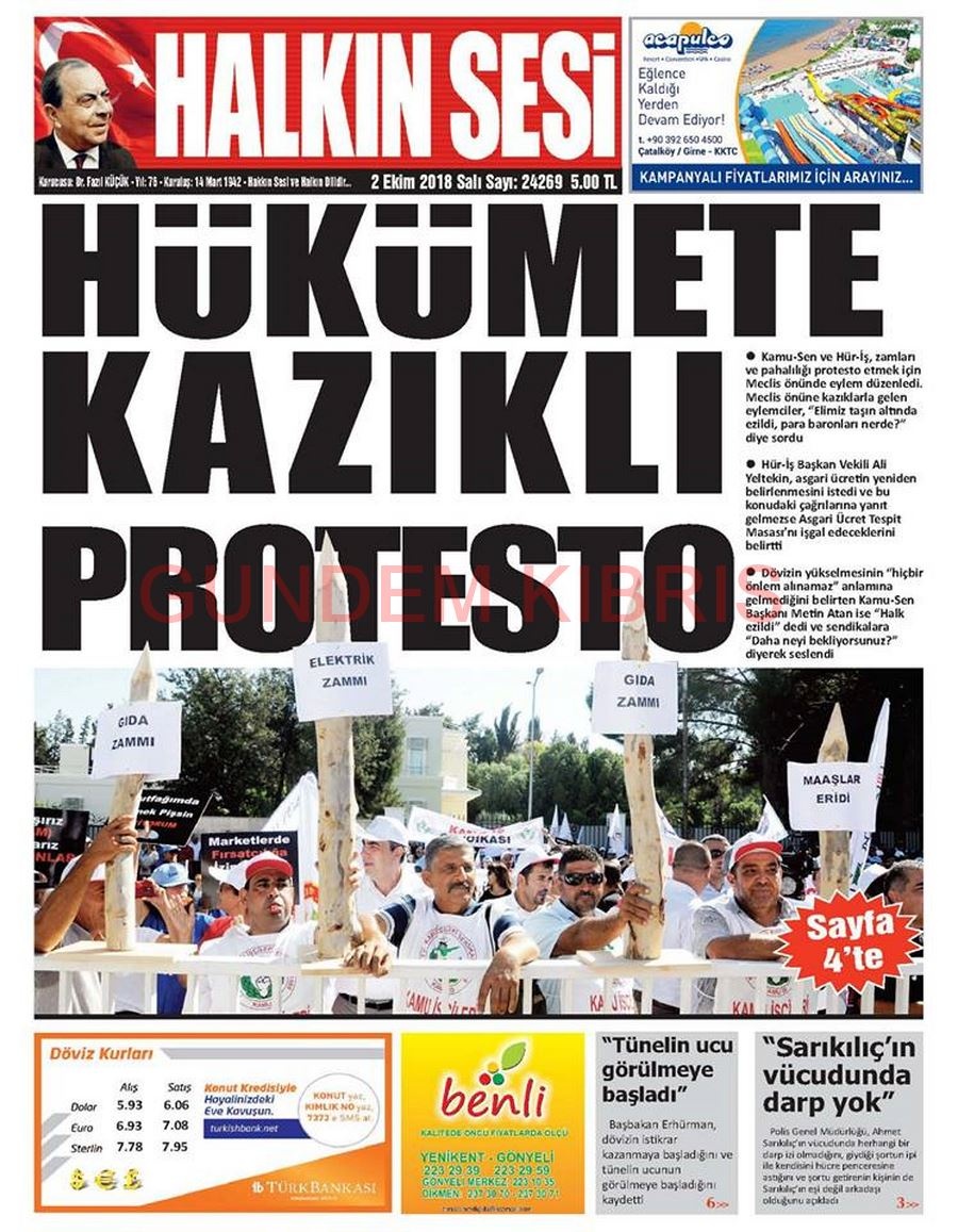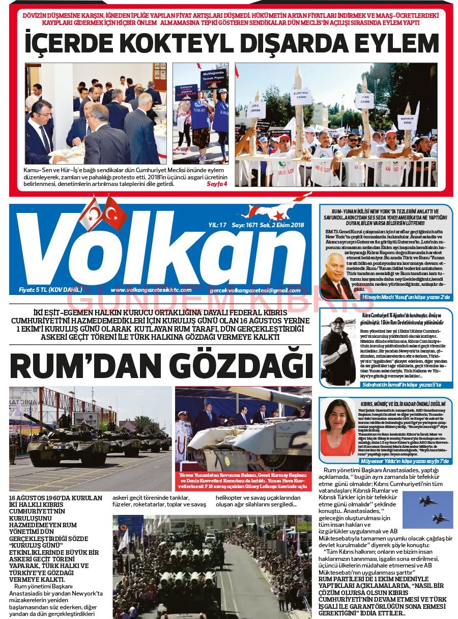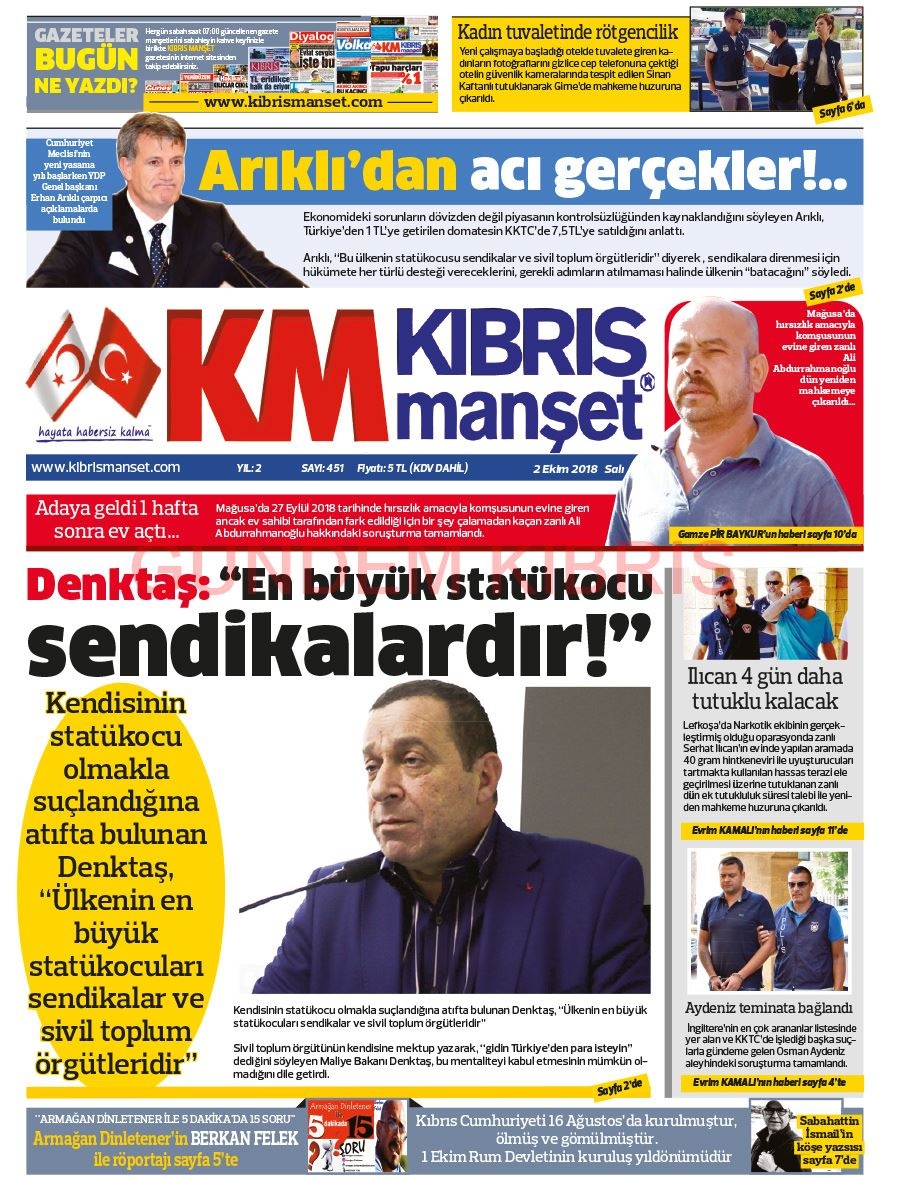 KKTC Gazete Manşetleri 2 Ekim 2018