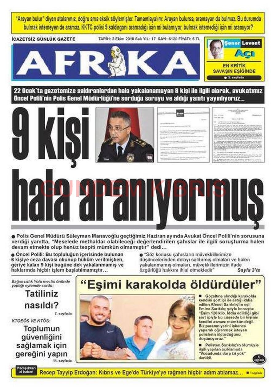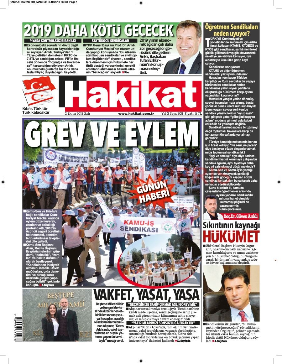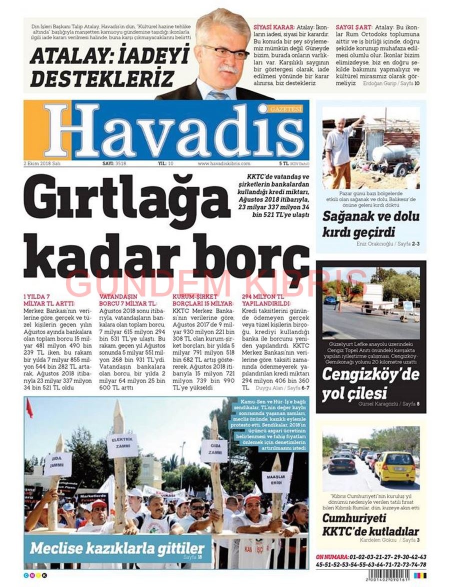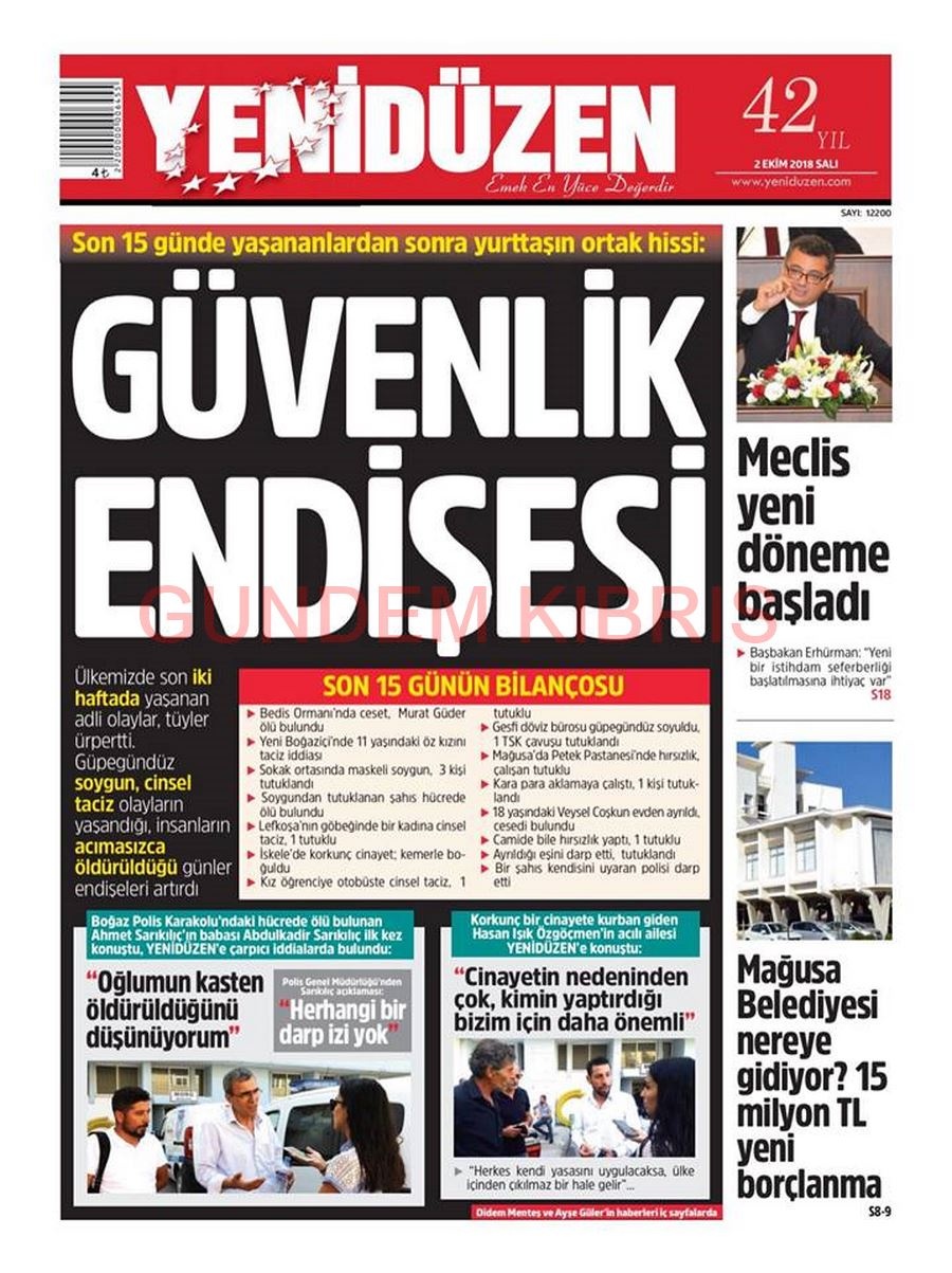 KKTC Gazete Manşetleri 2 Ekim 2018
