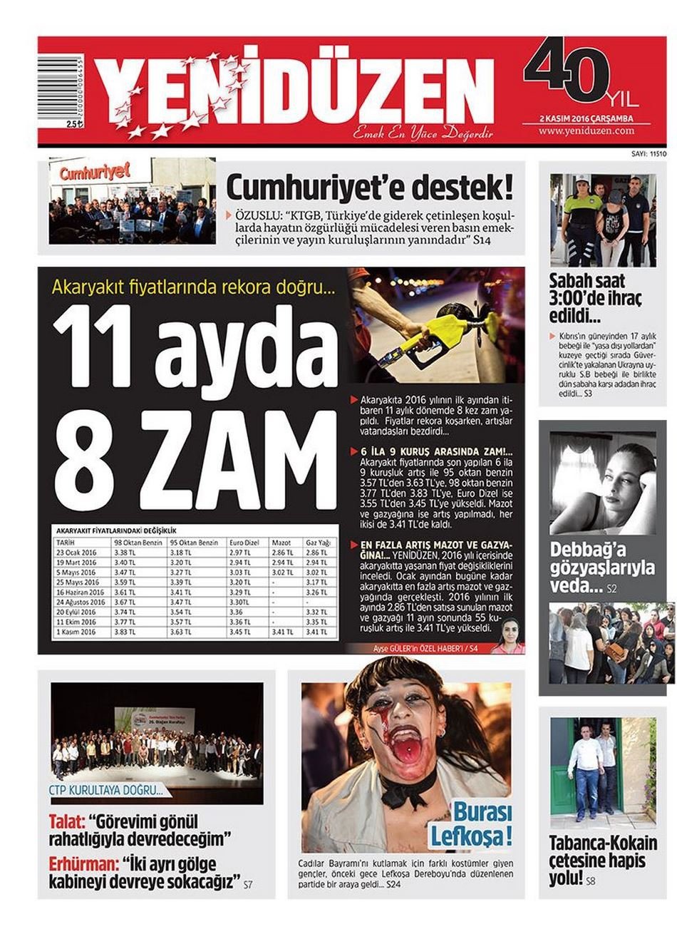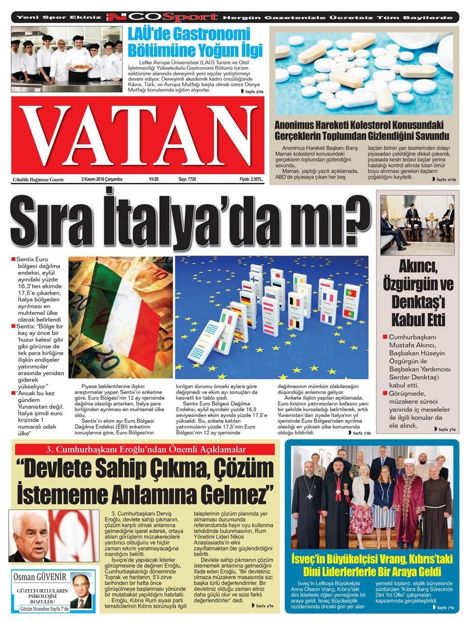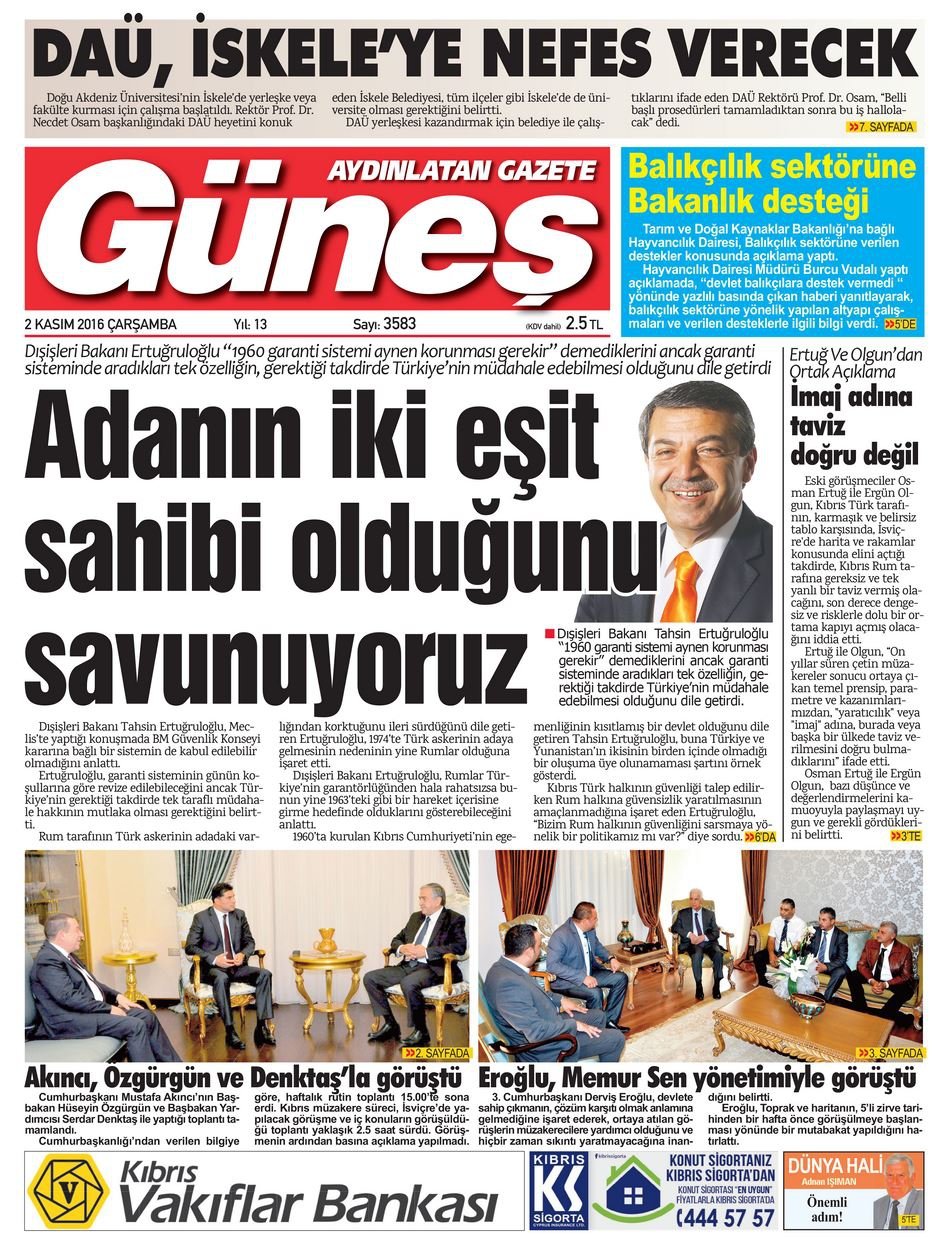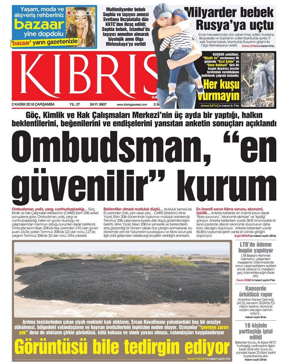 KKTC Gazete Manşetleri 2 Kasım 2016