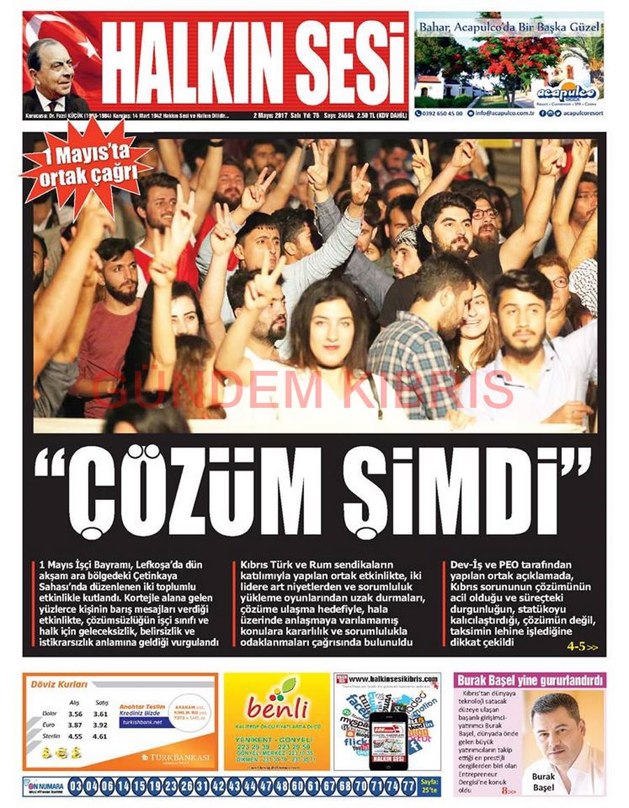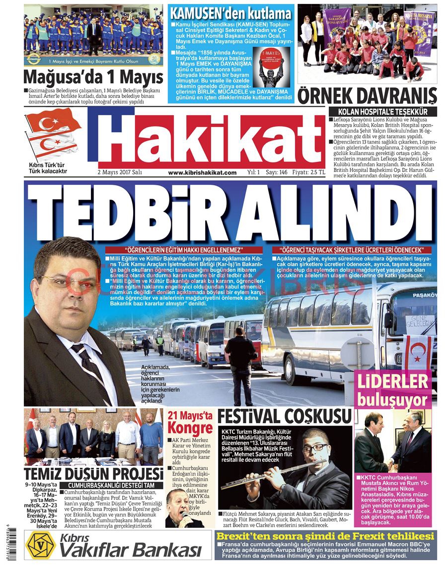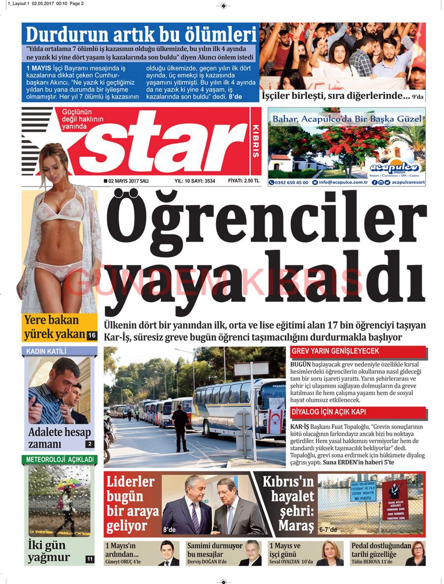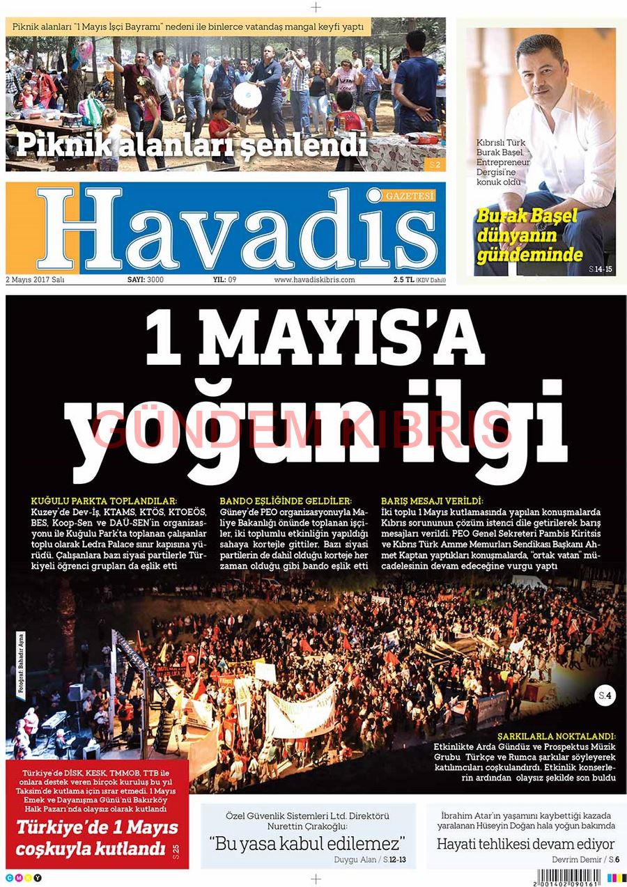 KKTC Gazete Manşetleri 2 Mayıs 2017