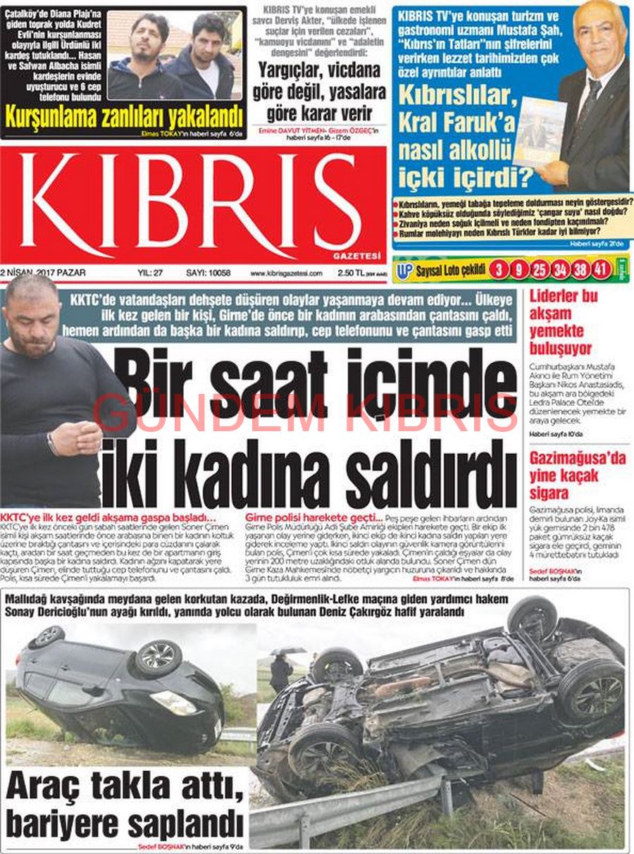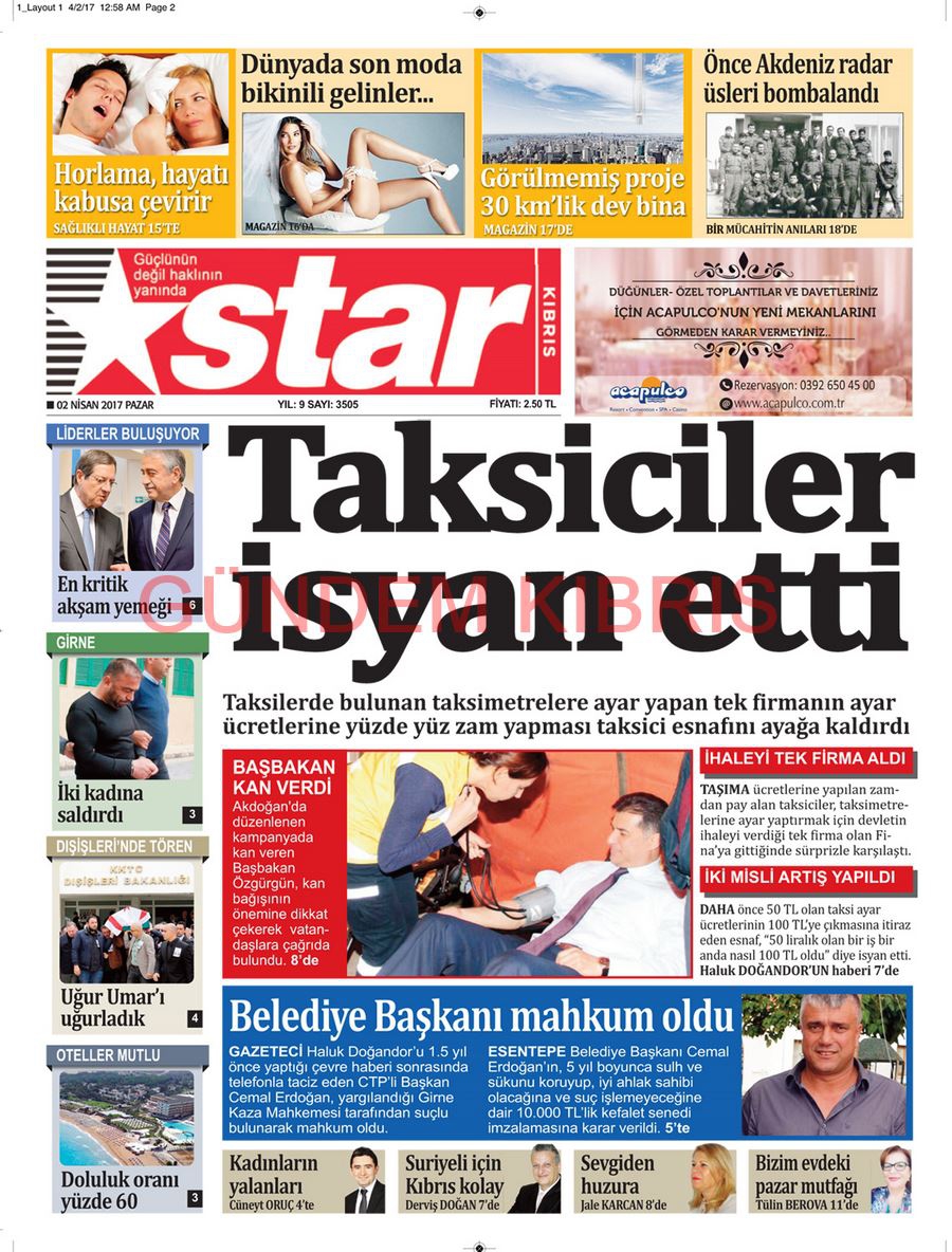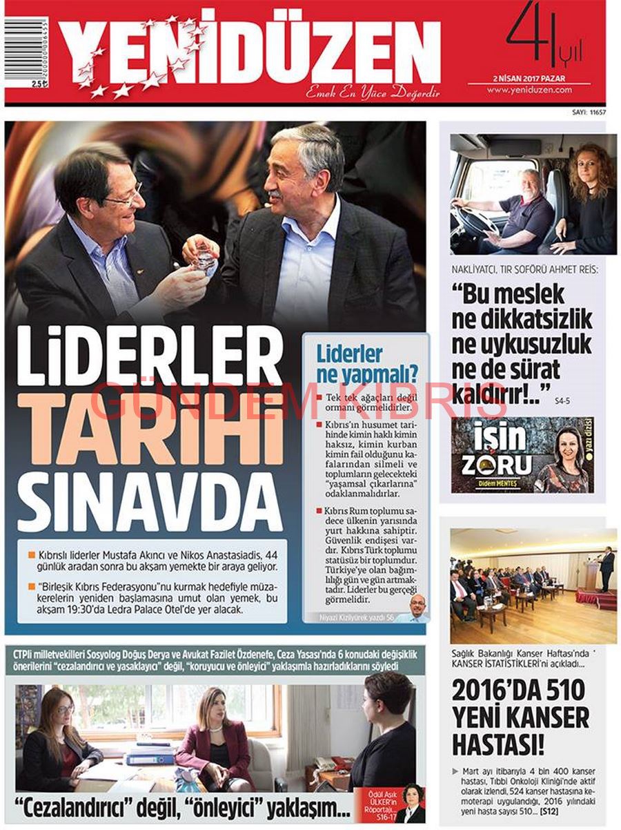 KKTC Gazete Manşetleri 2 Nisan 2017