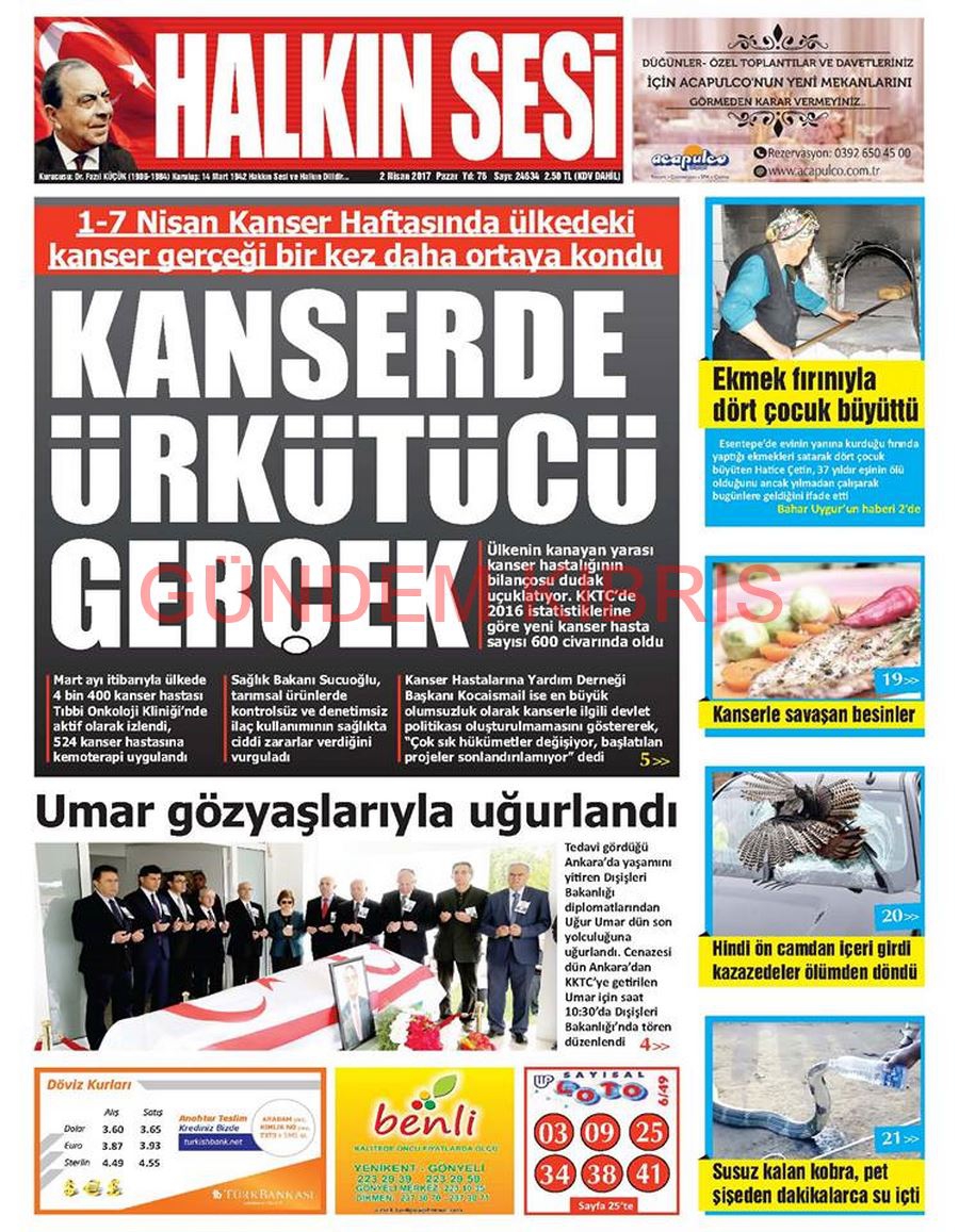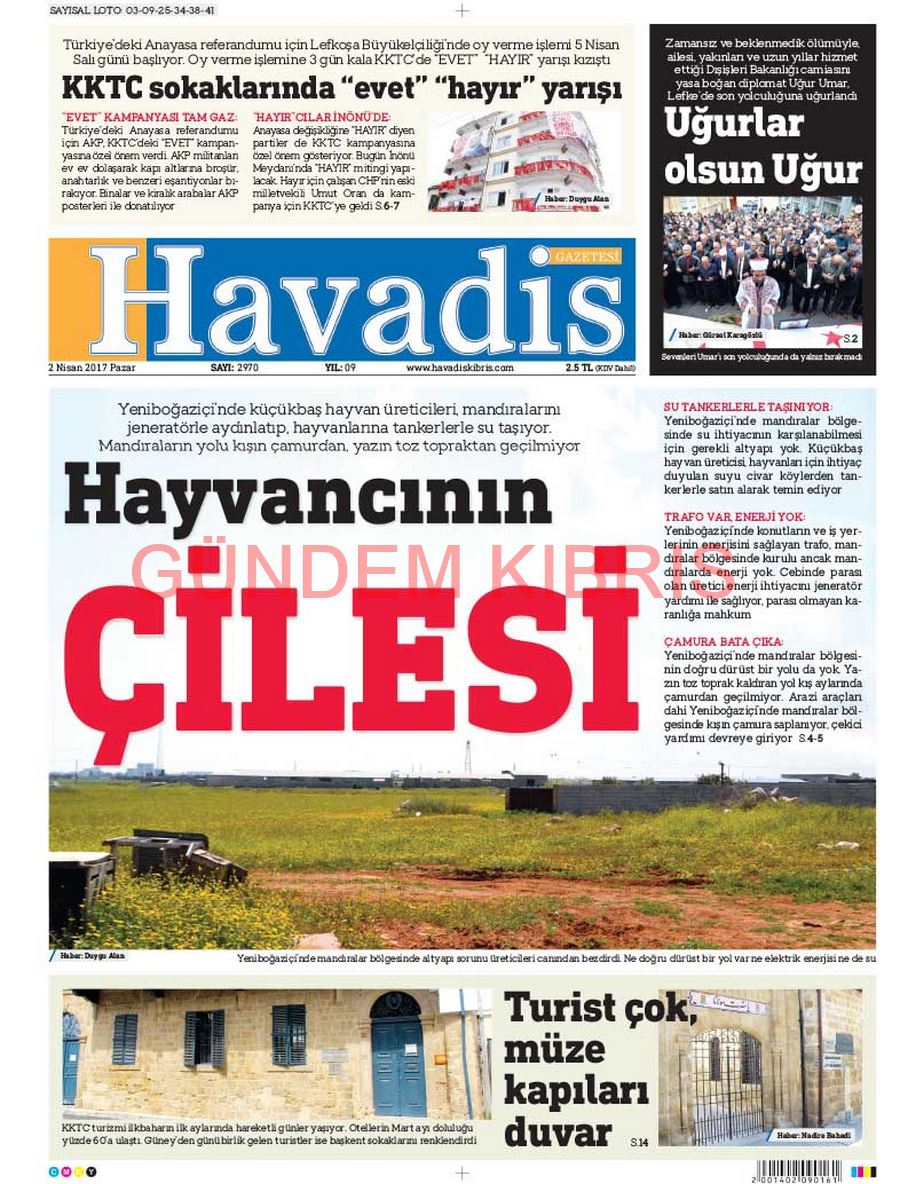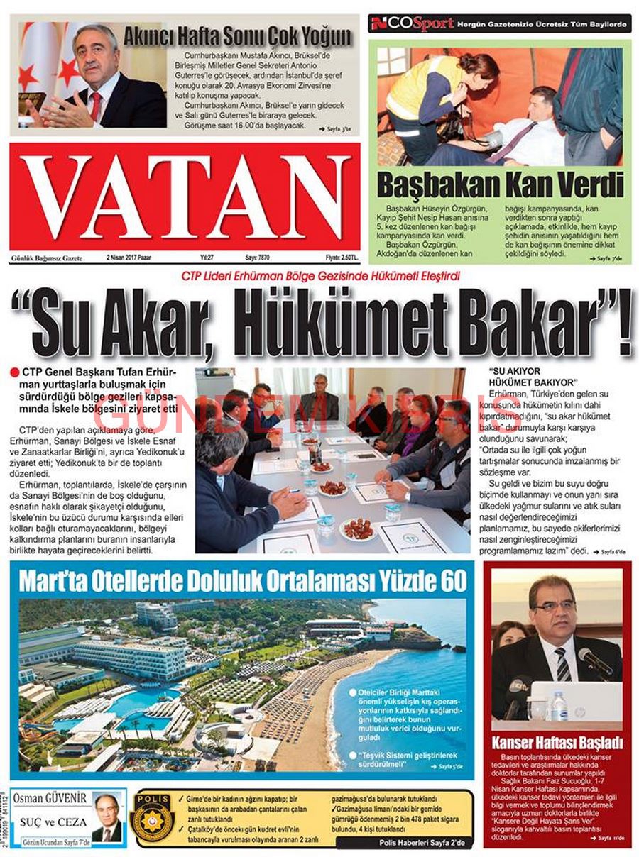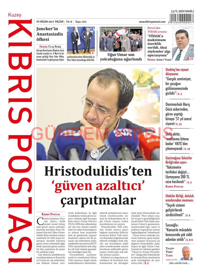 KKTC Gazete Manşetleri 2 Nisan 2017