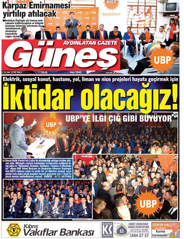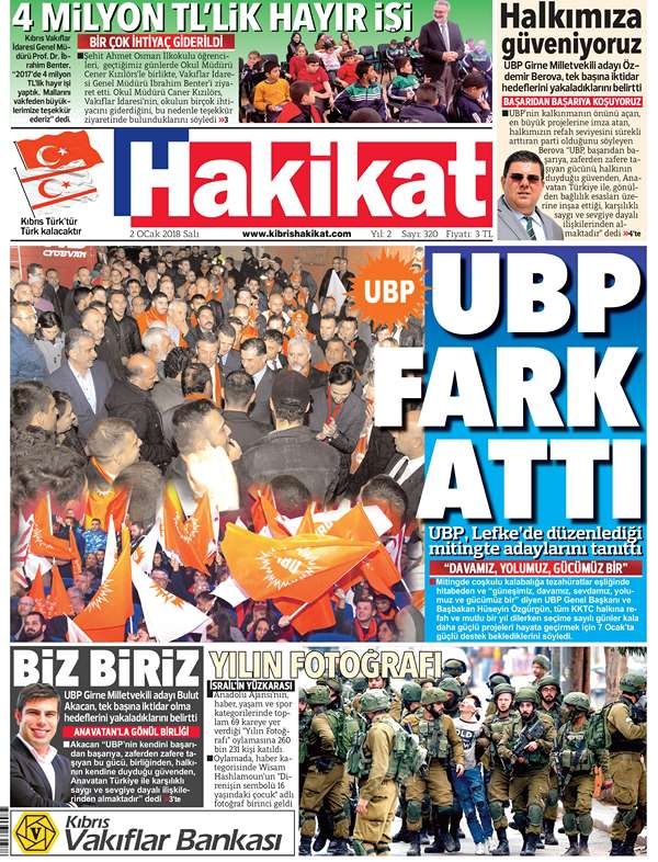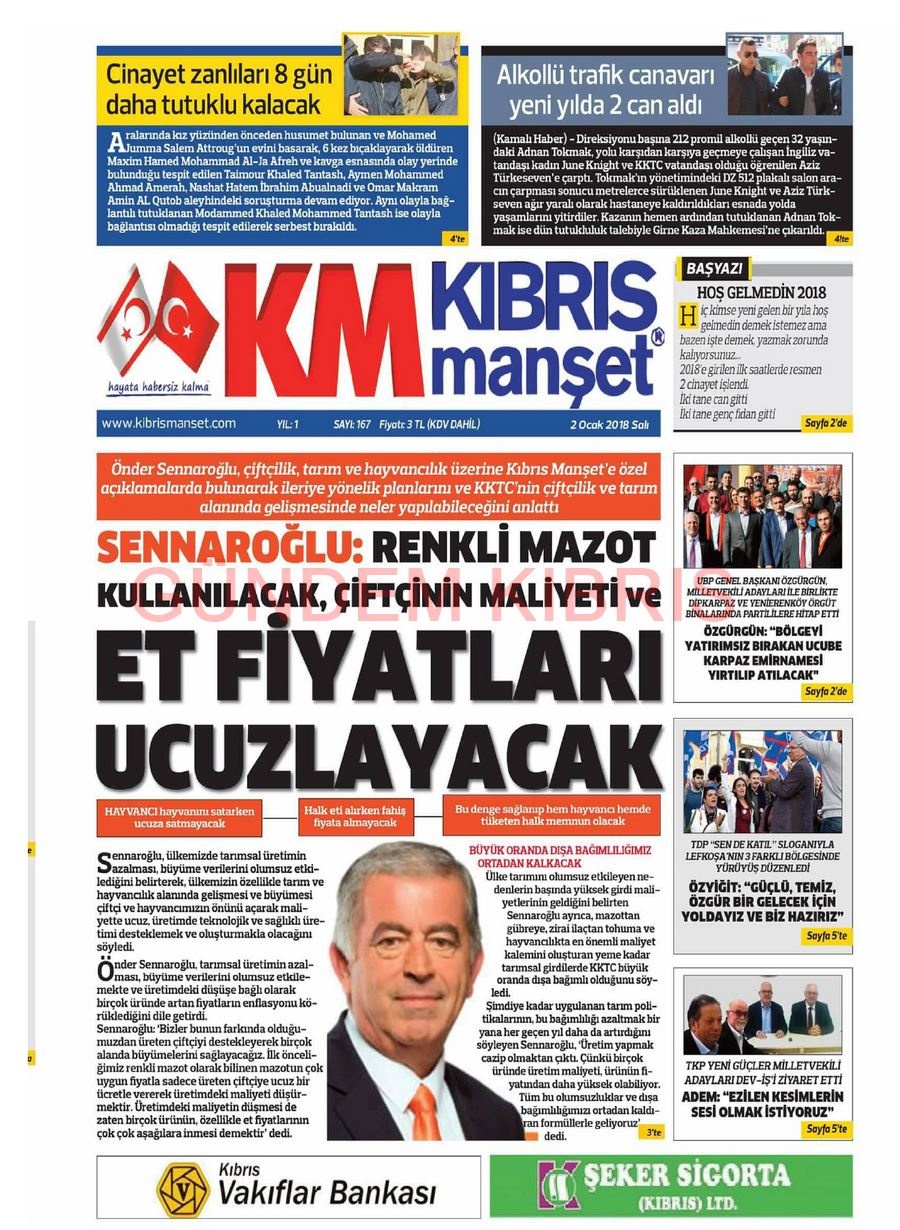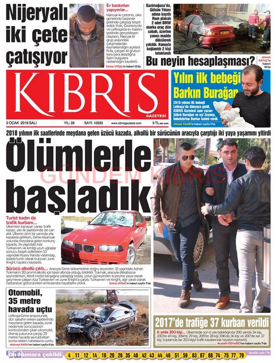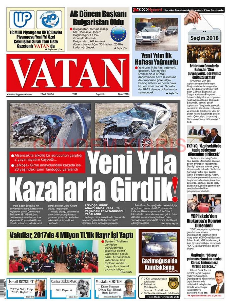 KKTC Gazete Manşetleri 2 Ocak 2018