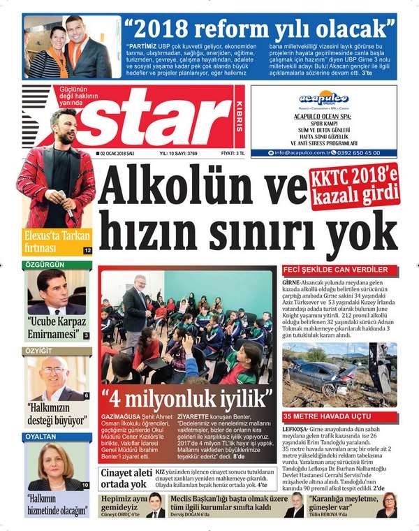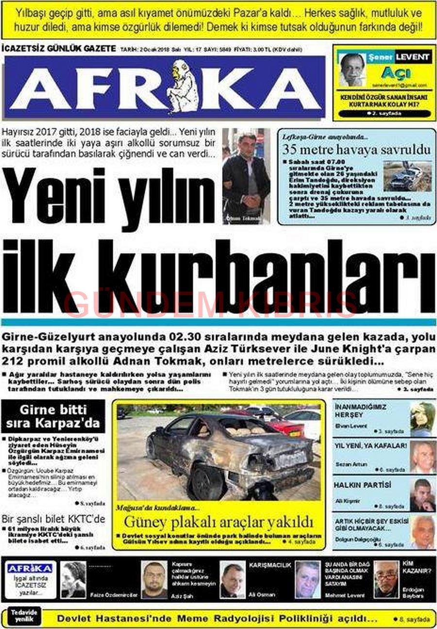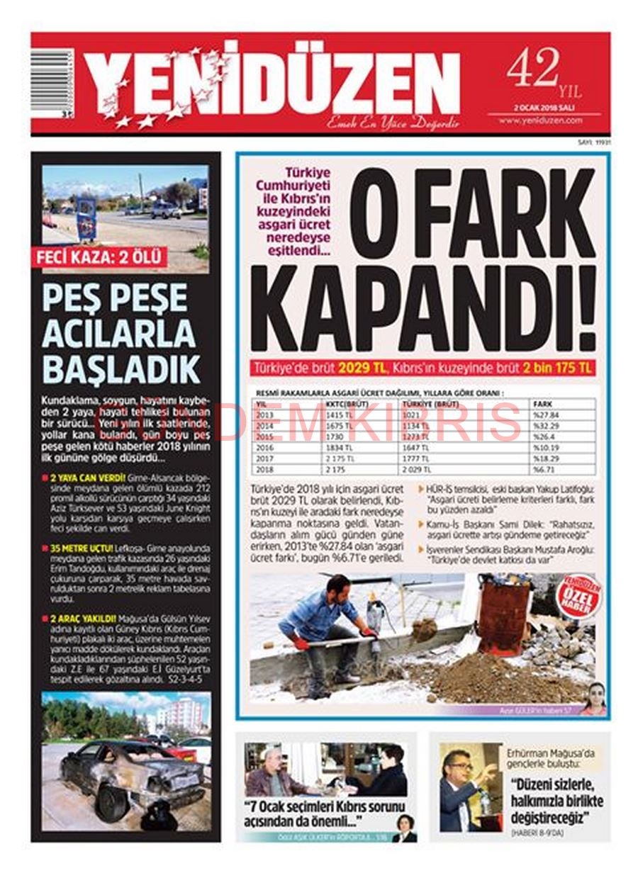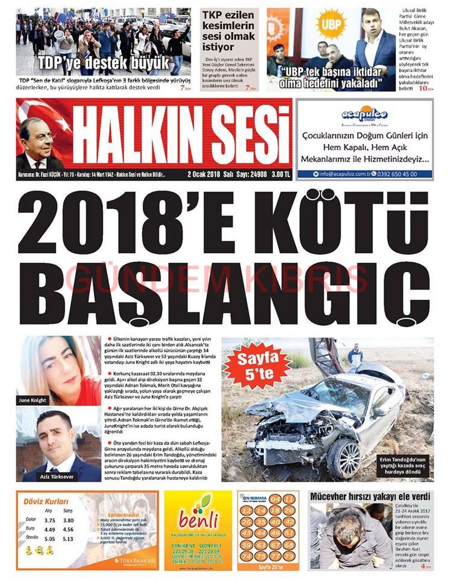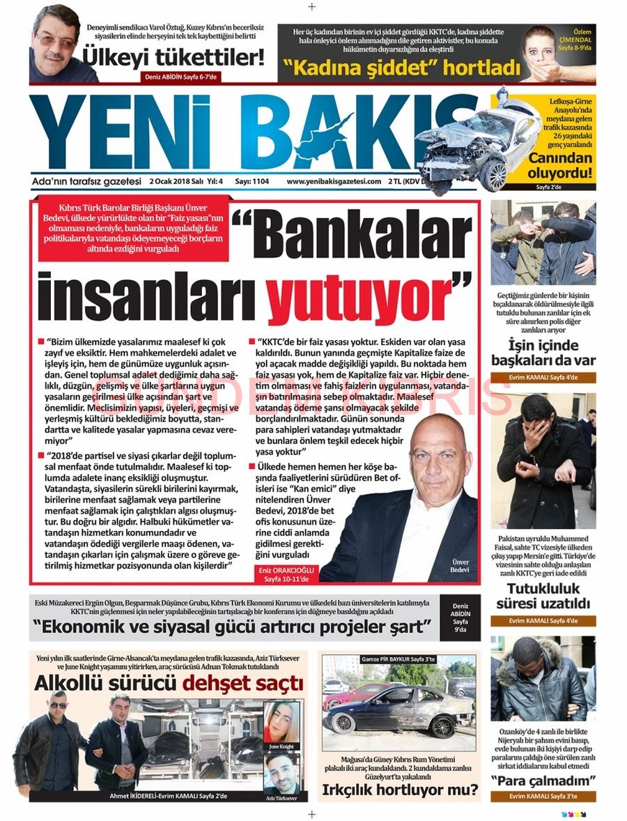 KKTC Gazete Manşetleri 2 Ocak 2018