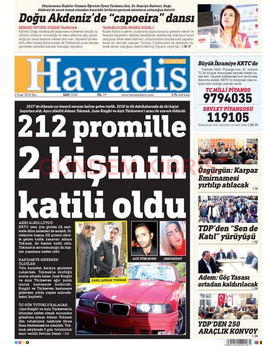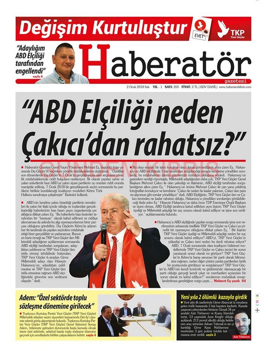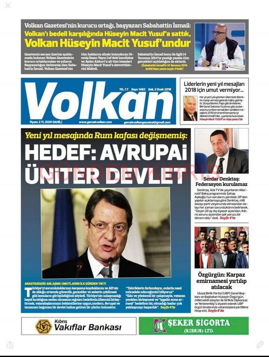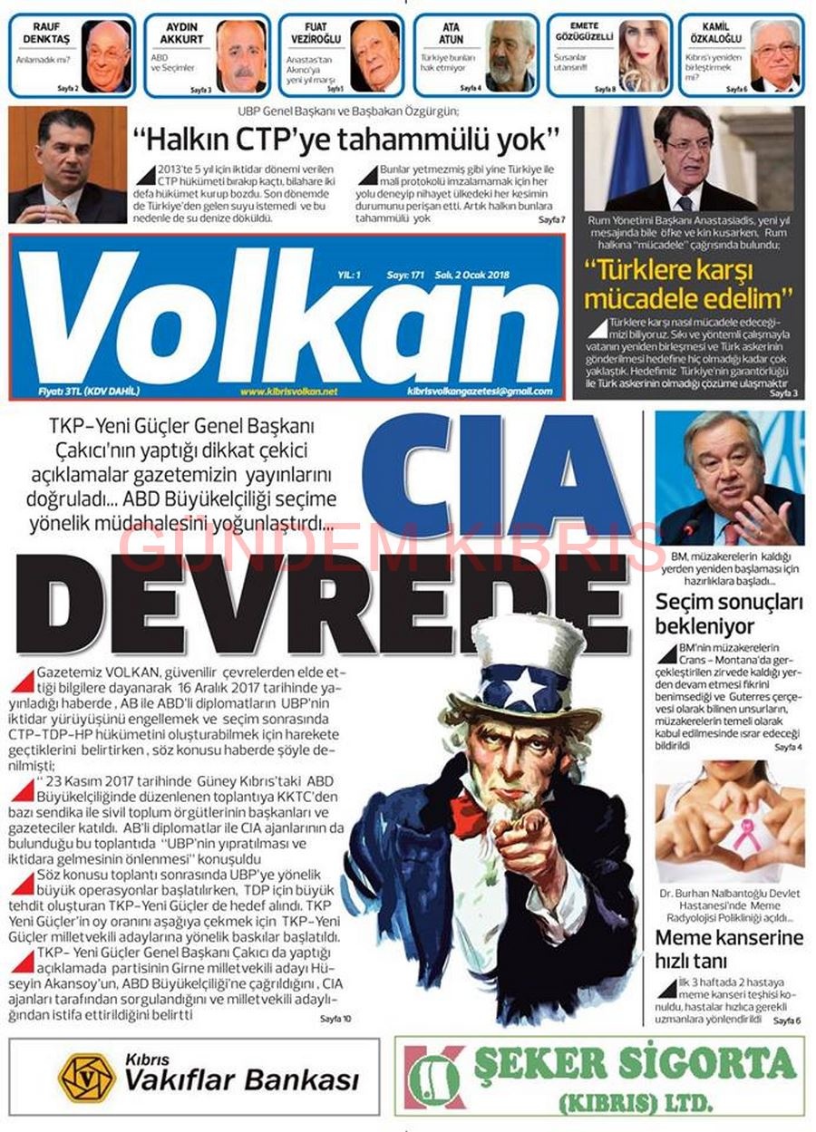 KKTC Gazete Manşetleri 2 Ocak 2018