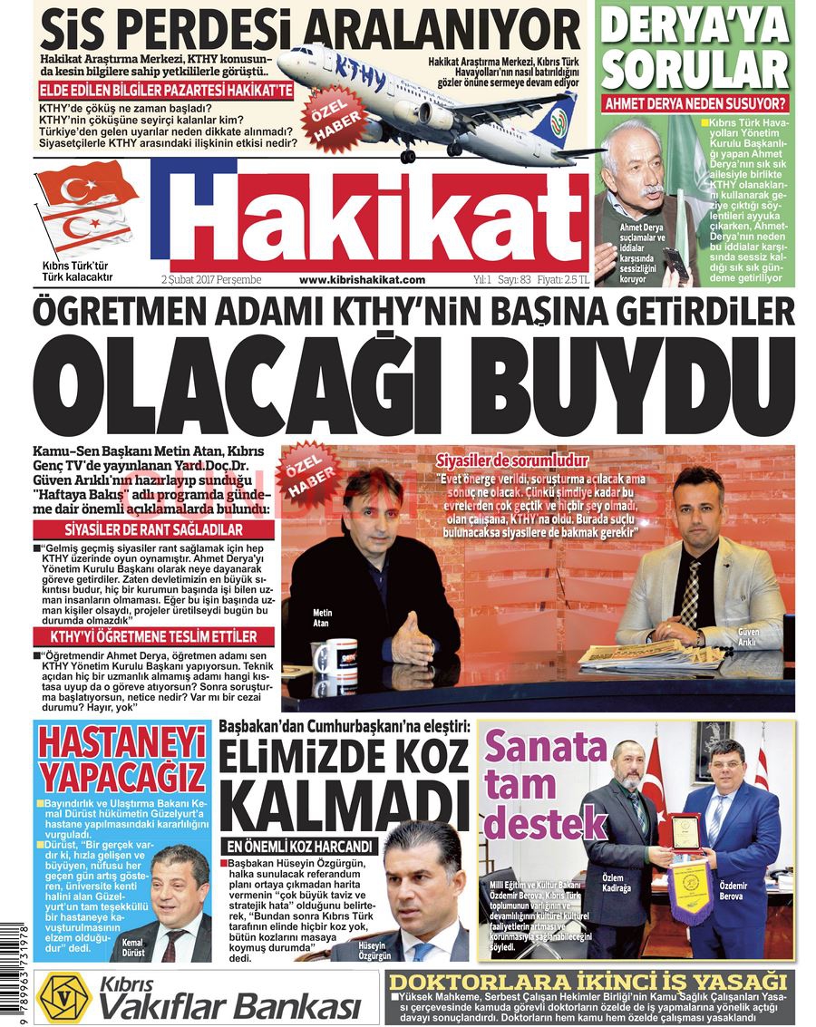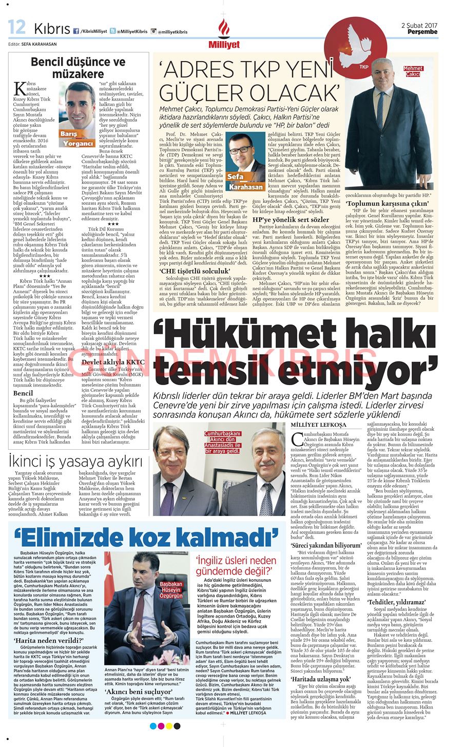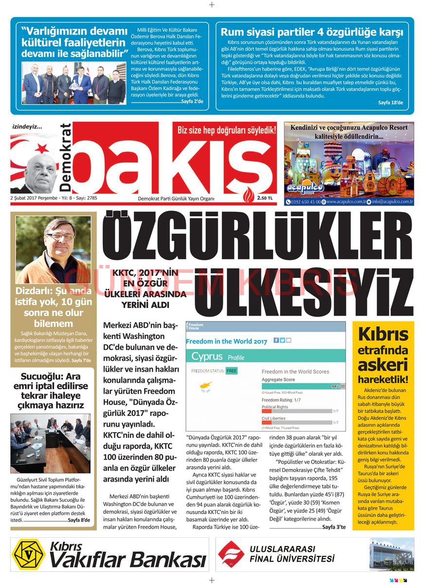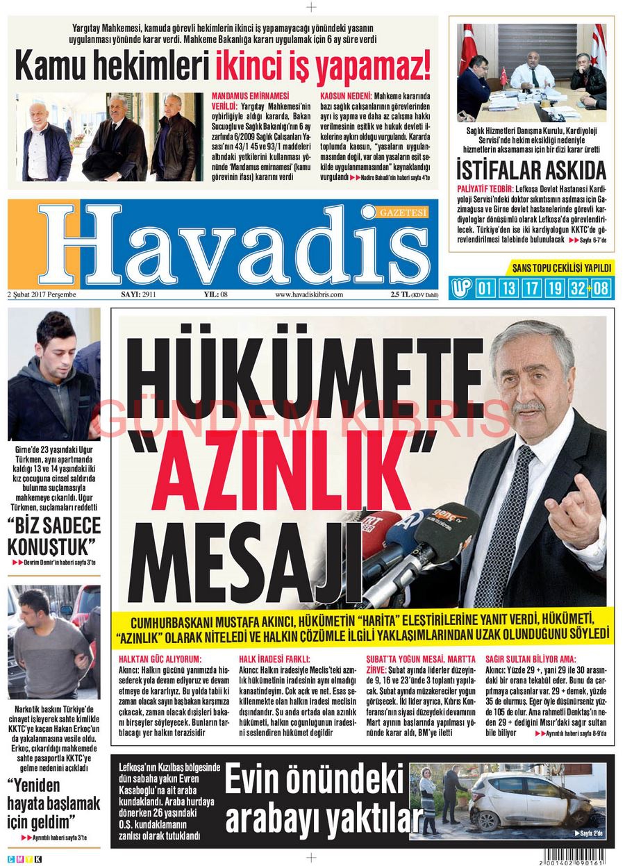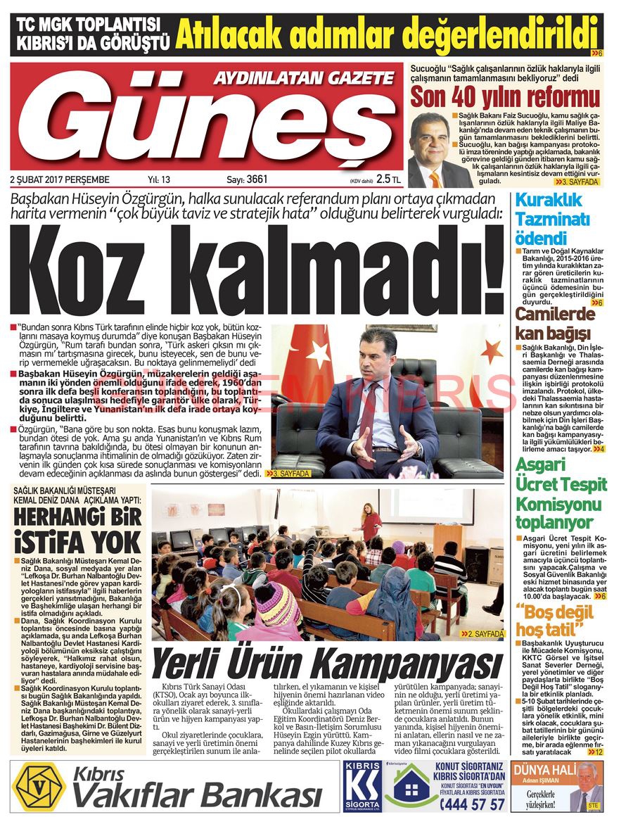 KKTC Gazete Manşetleri 2 Şubat 2017